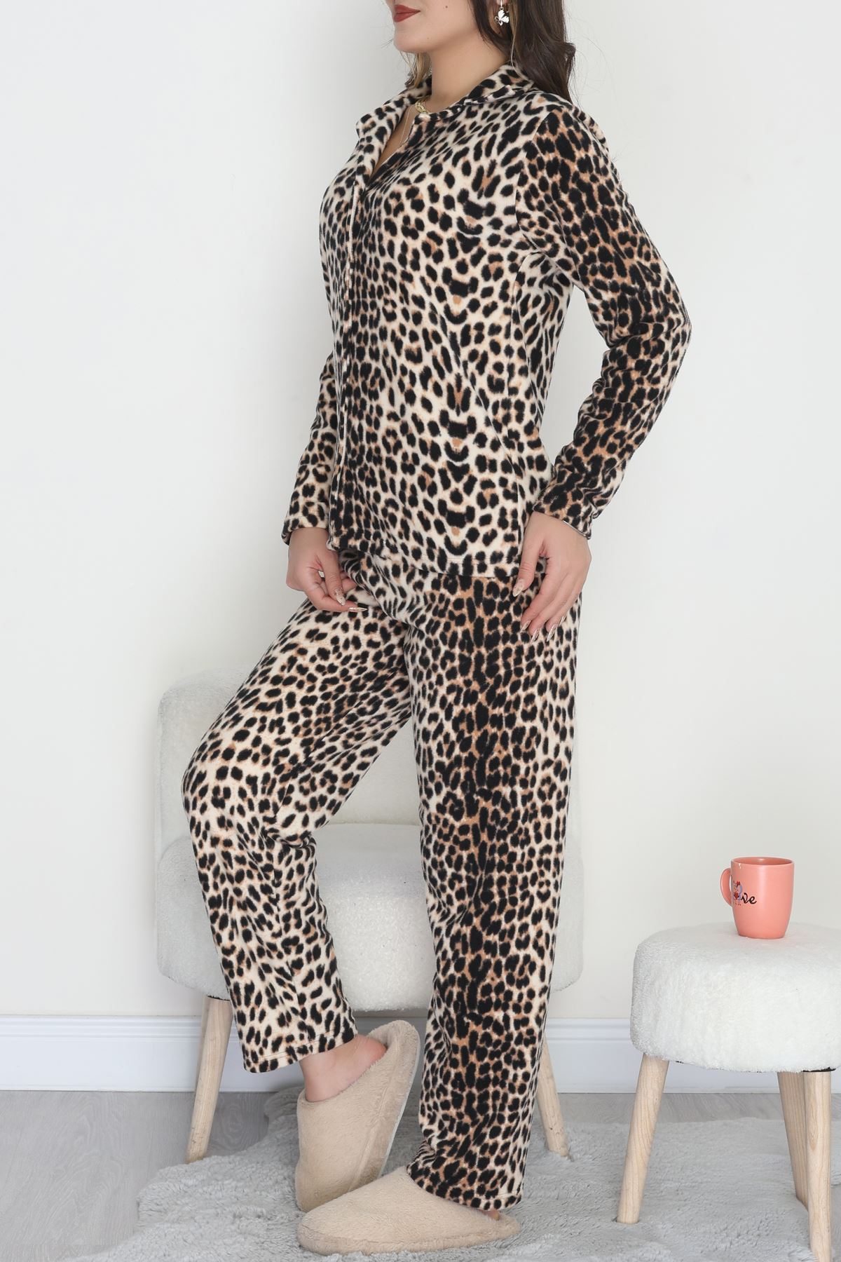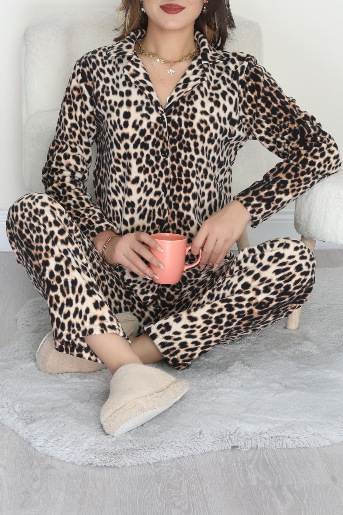 Önü Düğmeli Polar Takım Leopar - 451.1287.