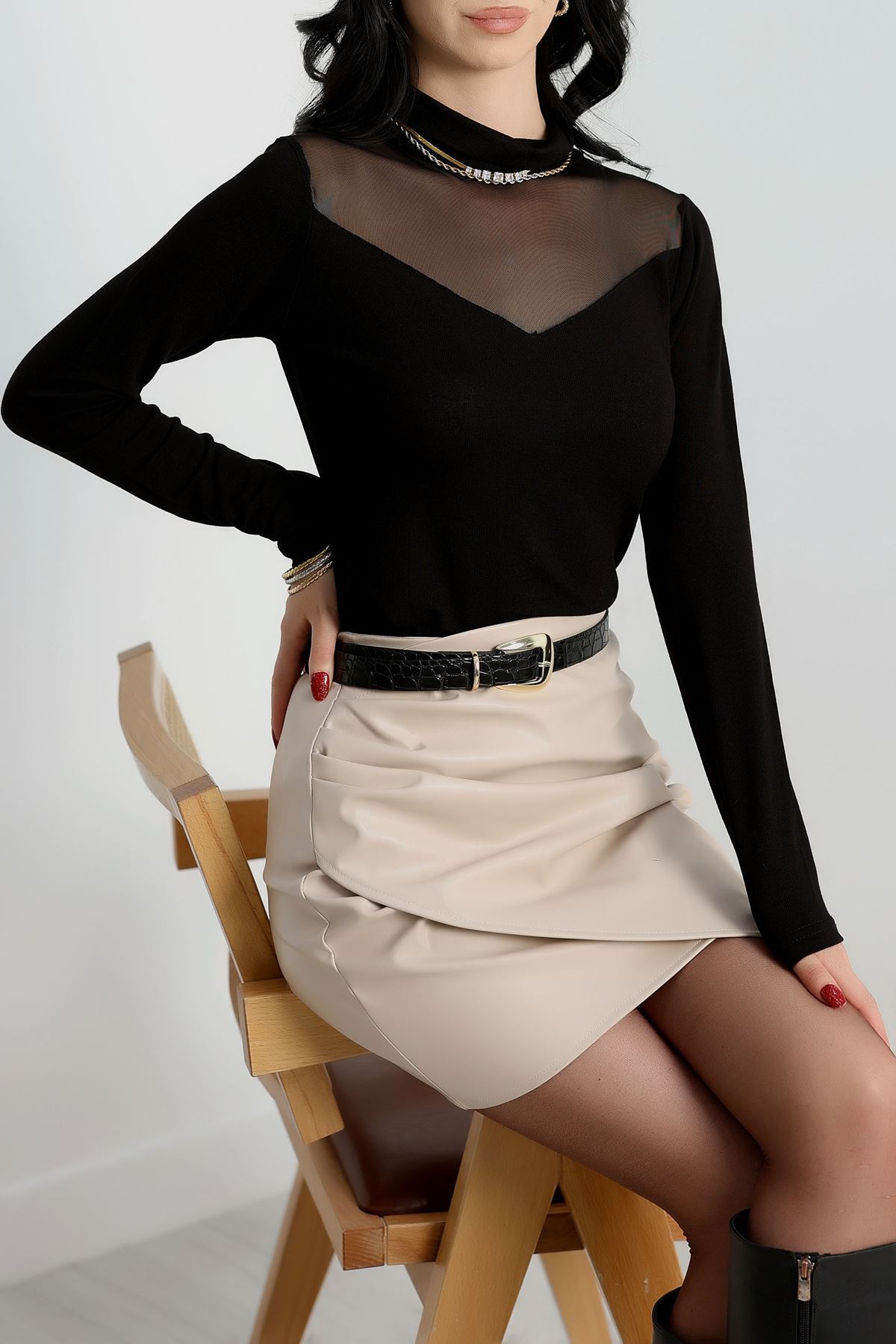Önü Tül Çilek Bluz Siyah - 1670.1095.