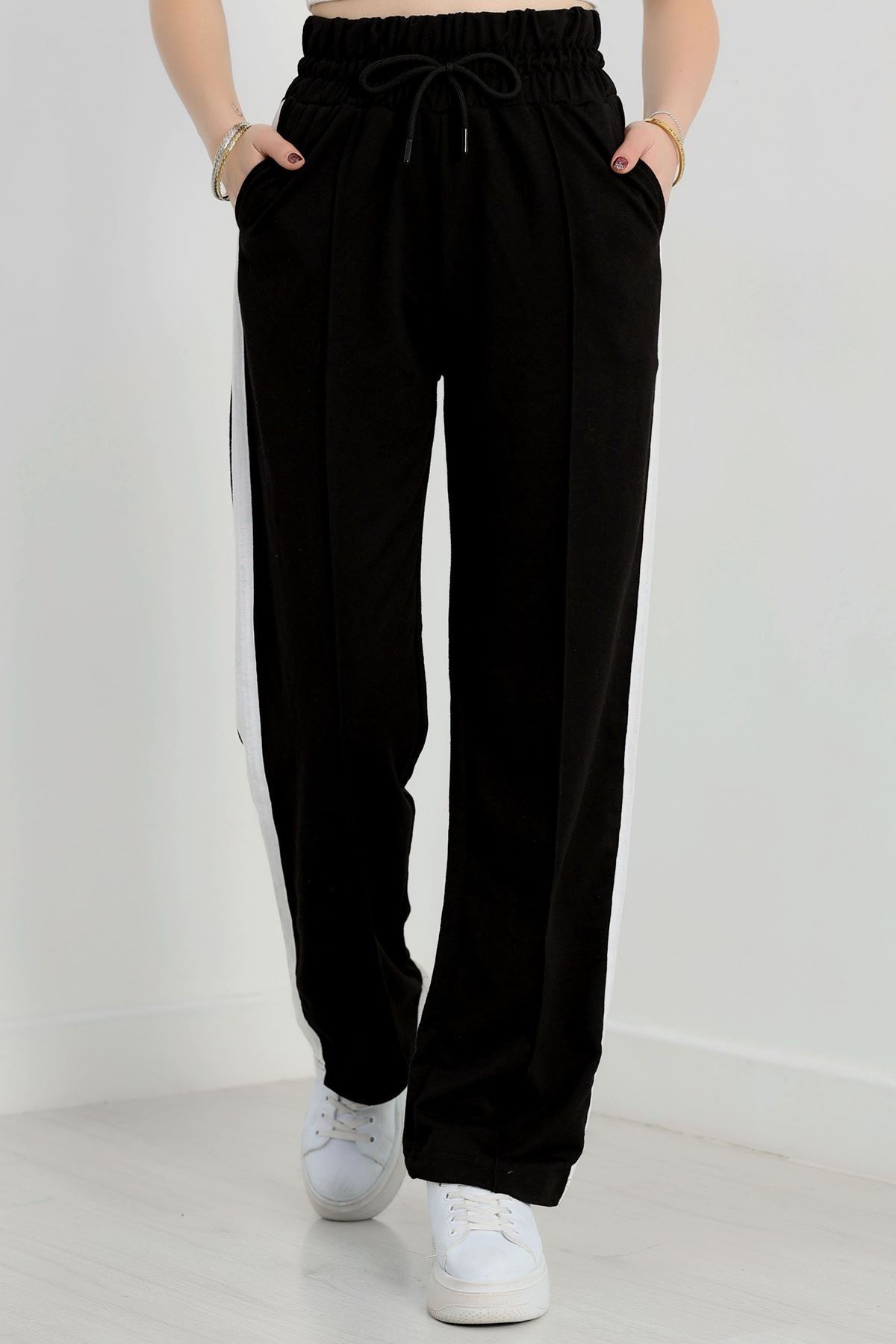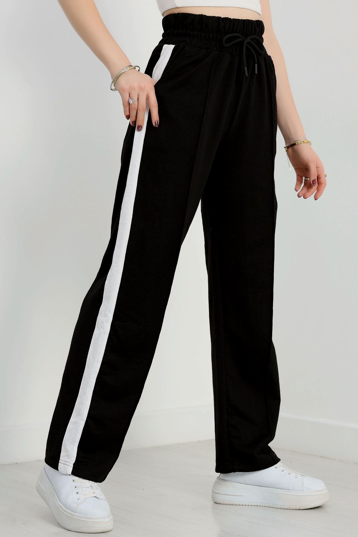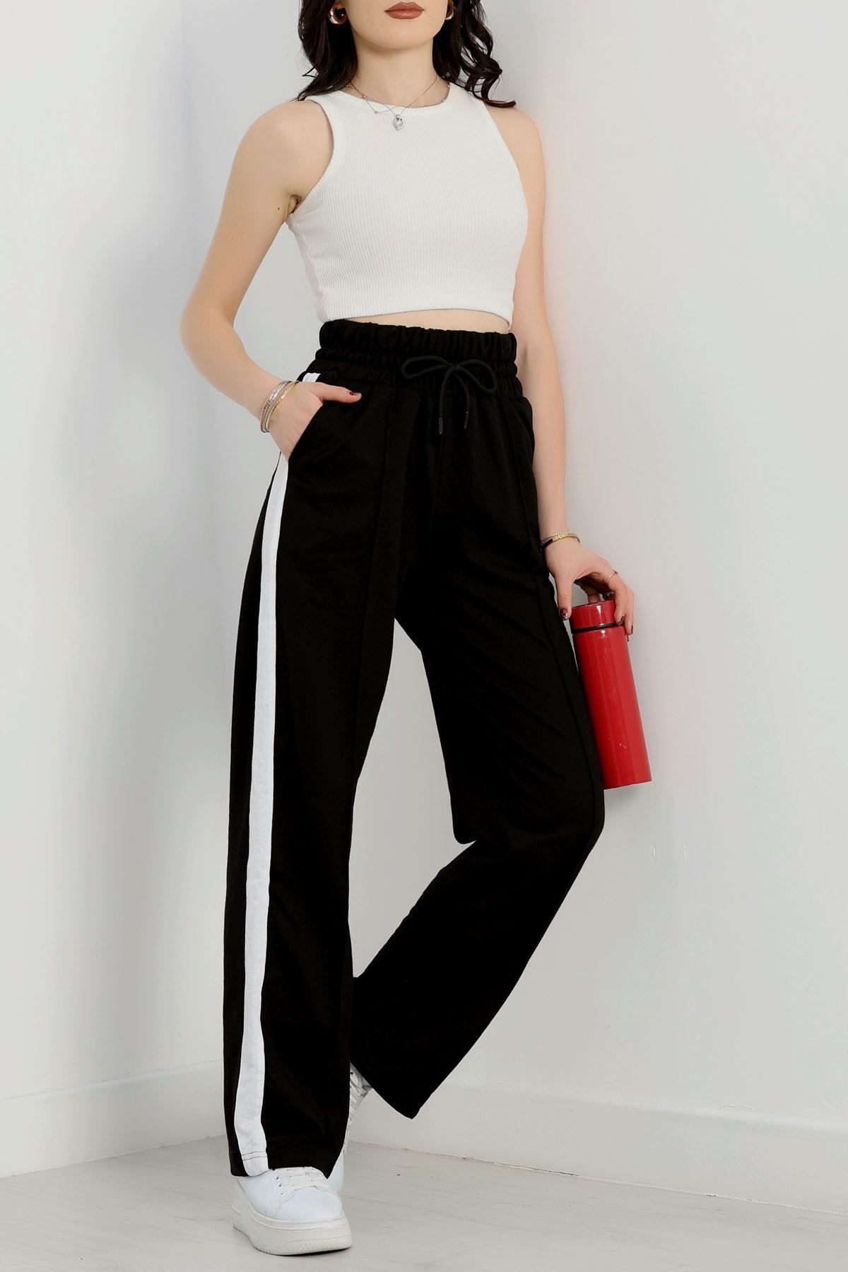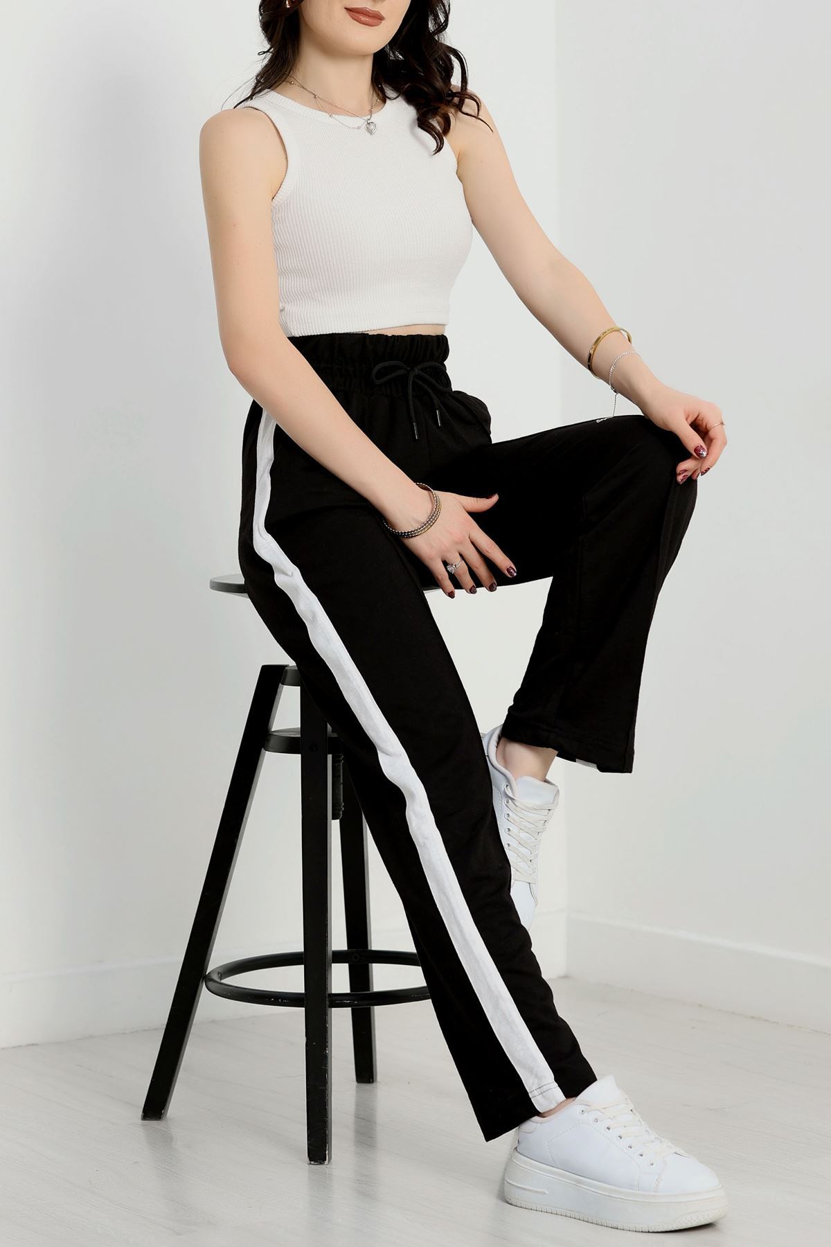 Openet Kalın Kemer Şeritli Çımalı Eşofman Altı Siyah - 22014.200.