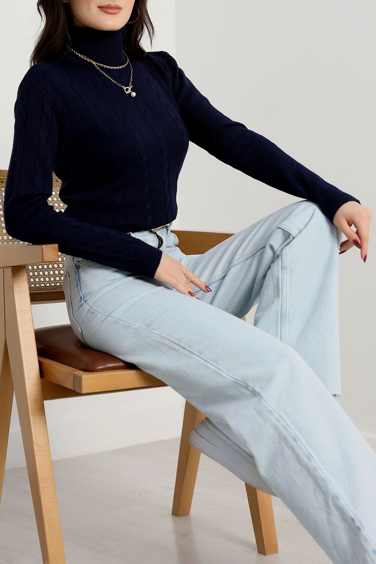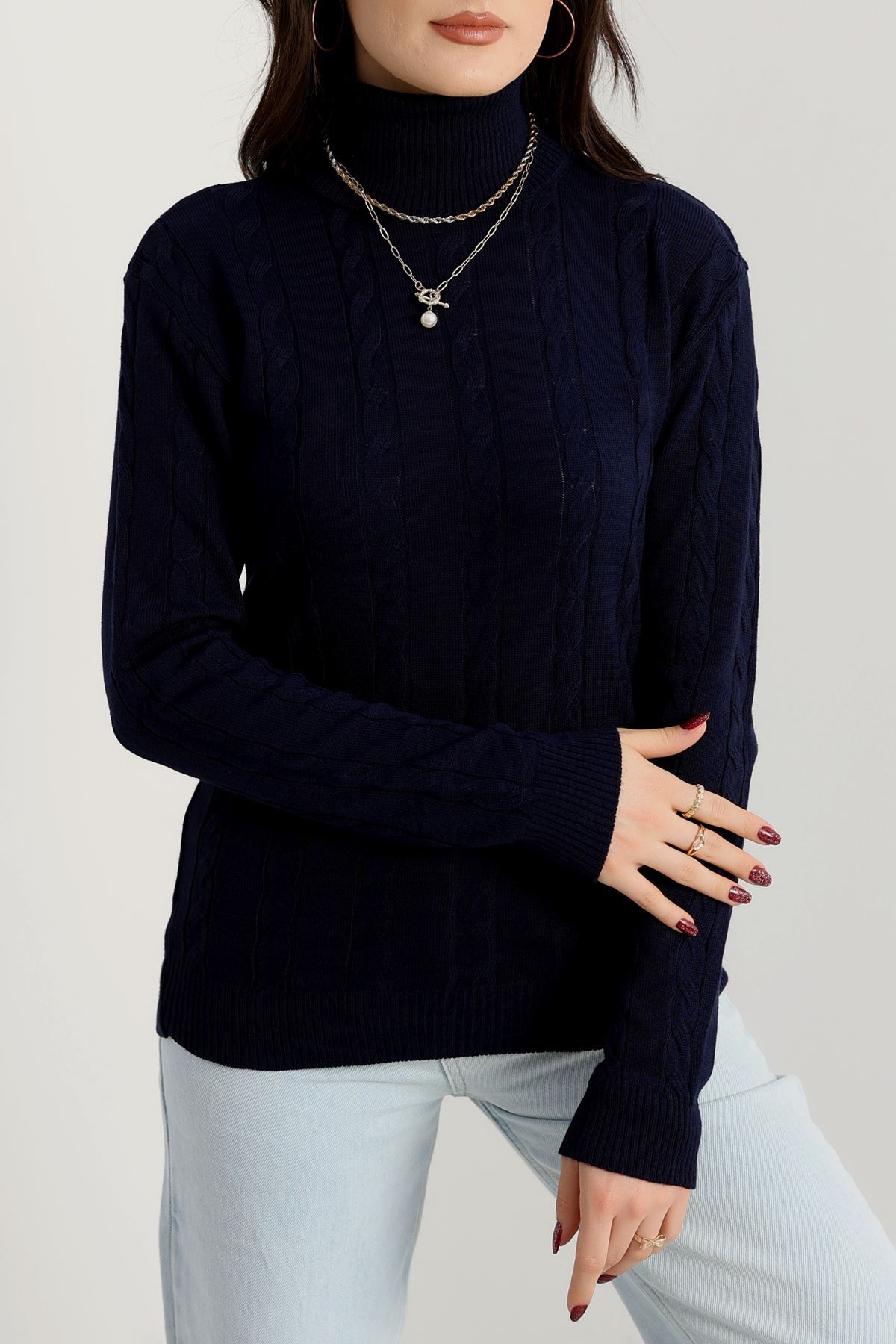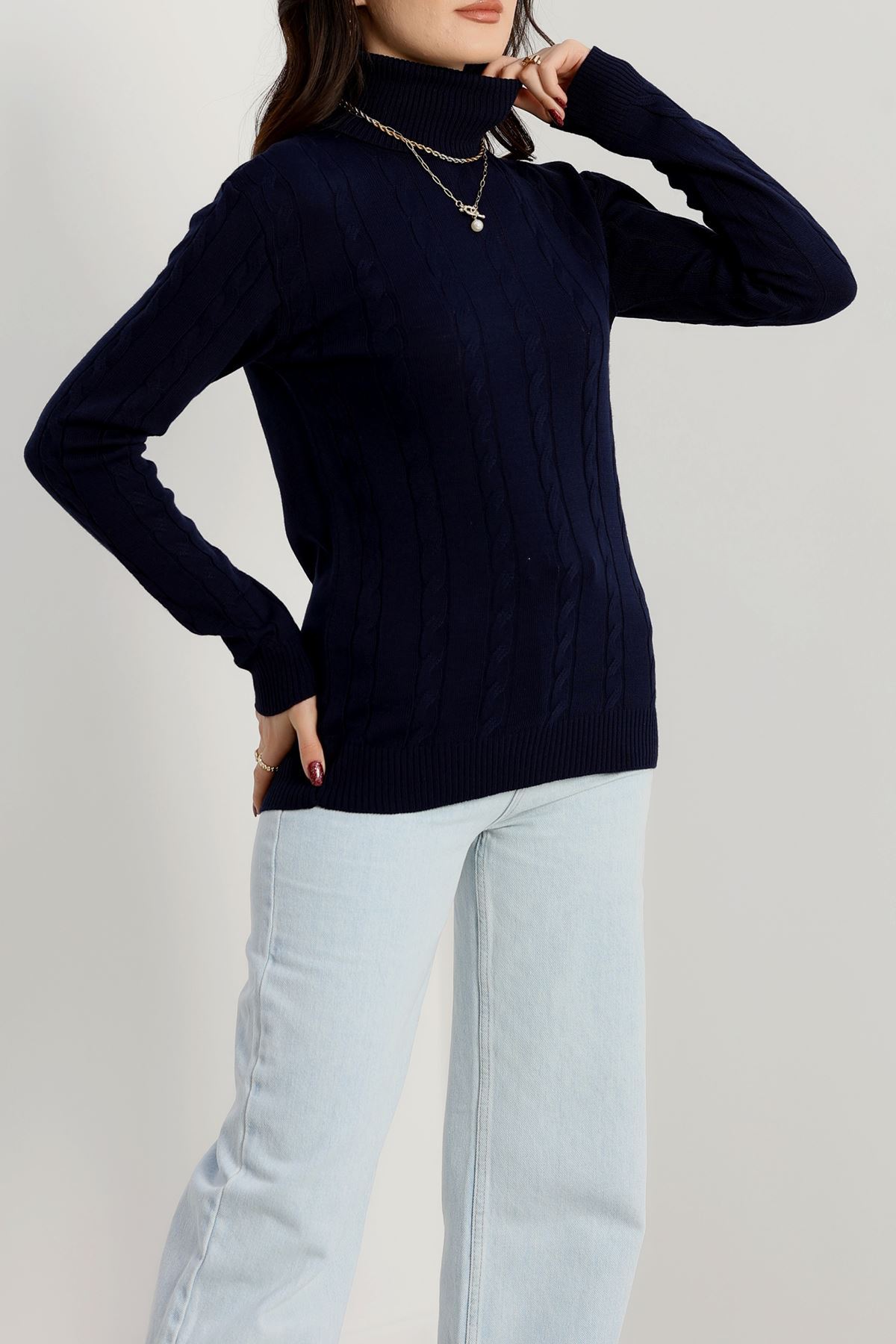 Örgü Desenli Balıkçı Yaka Triko Lacivert - 4015.2043.