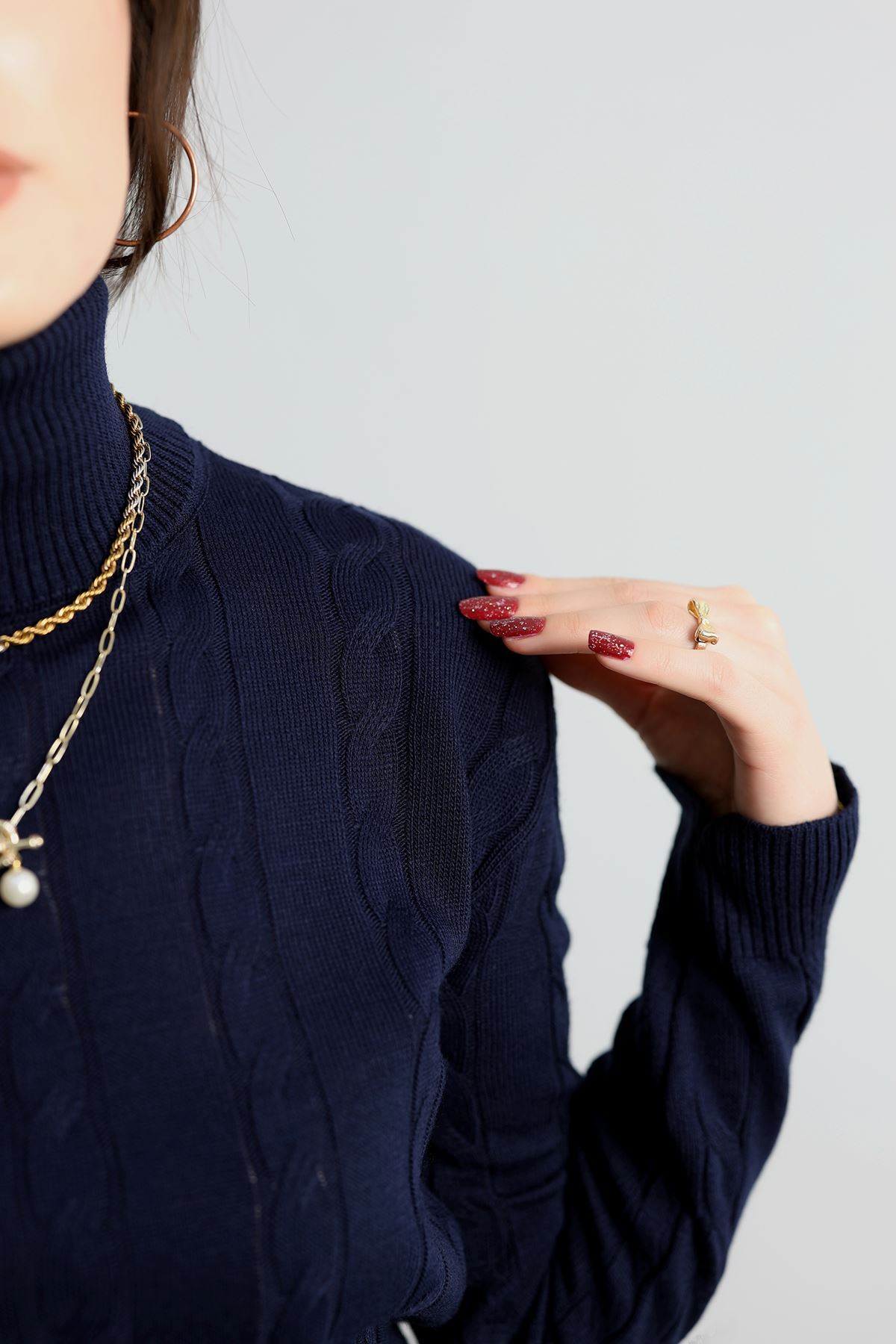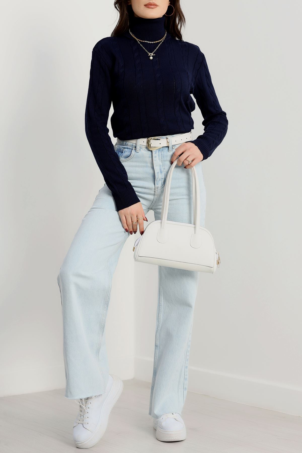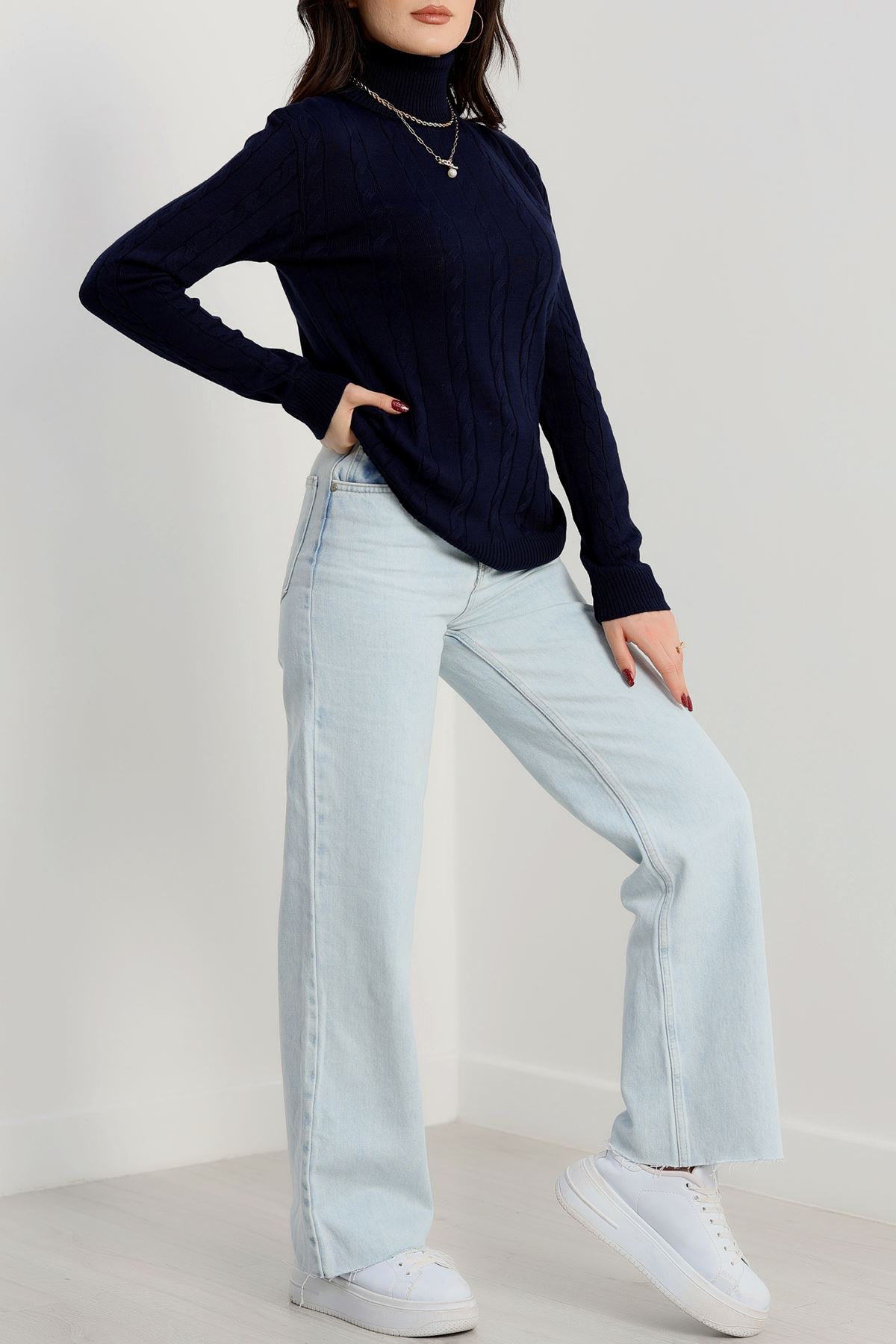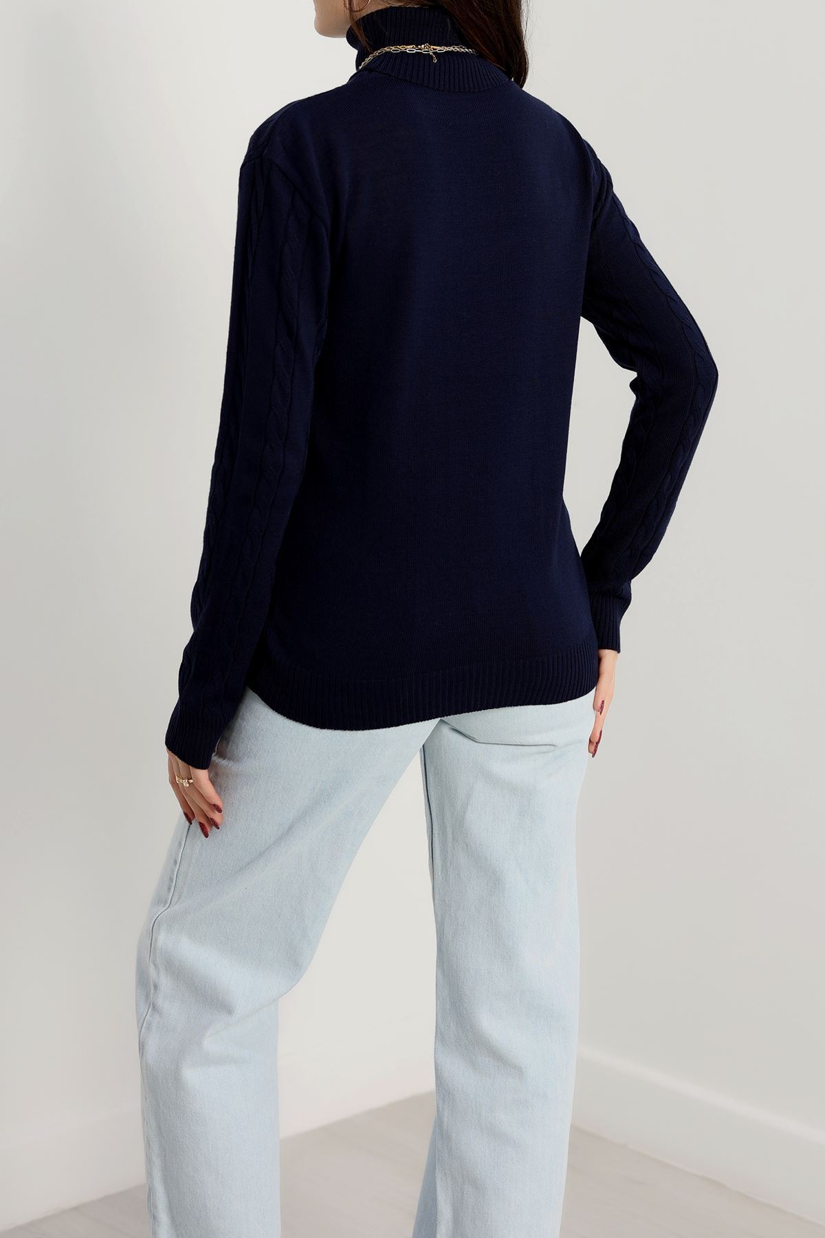Örgü Desenli Balıkçı Yaka Triko Lacivert - 4015.2043.