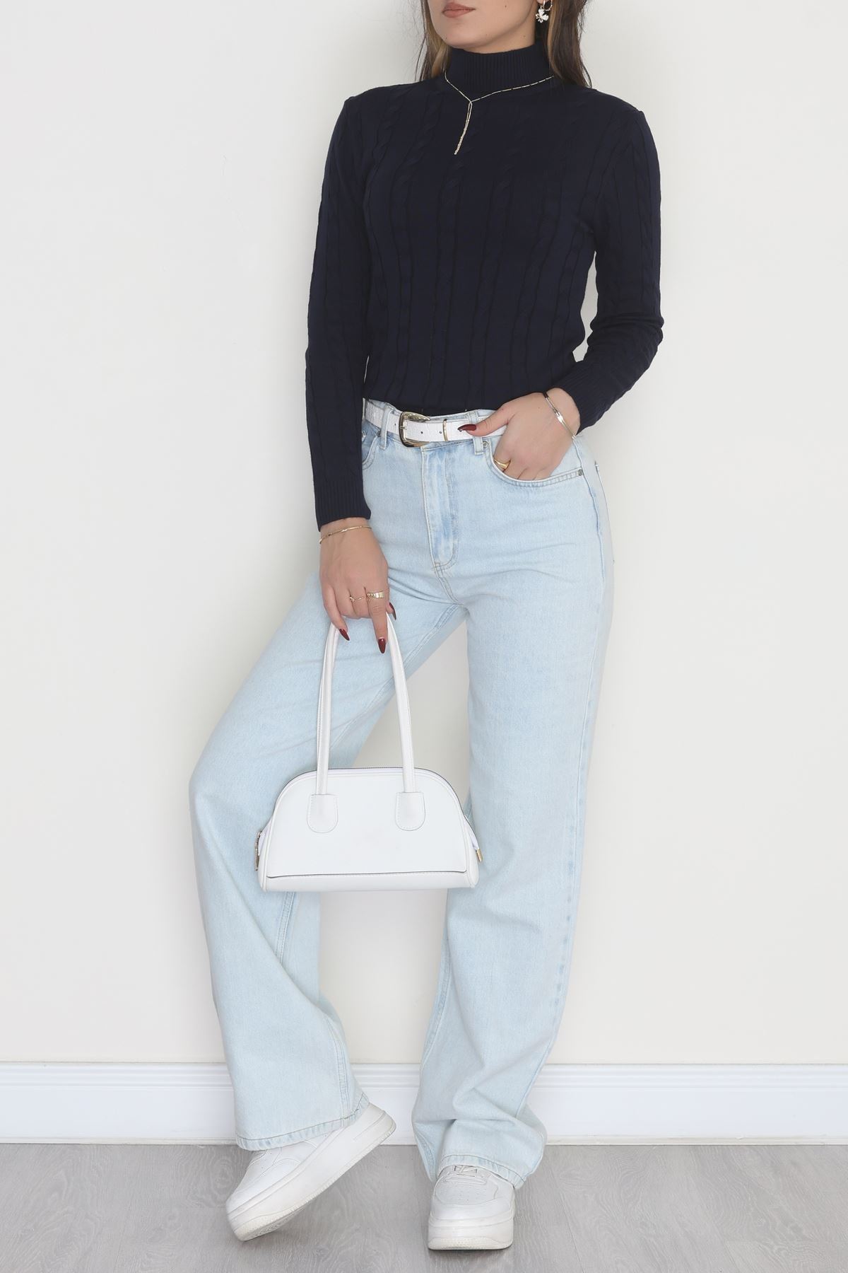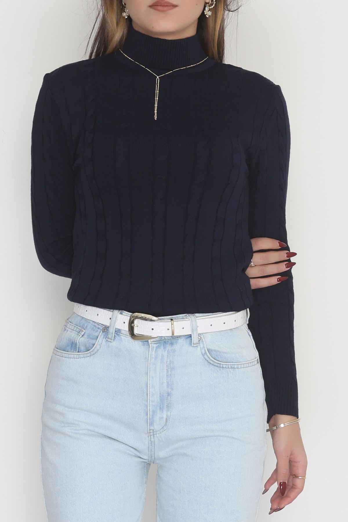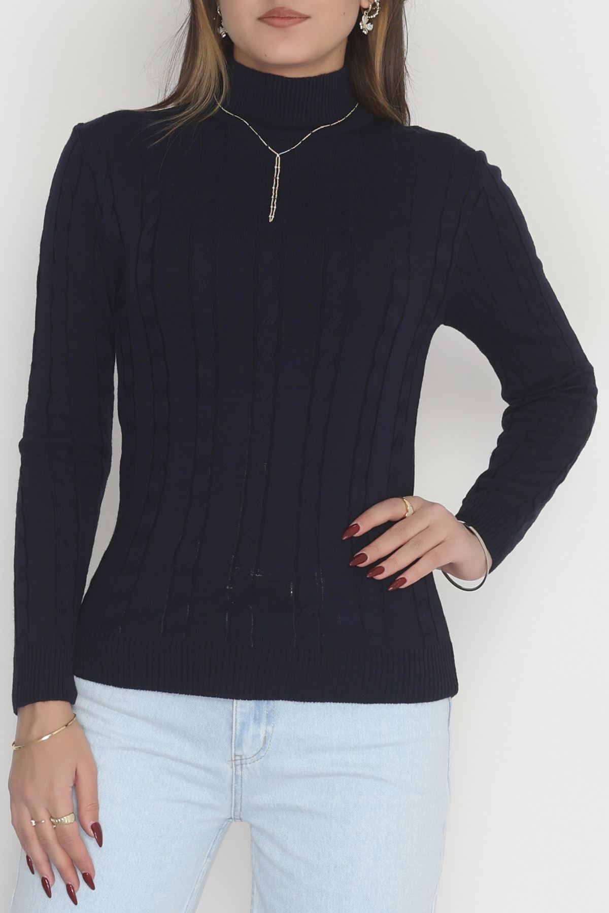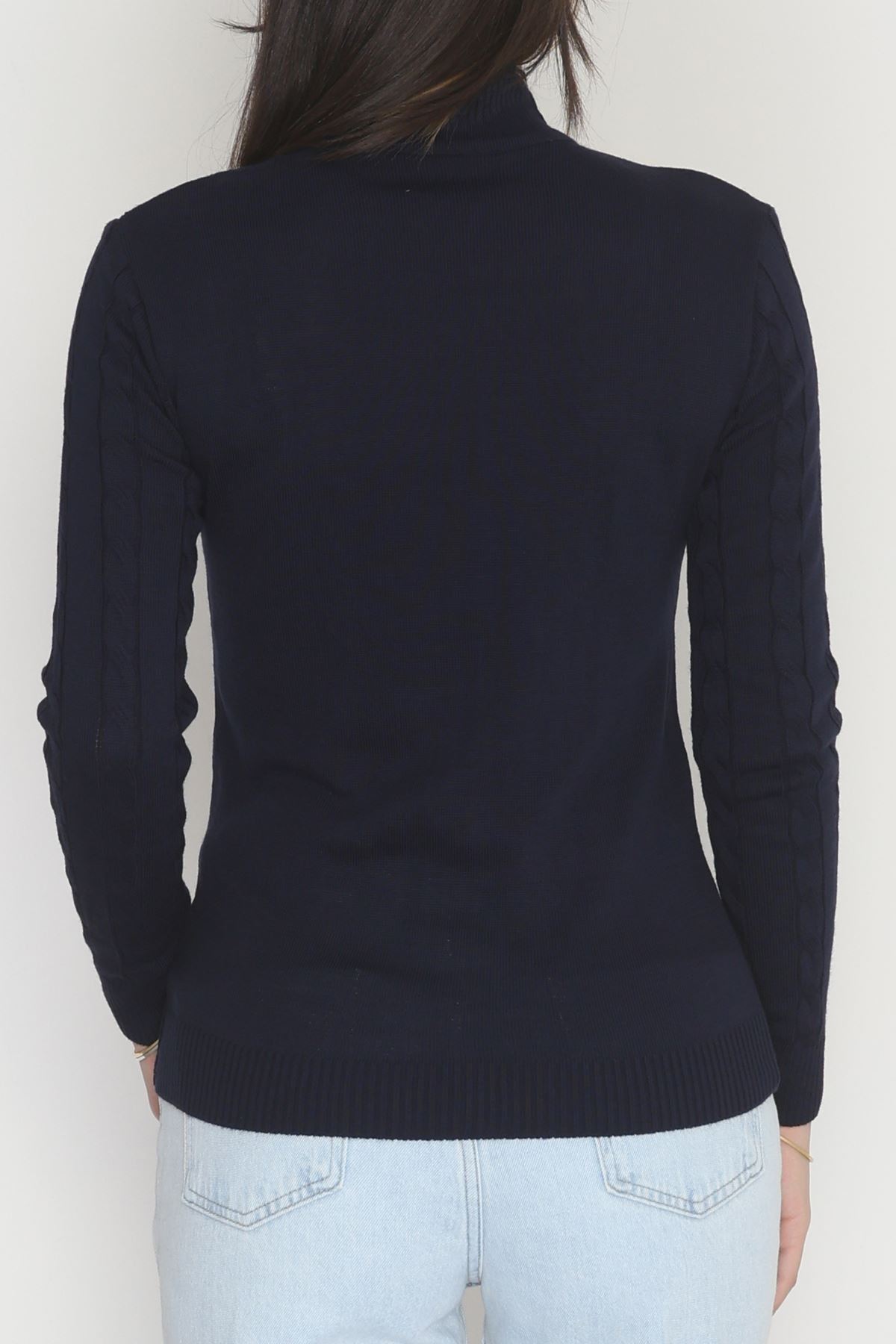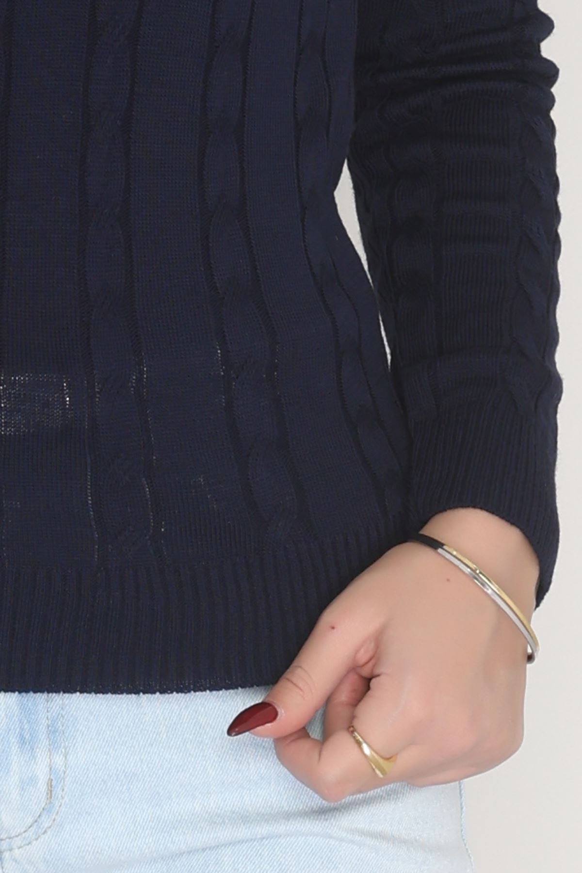 Örgü Desenli Yarım Balıkçı Triko Lacivert - 4018.2043.