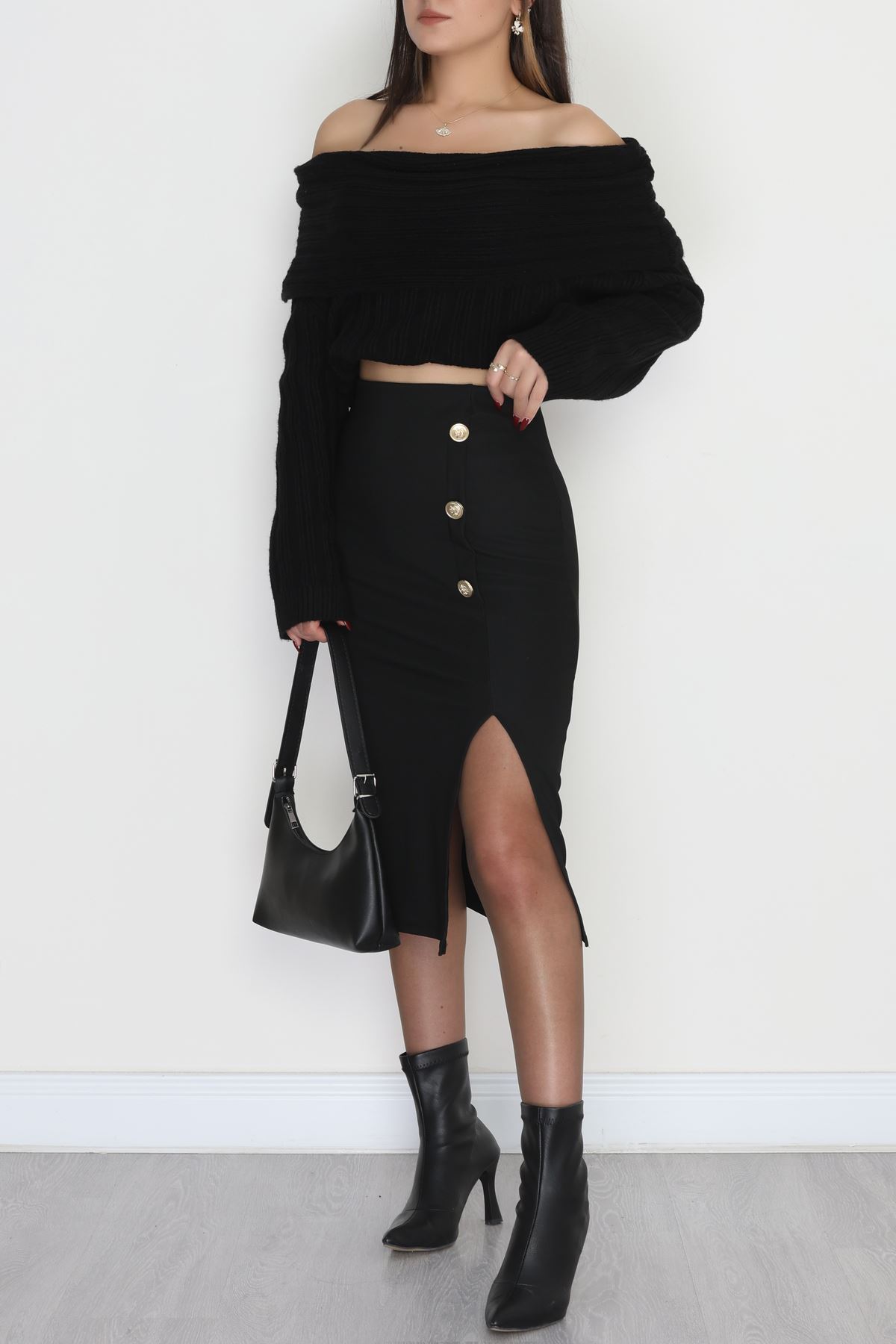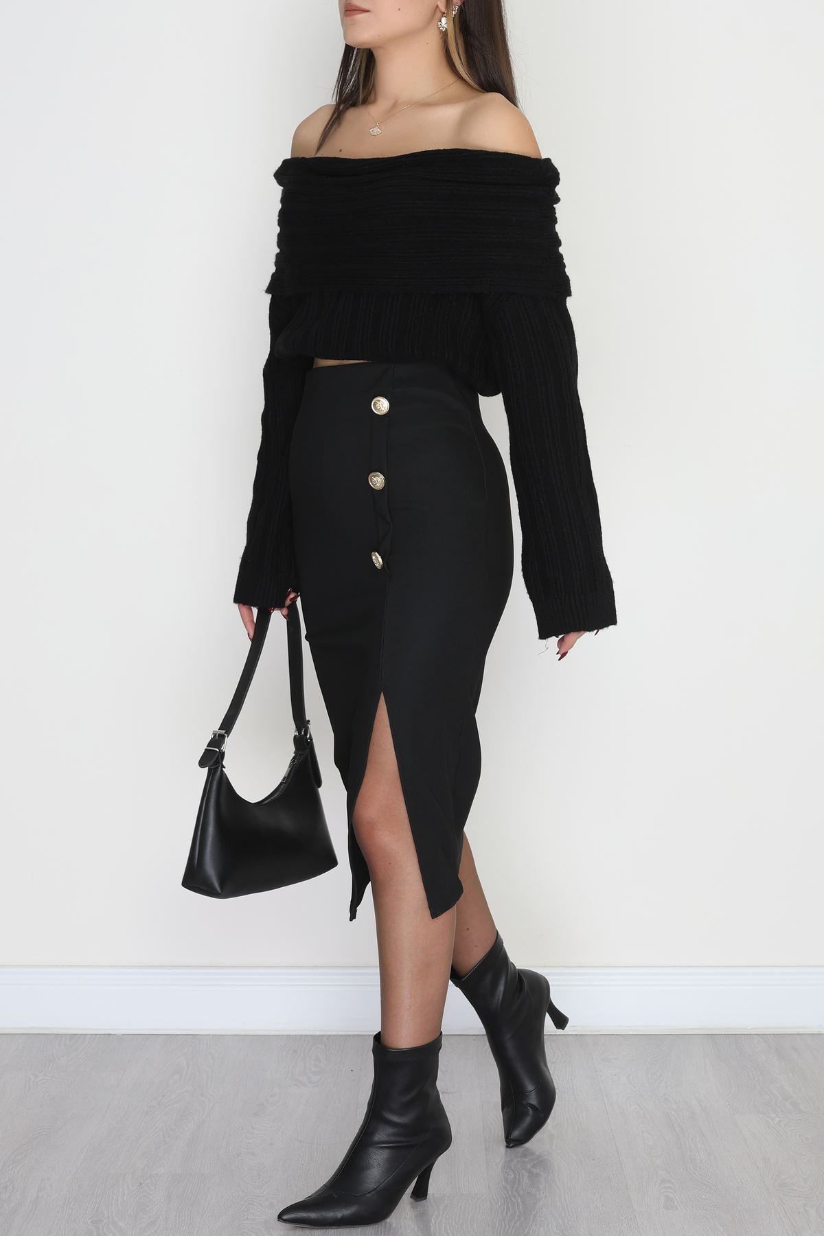 Ottoman Kumaş Düğme Detaylı Kalem Etek Siyah - 51046.1223.