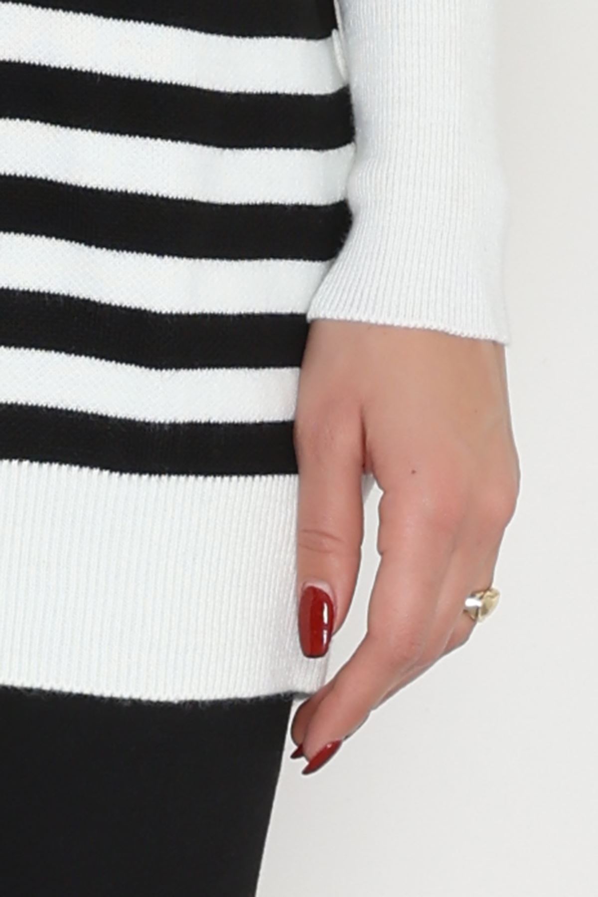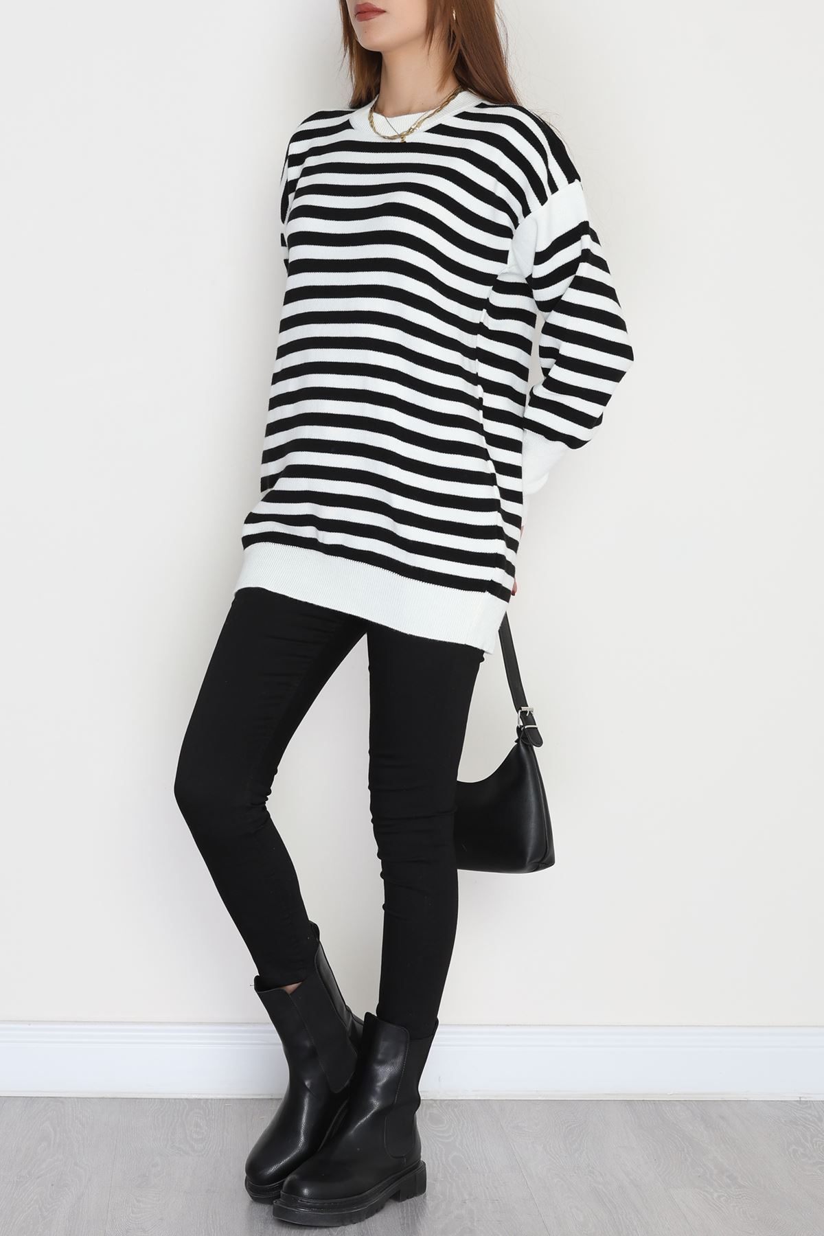 Oversıze Çizgili Triko Beyazsiyah - 2025.1577.