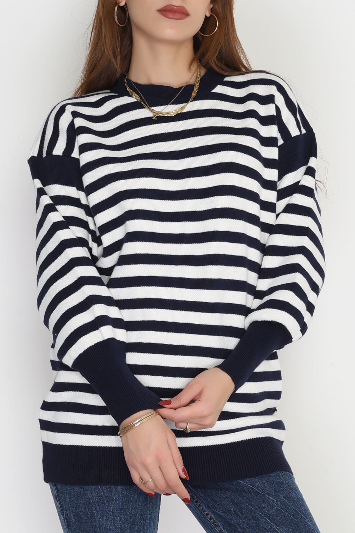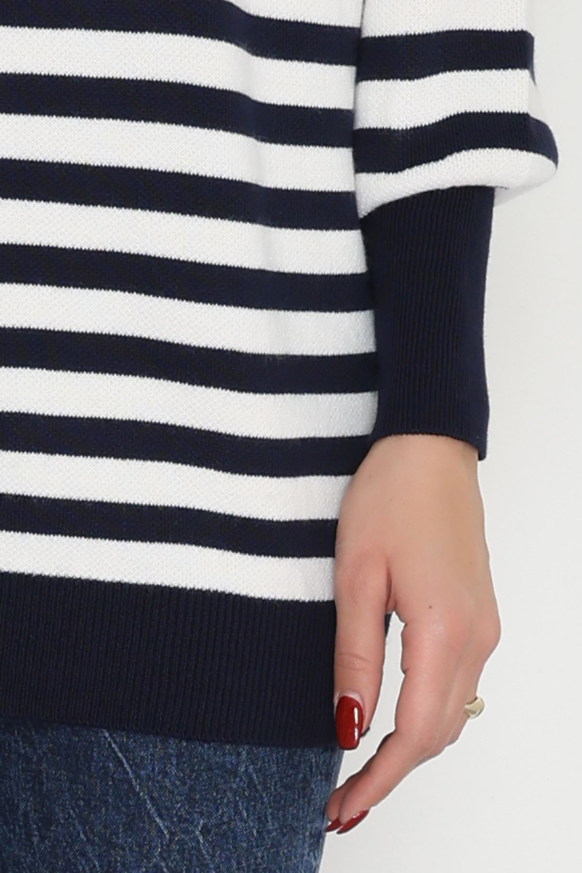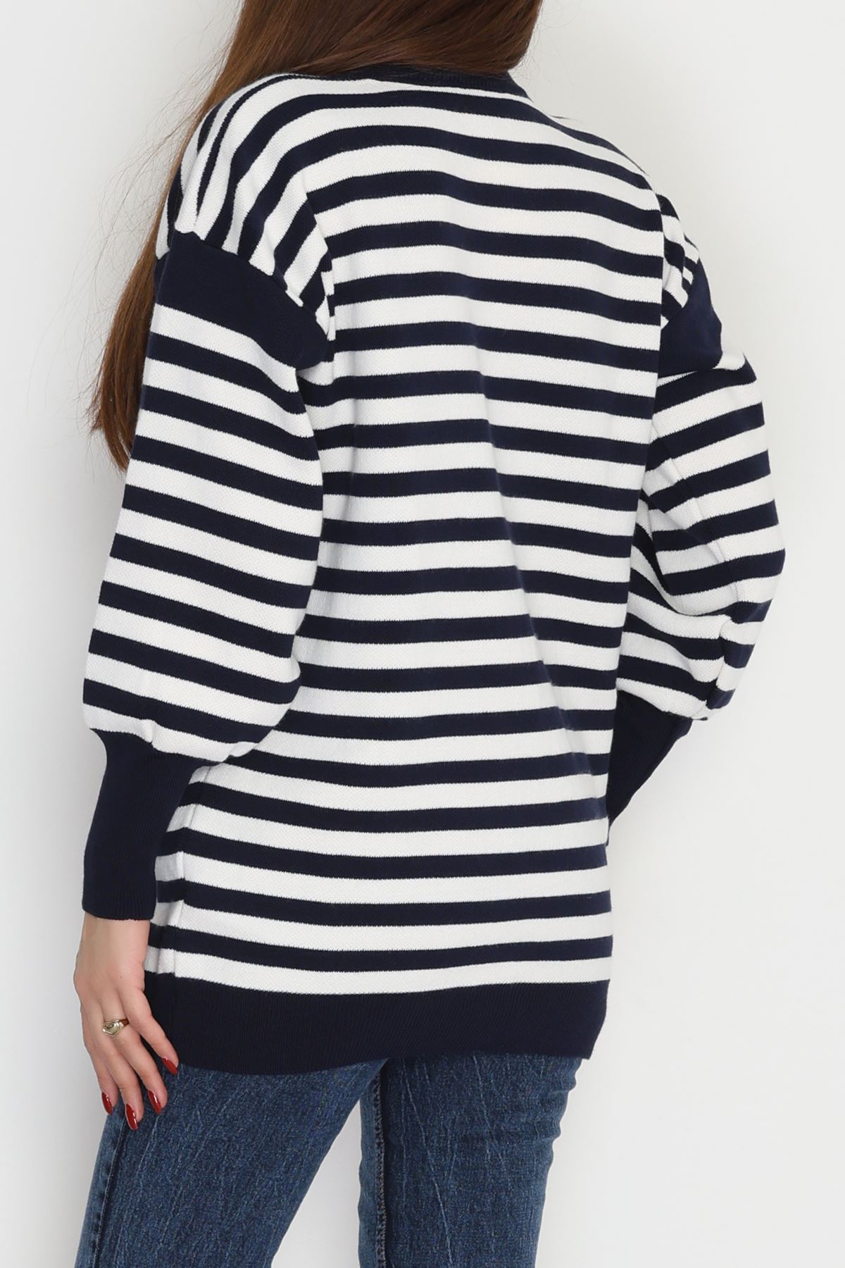 Oversıze Çizgili Triko Lacivertlatte - 2025.1577.