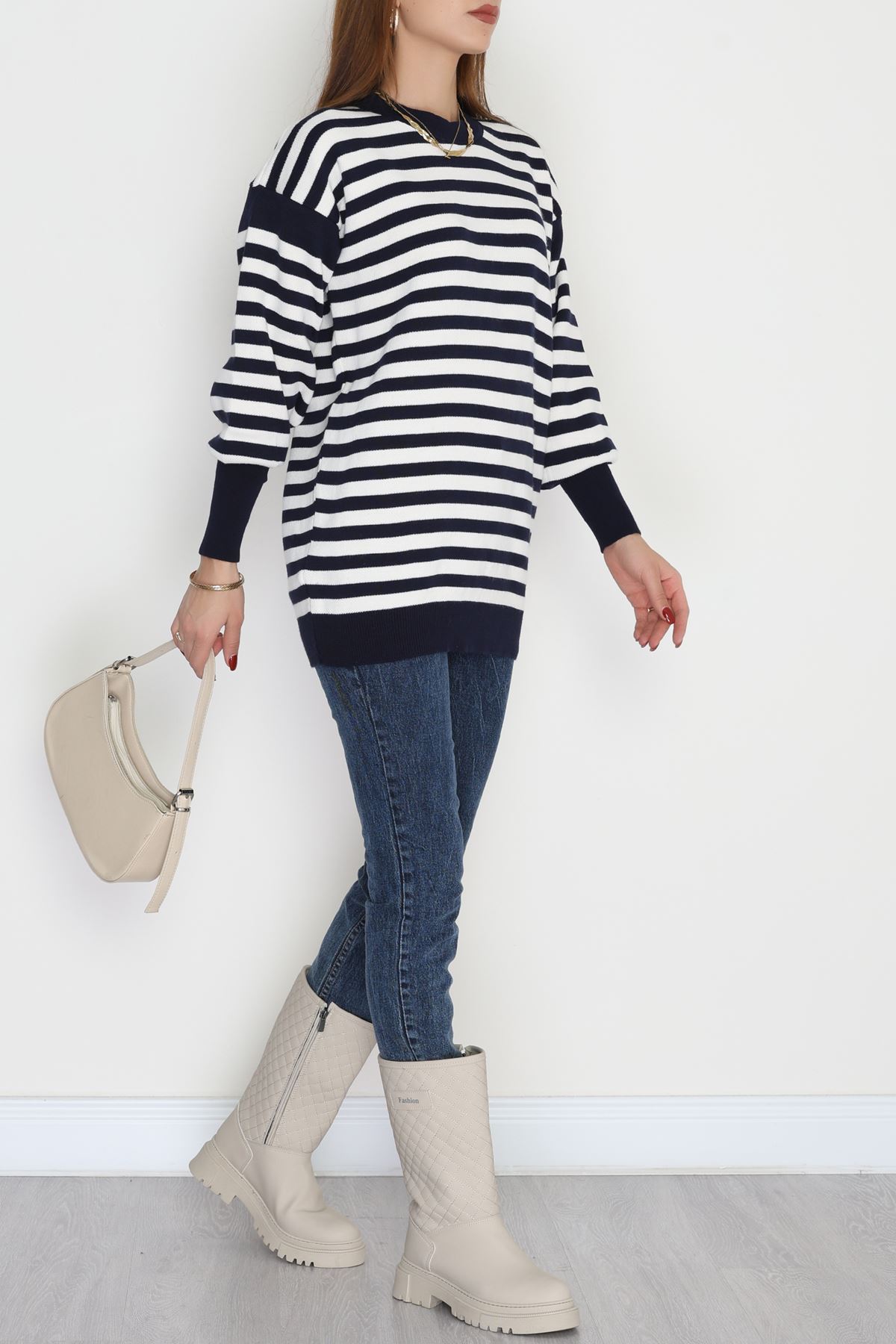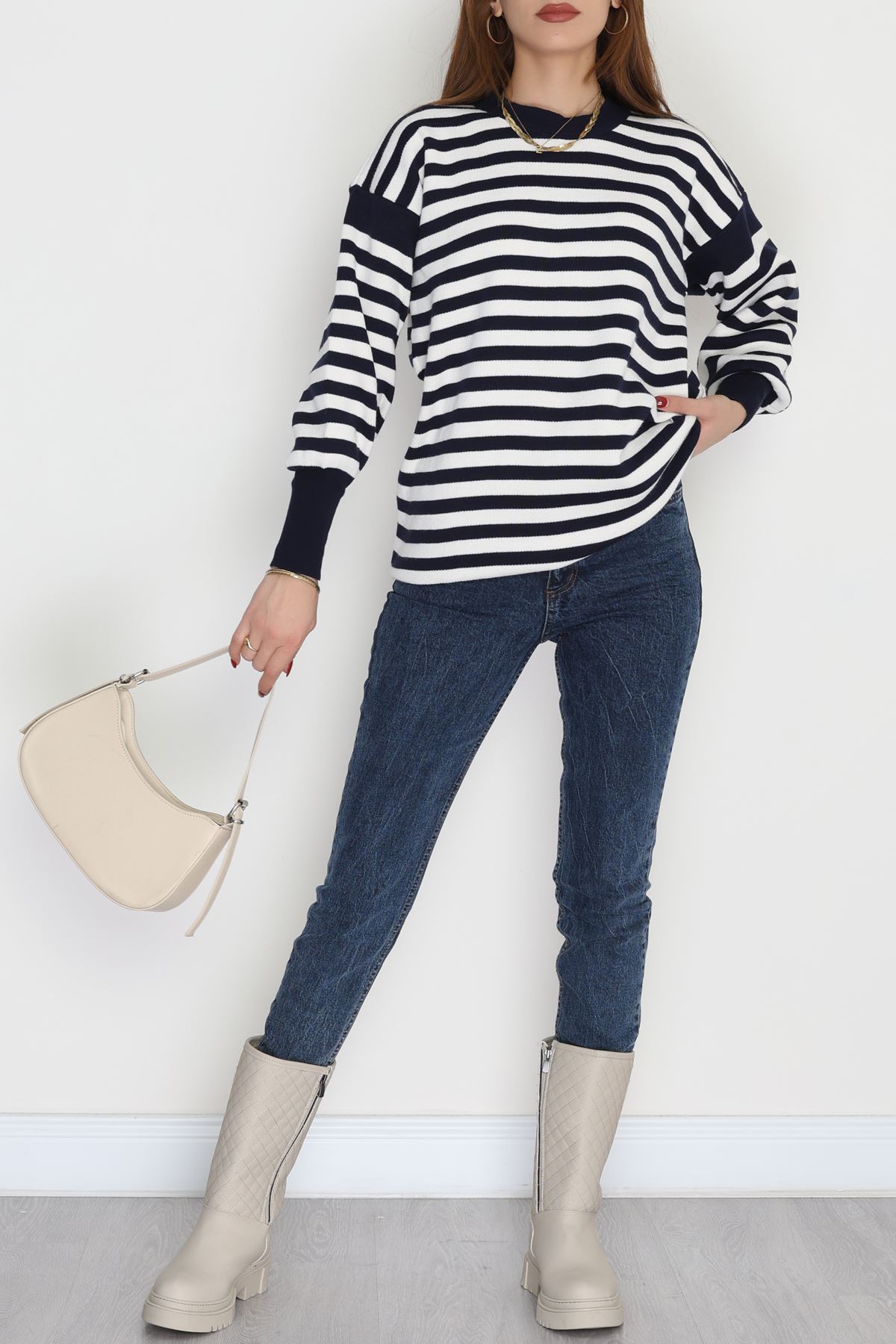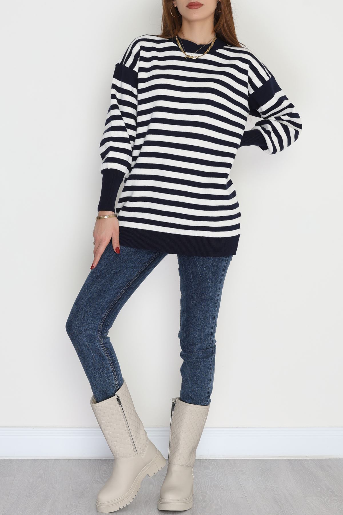 Oversıze Çizgili Triko Lacivertlatte - 2025.1577.