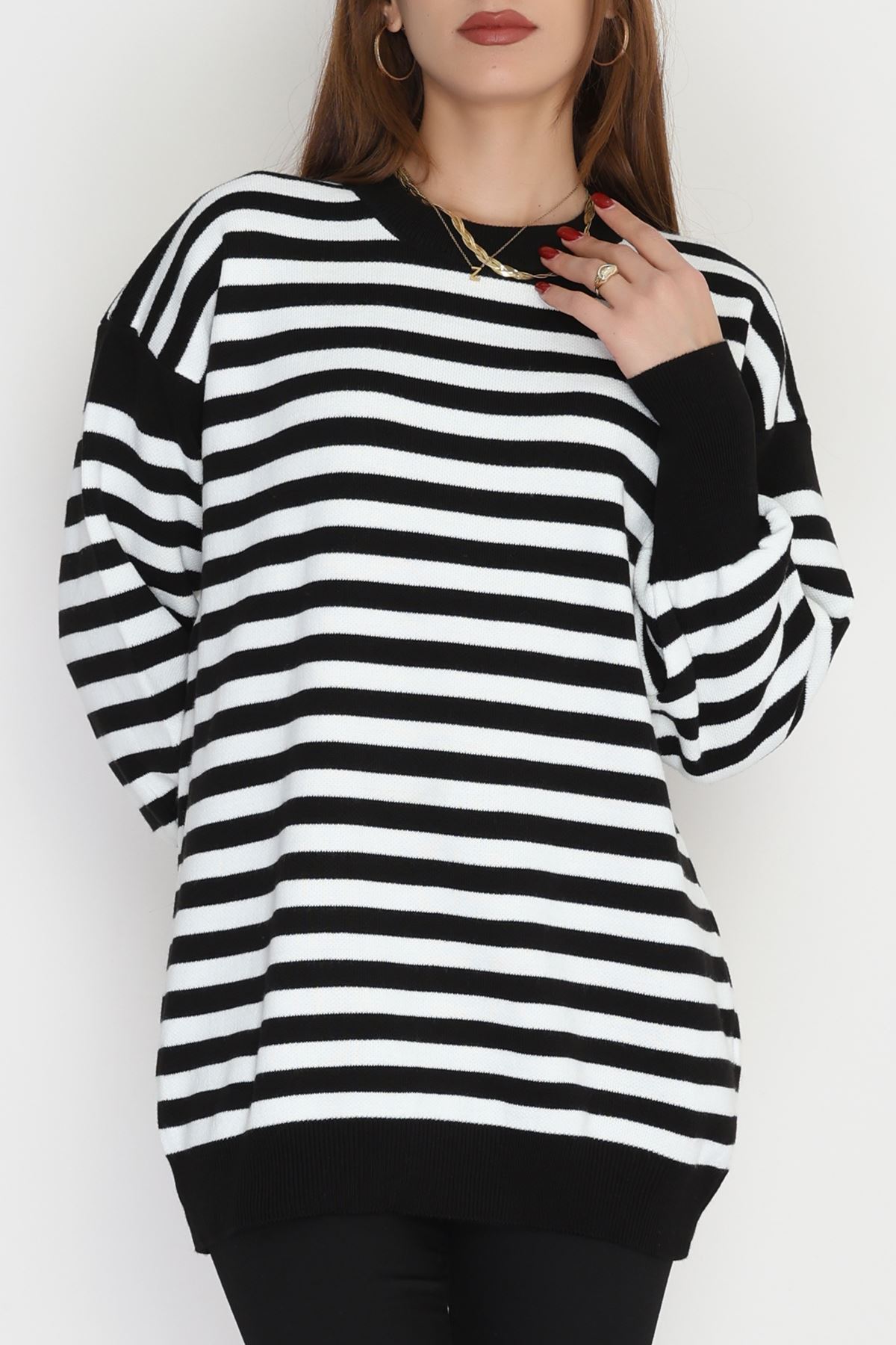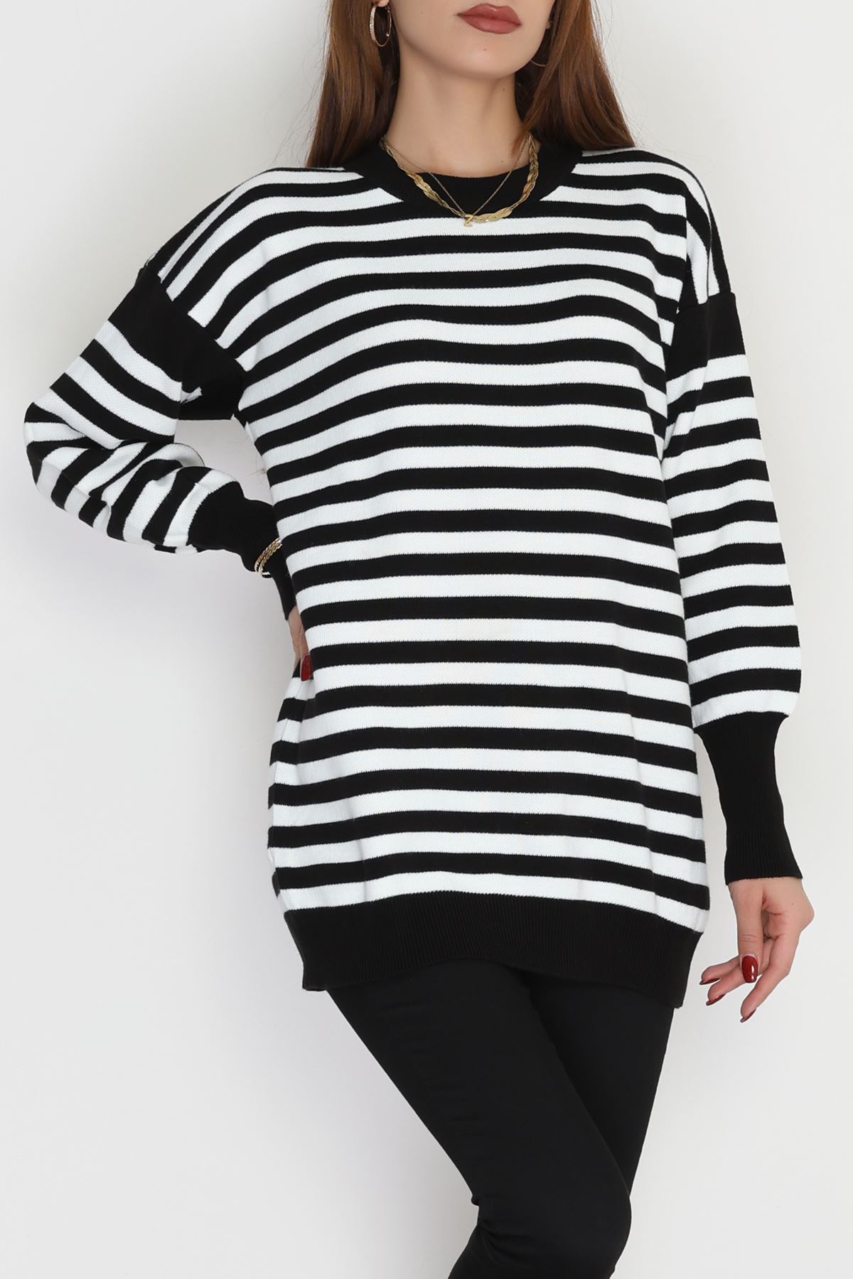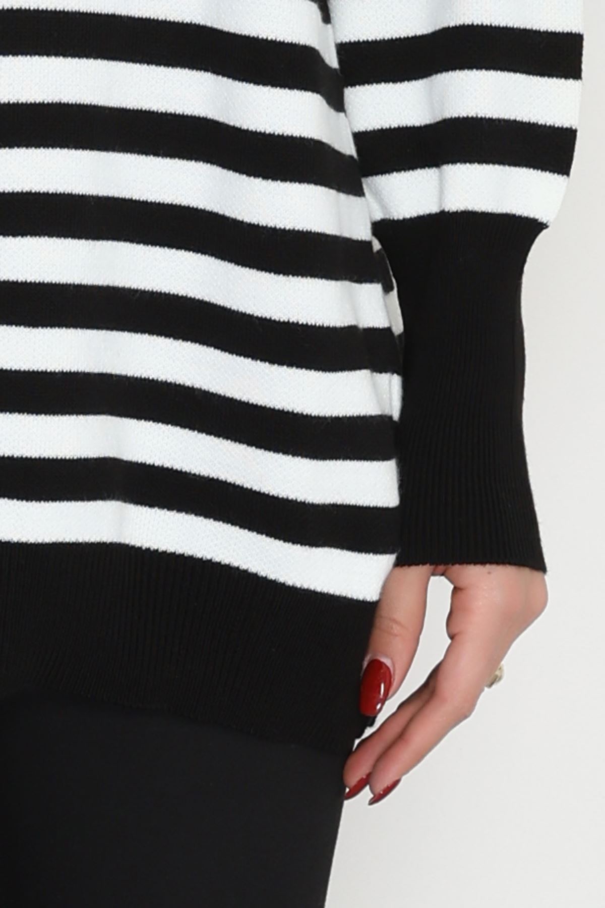 Oversıze Çizgili Triko Siyahbeyaz - 2025.1577.