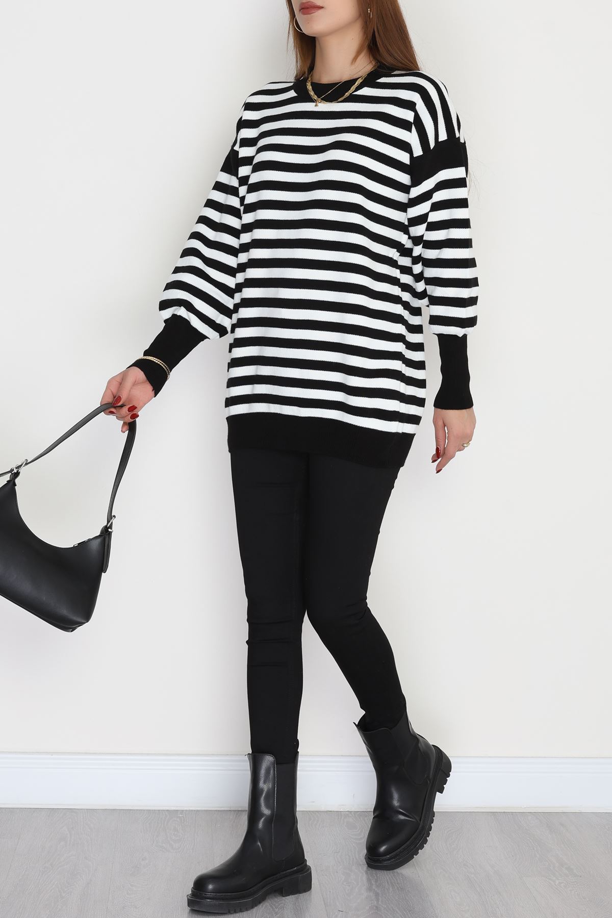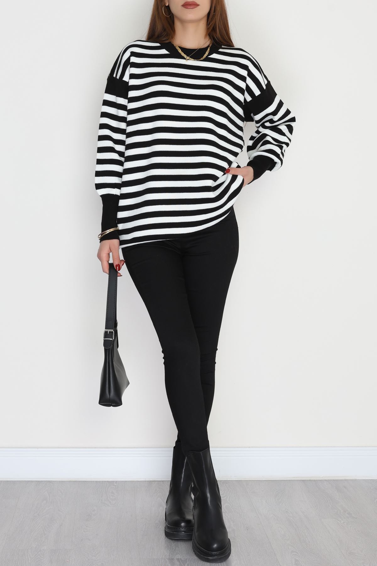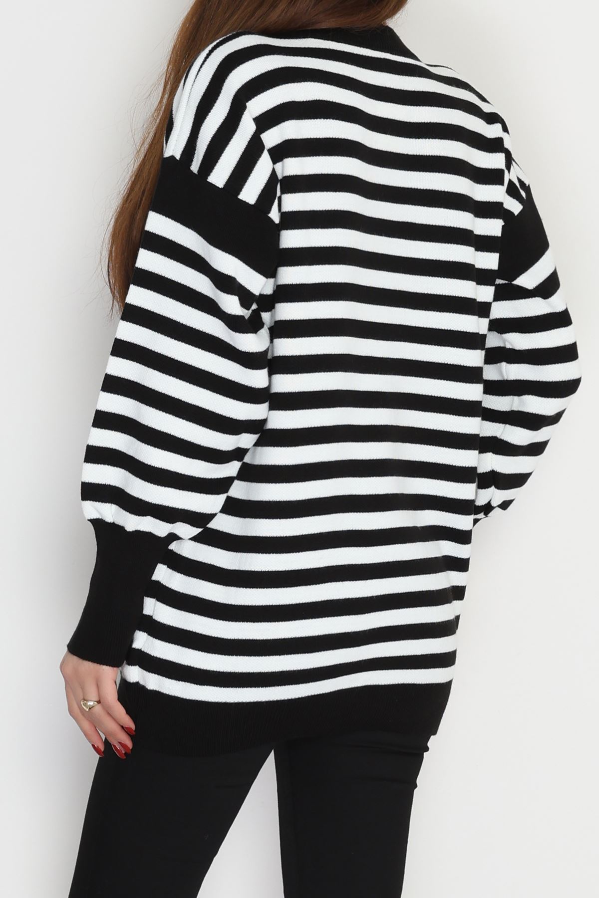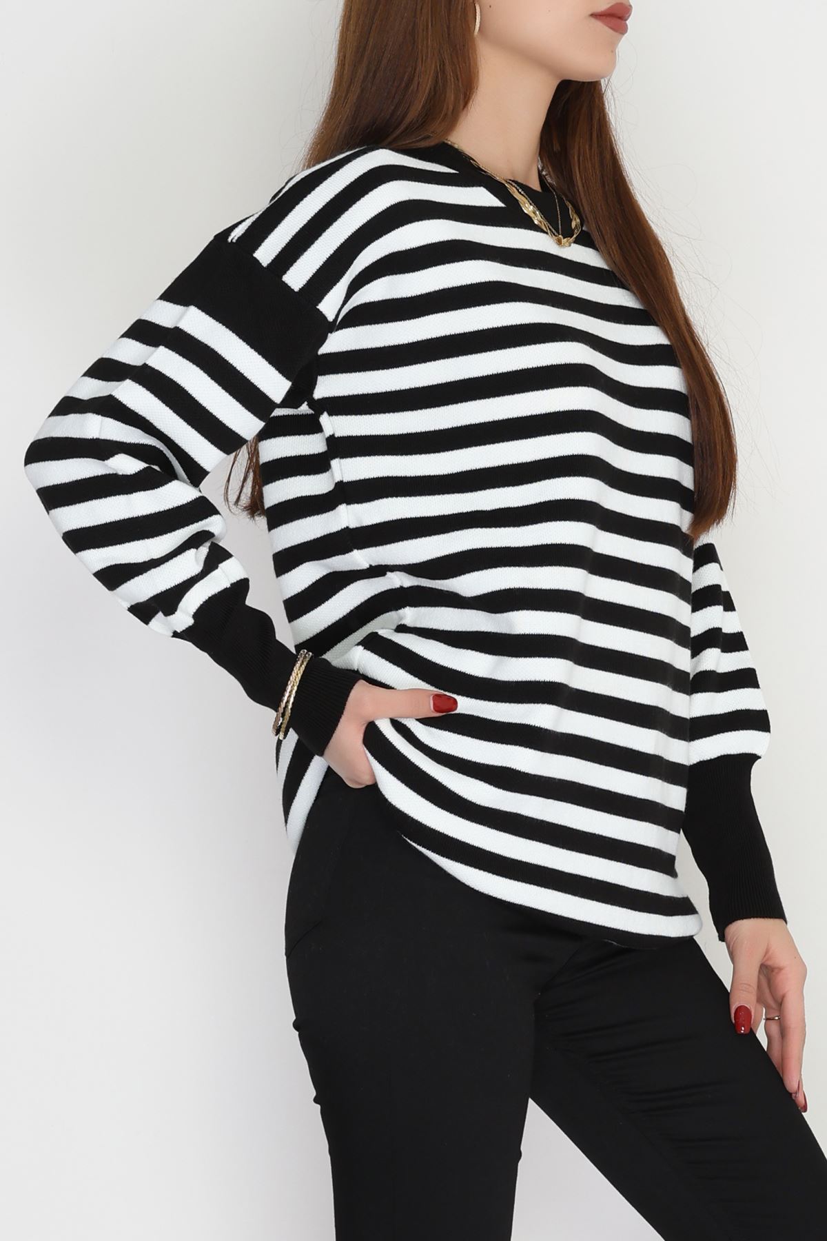 Oversıze Çizgili Triko Siyahbeyaz - 2025.1577.