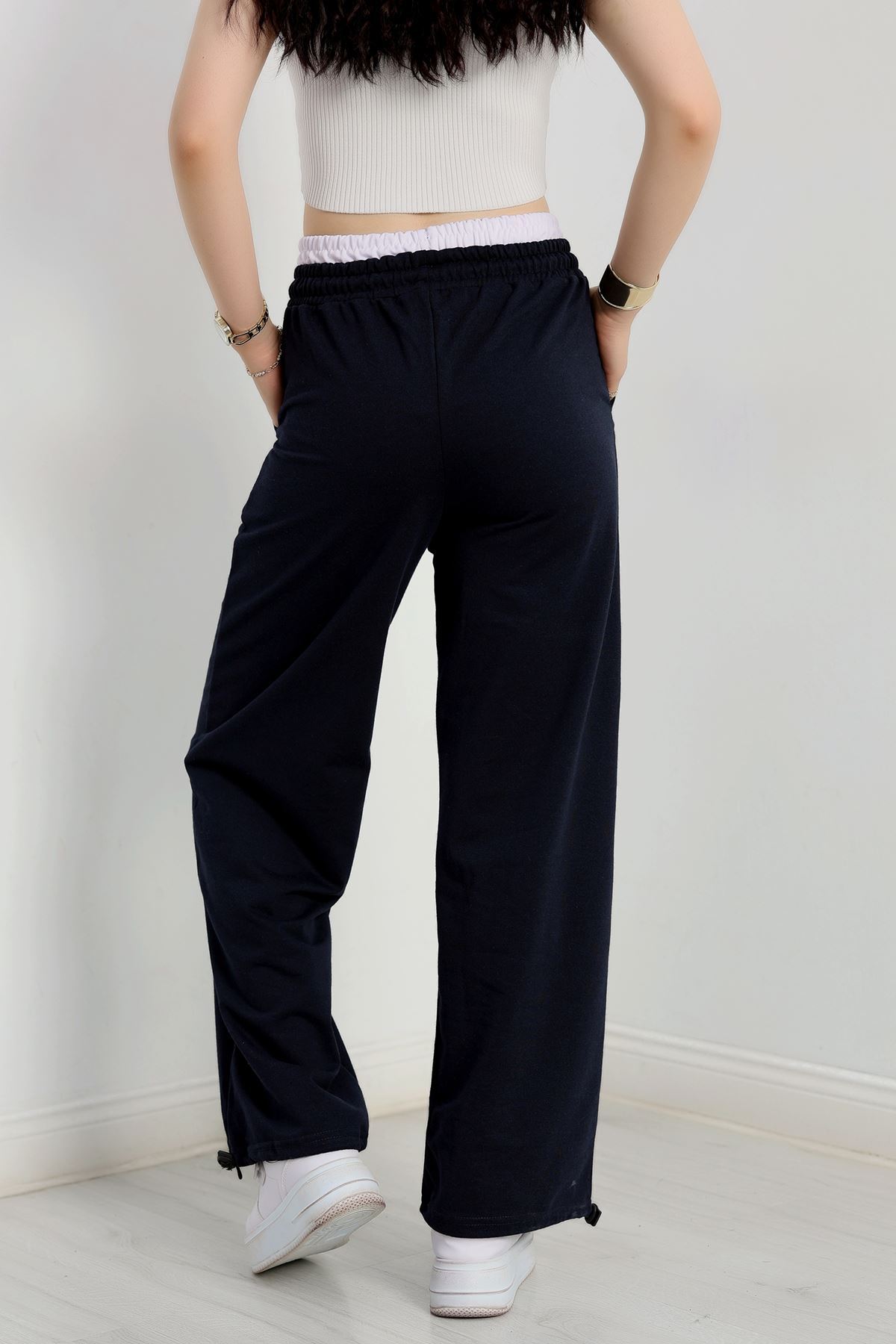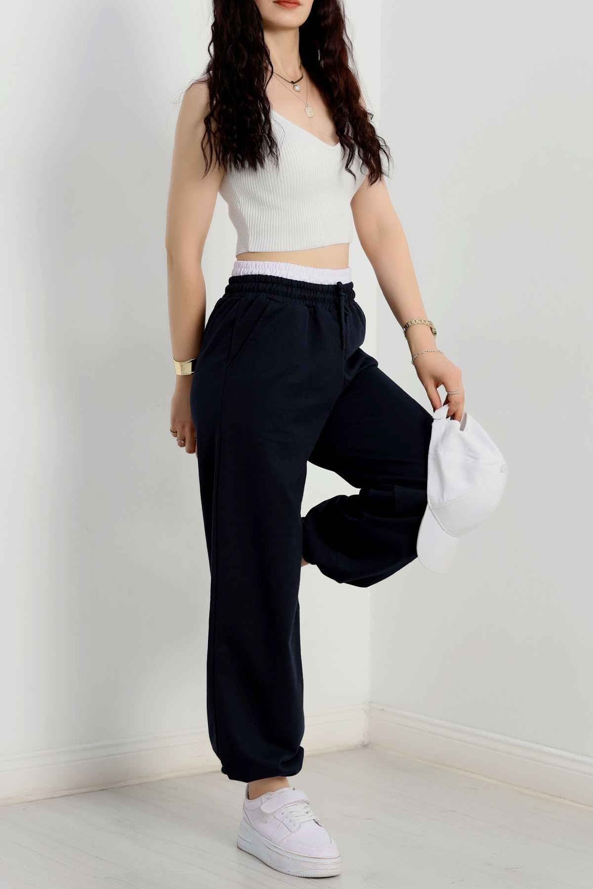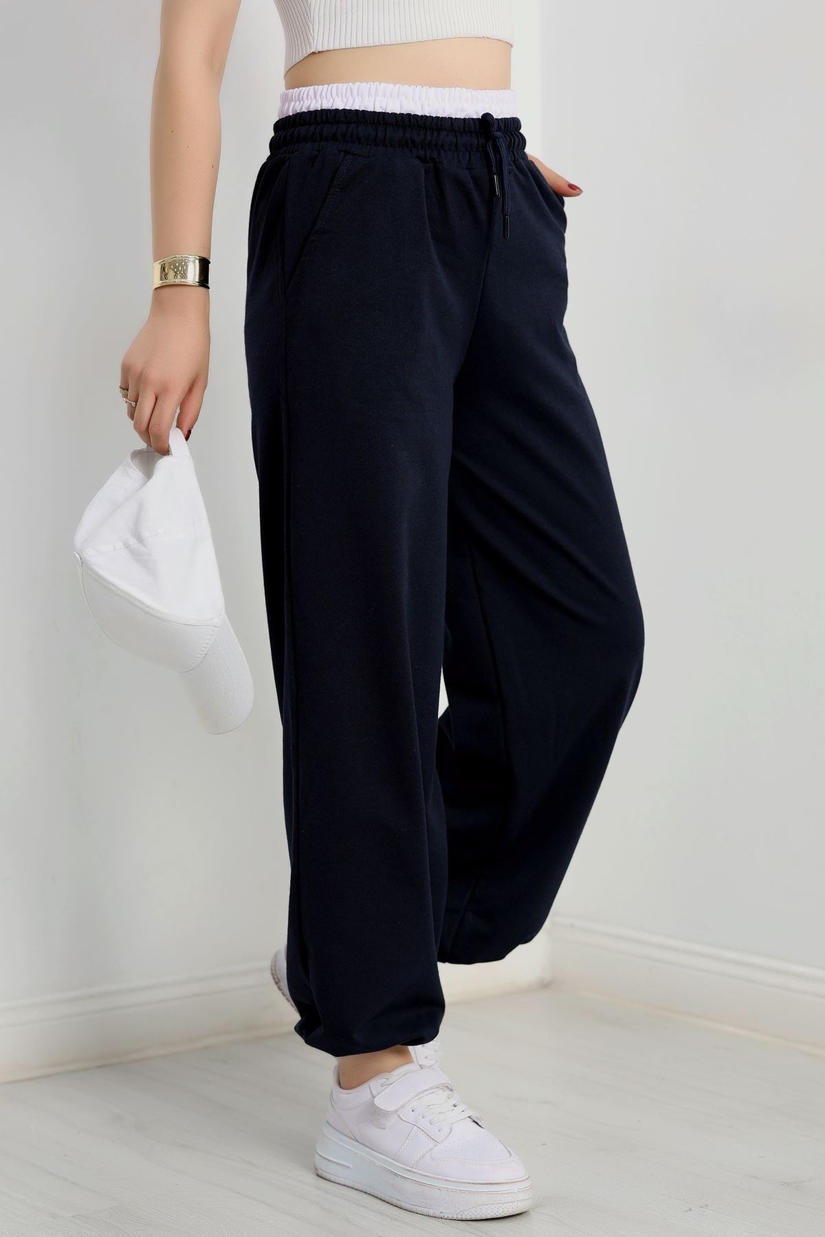 Özel Tasarım İki İplik Beli Lastikli Eşofman Lacivertbeyaz - 70175.1857.