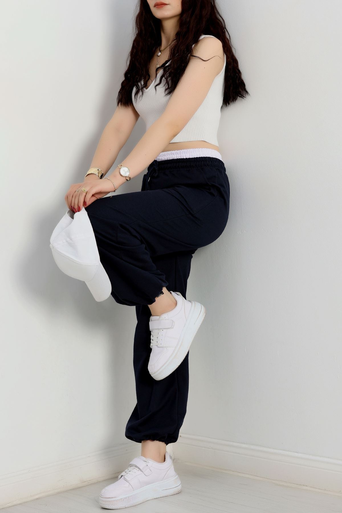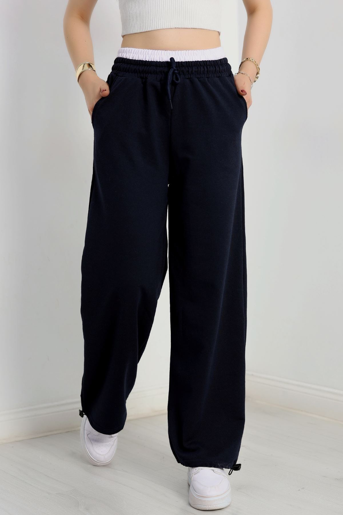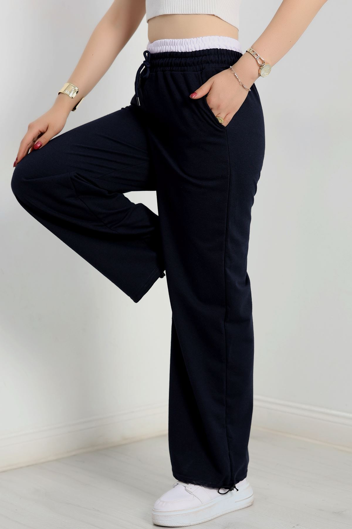 Özel Tasarım İki İplik Beli Lastikli Eşofman Lacivertbeyaz - 70175.1857.