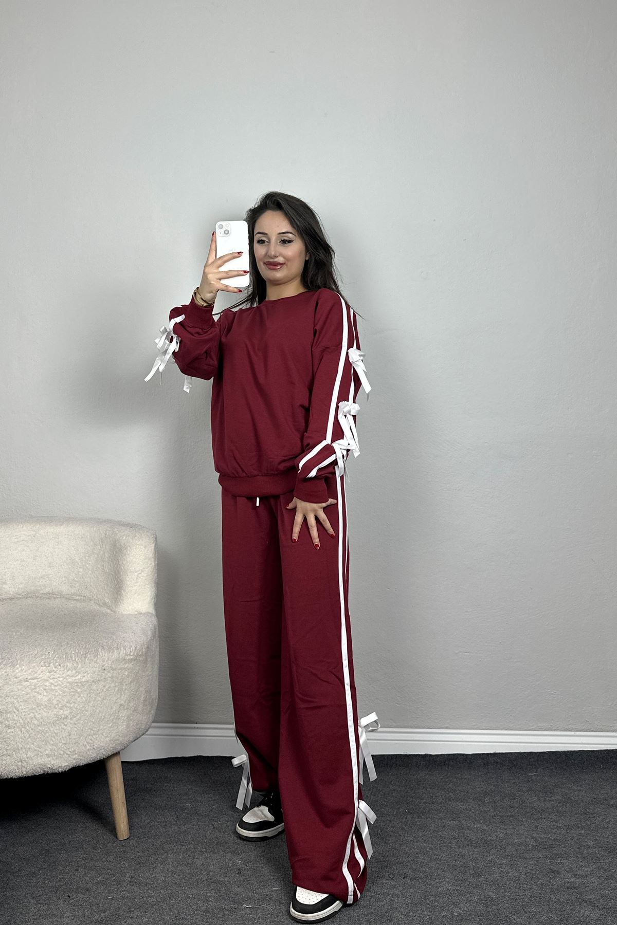 Özel Tasarım İki İplik Kurdele Detay Eşofman Takım Bordo - 70164.1857.