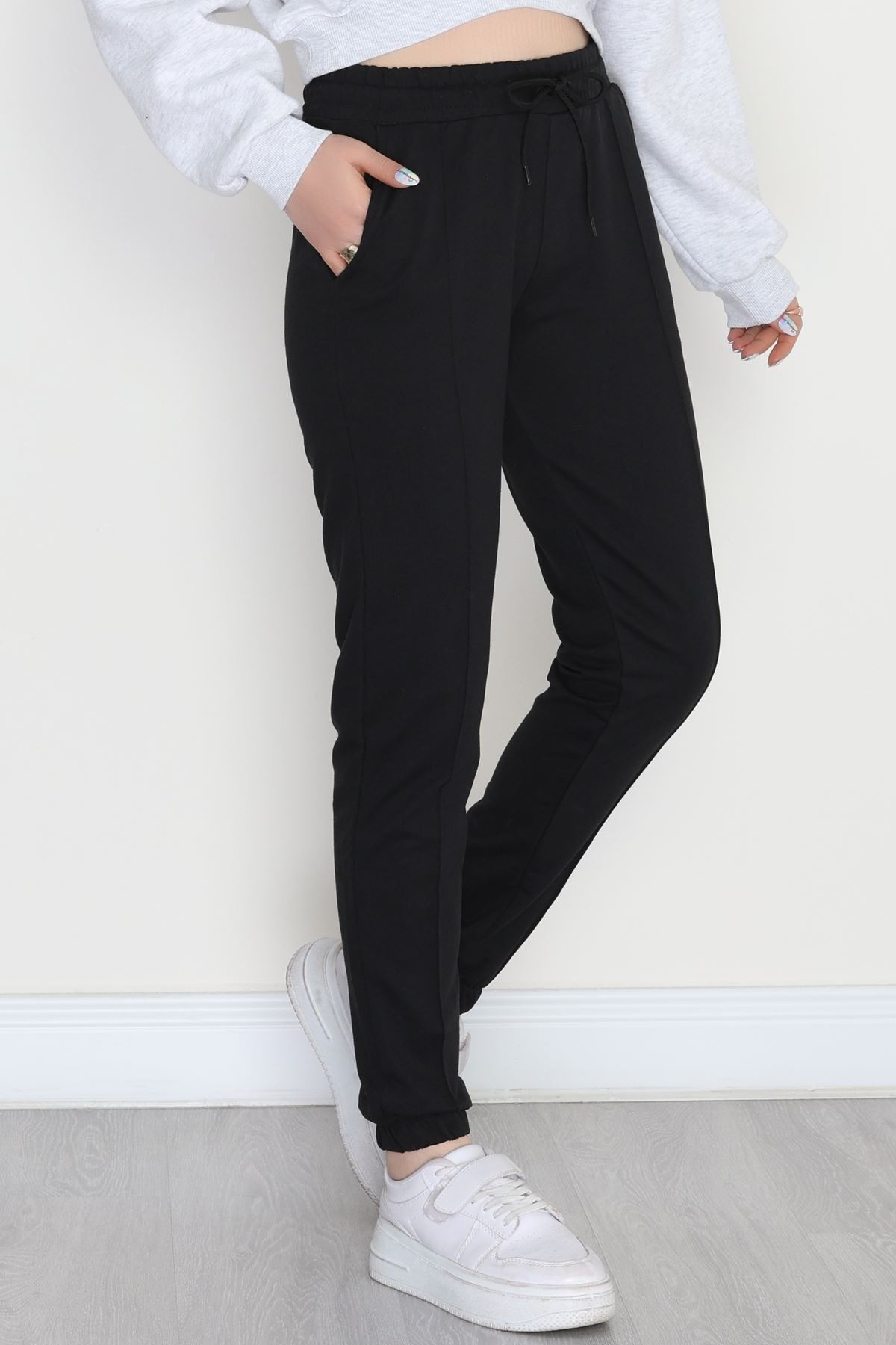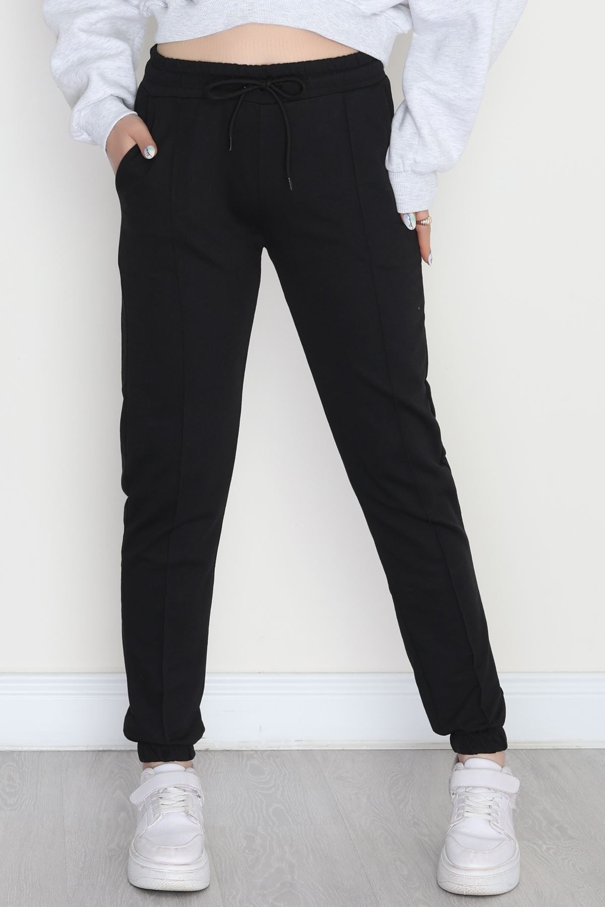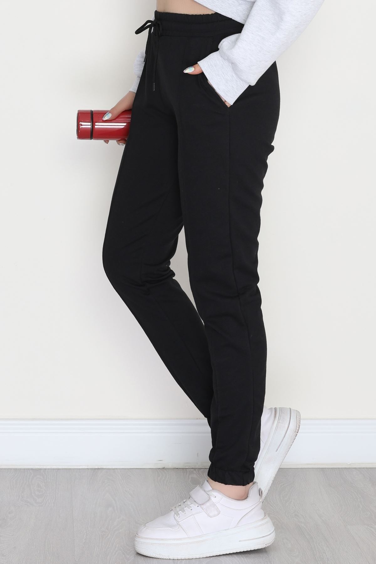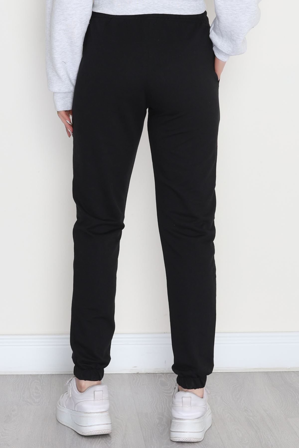 Dantel Şeritli 2 İplik Eşofman Altı Siyah - 50798.1857.
