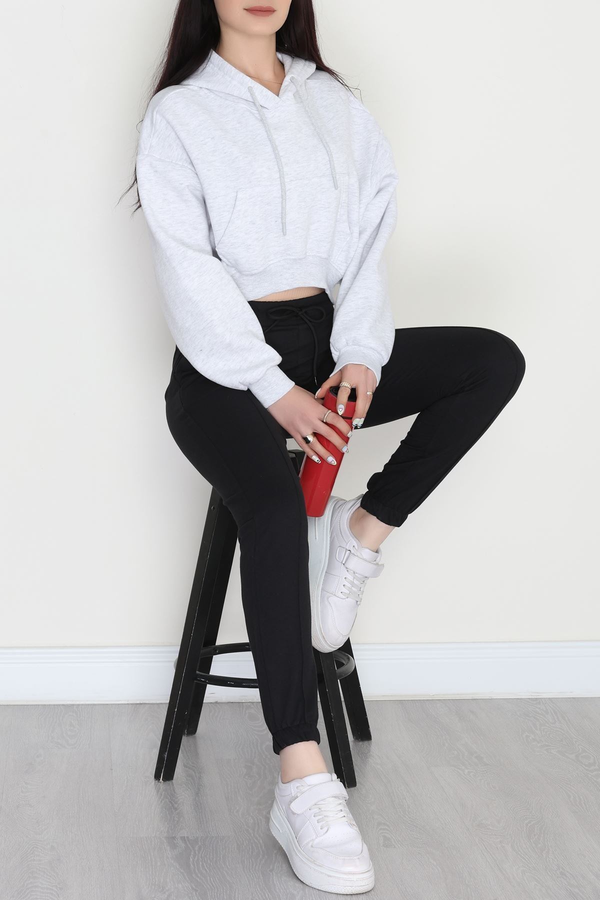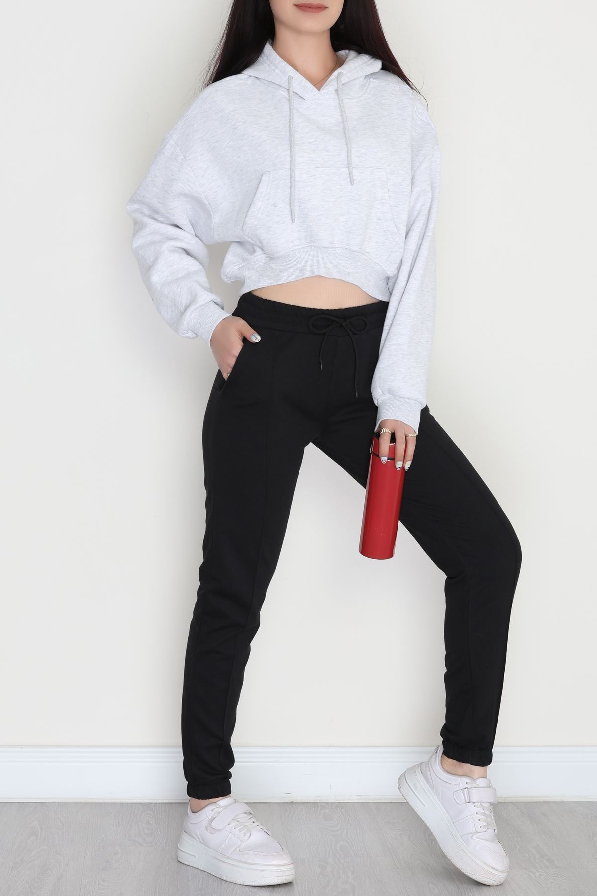 Üç İplik Crop Eşofman Takımı Siyah - 70778.1878.