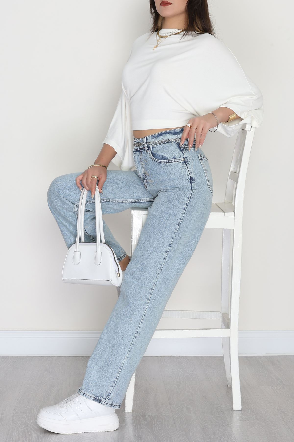 Kesik Paça Palazzo Kot Pantolon Açıkmavi - 19650.1926.