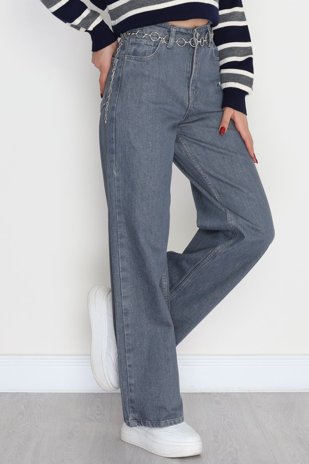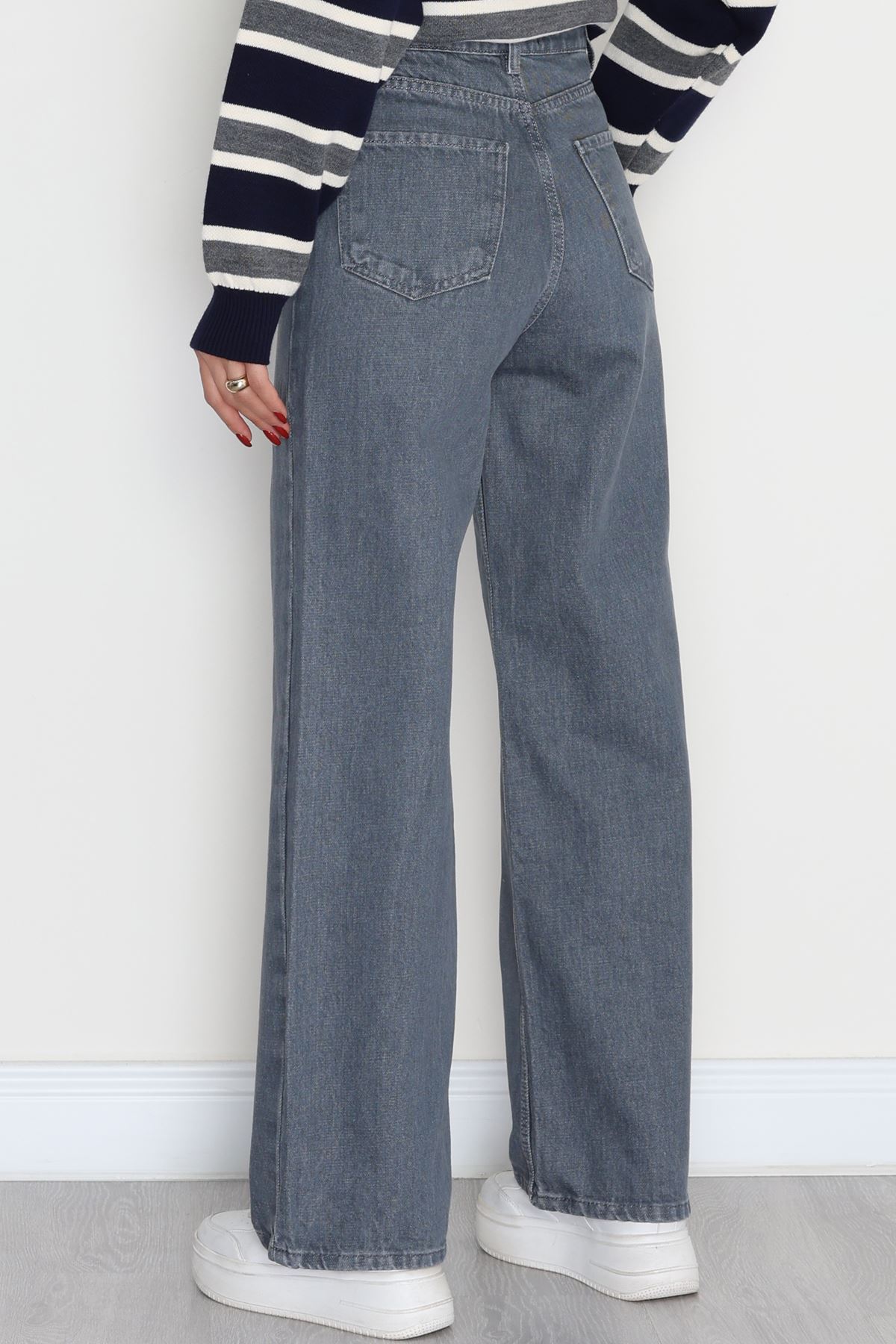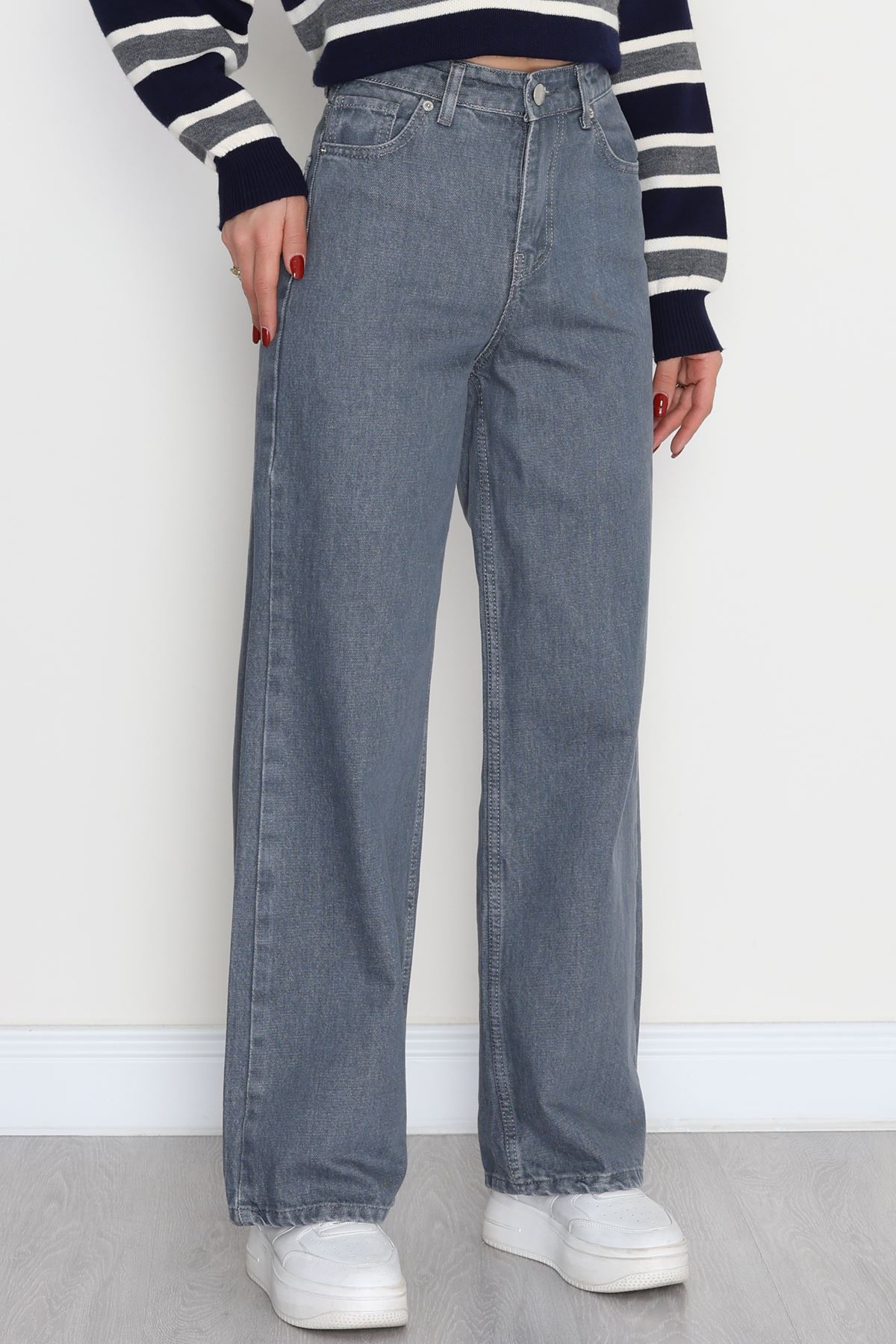 Taşlı Palazzo Kot Pantolon Gri - 30824.1904.