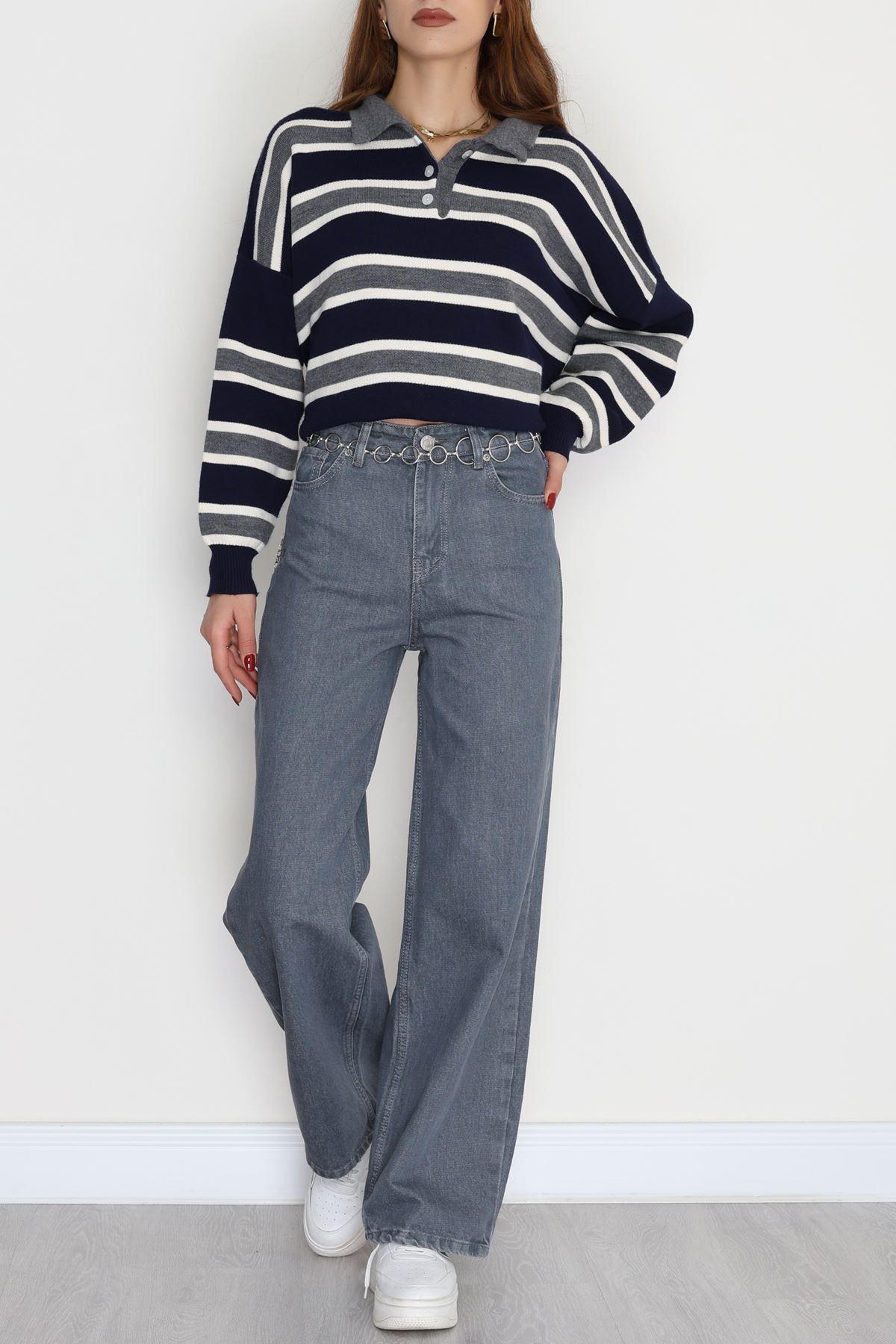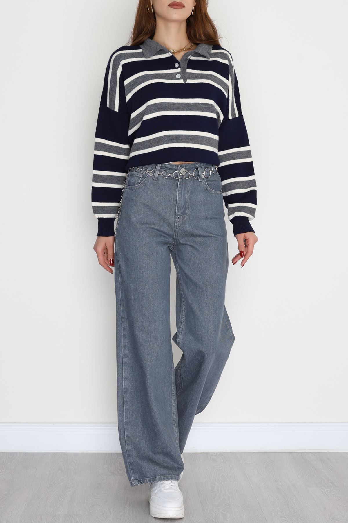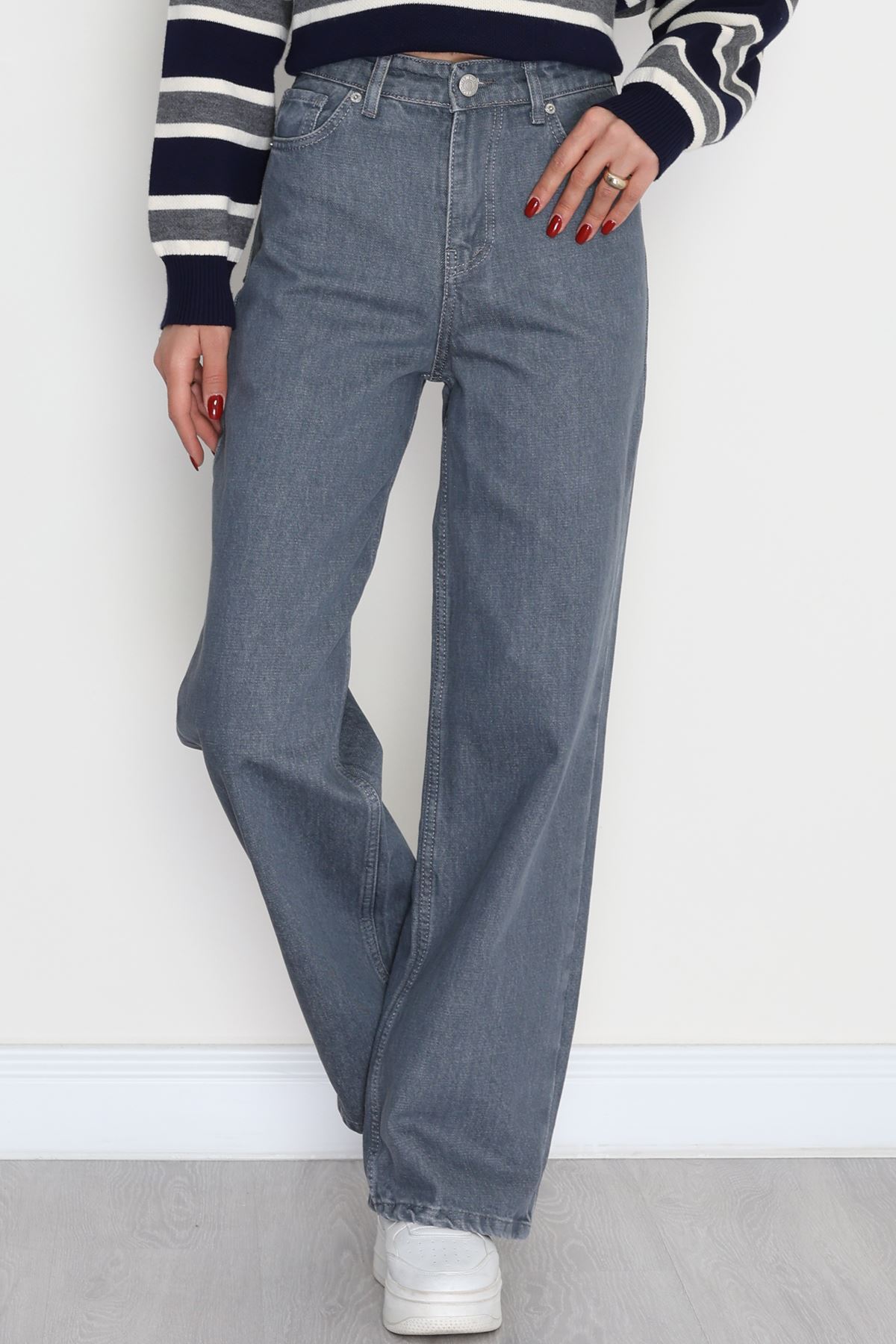 Taşlı Palazzo Kot Pantolon Gri - 30824.1904.