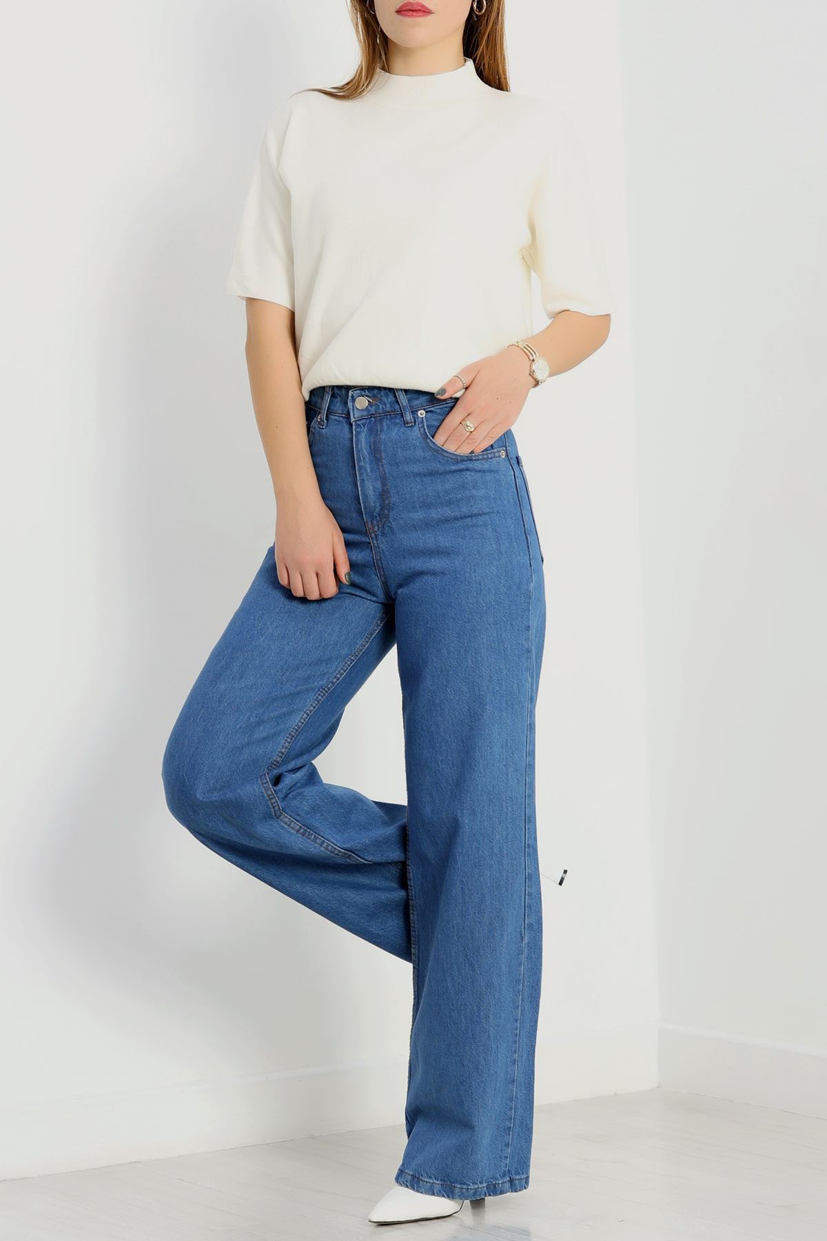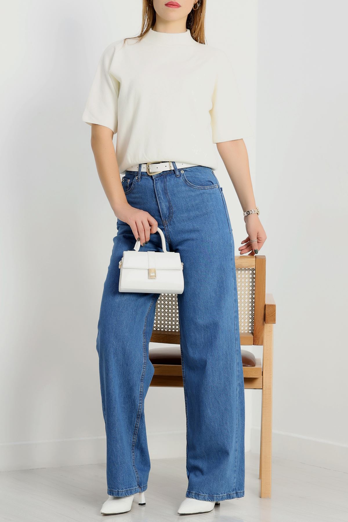 Lazer Kesim Palazzo Kot Pantolon Beyaz - 30851.1966.