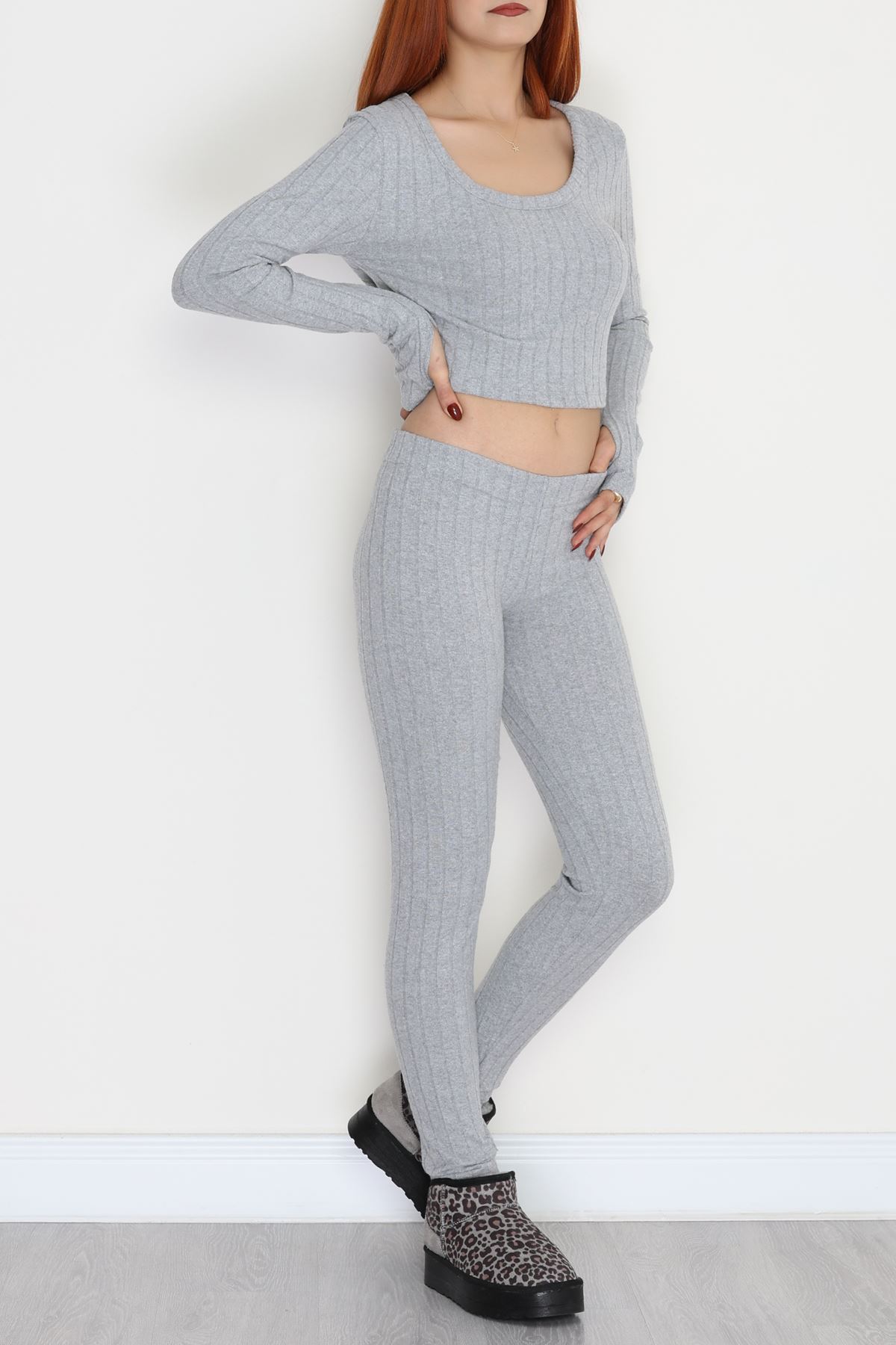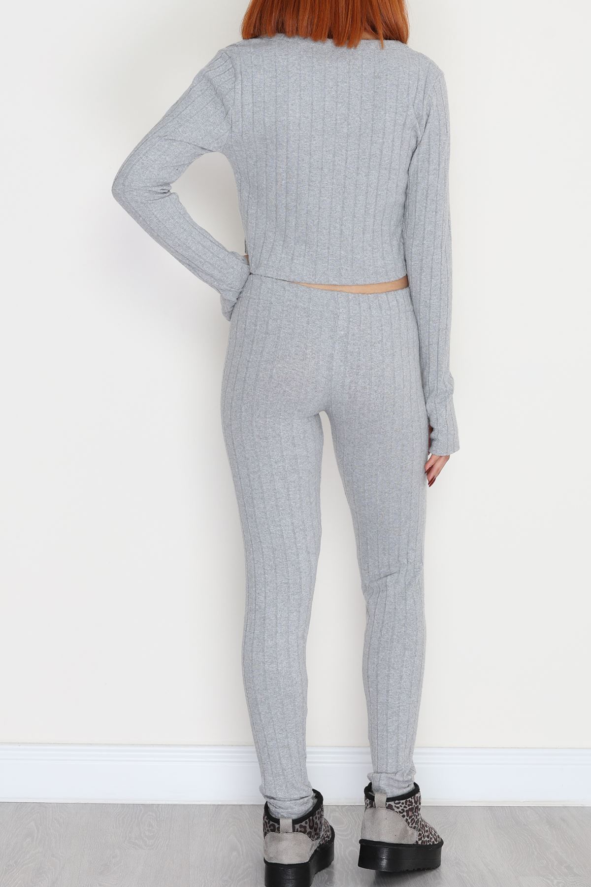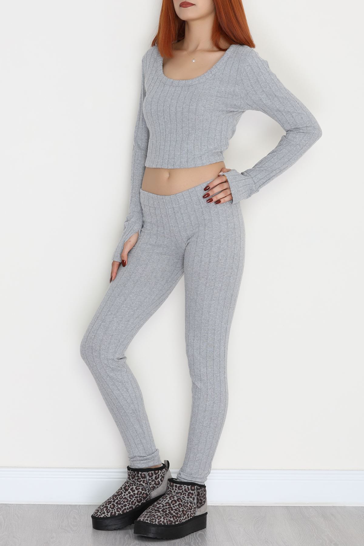 Parmak Geçmeli U Yaka Raporlu İnterlok Takım Gri - 90975.1748.