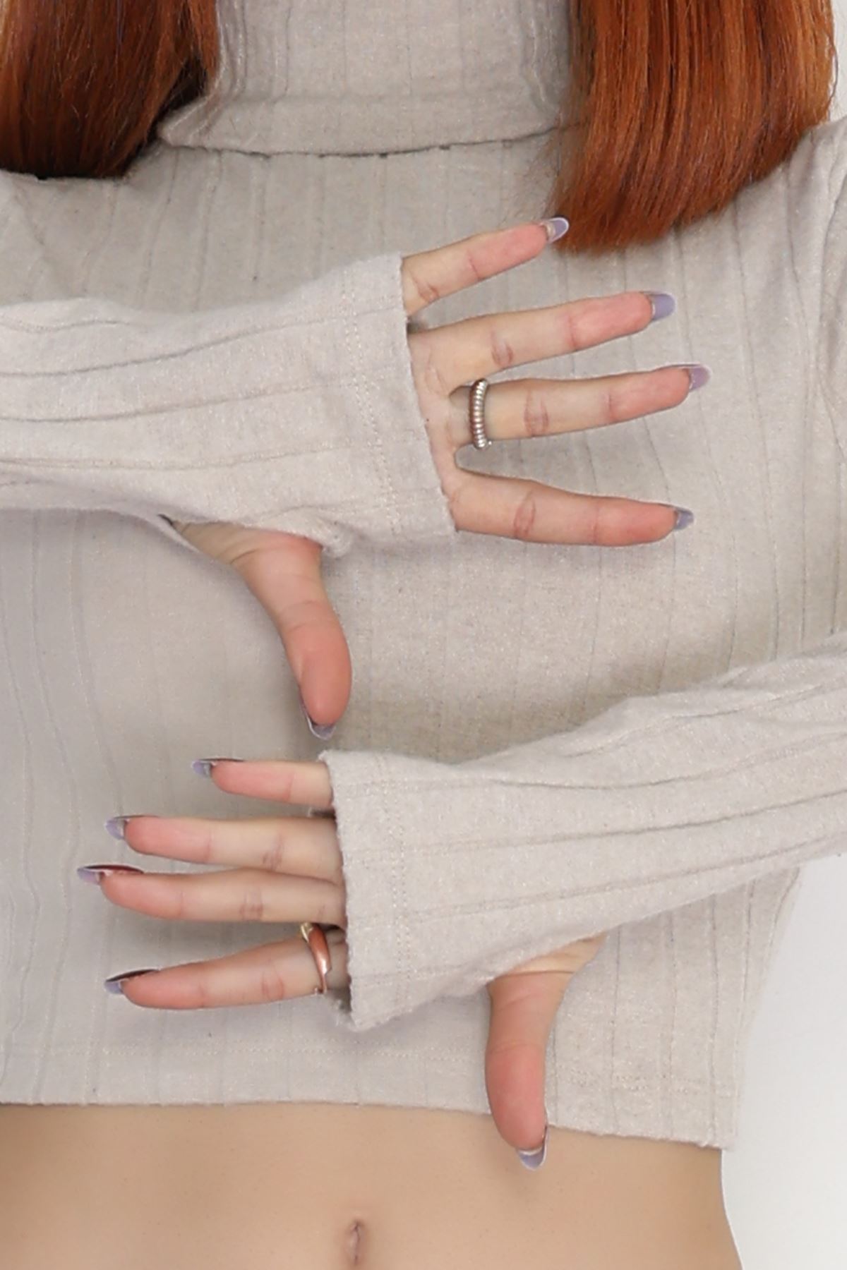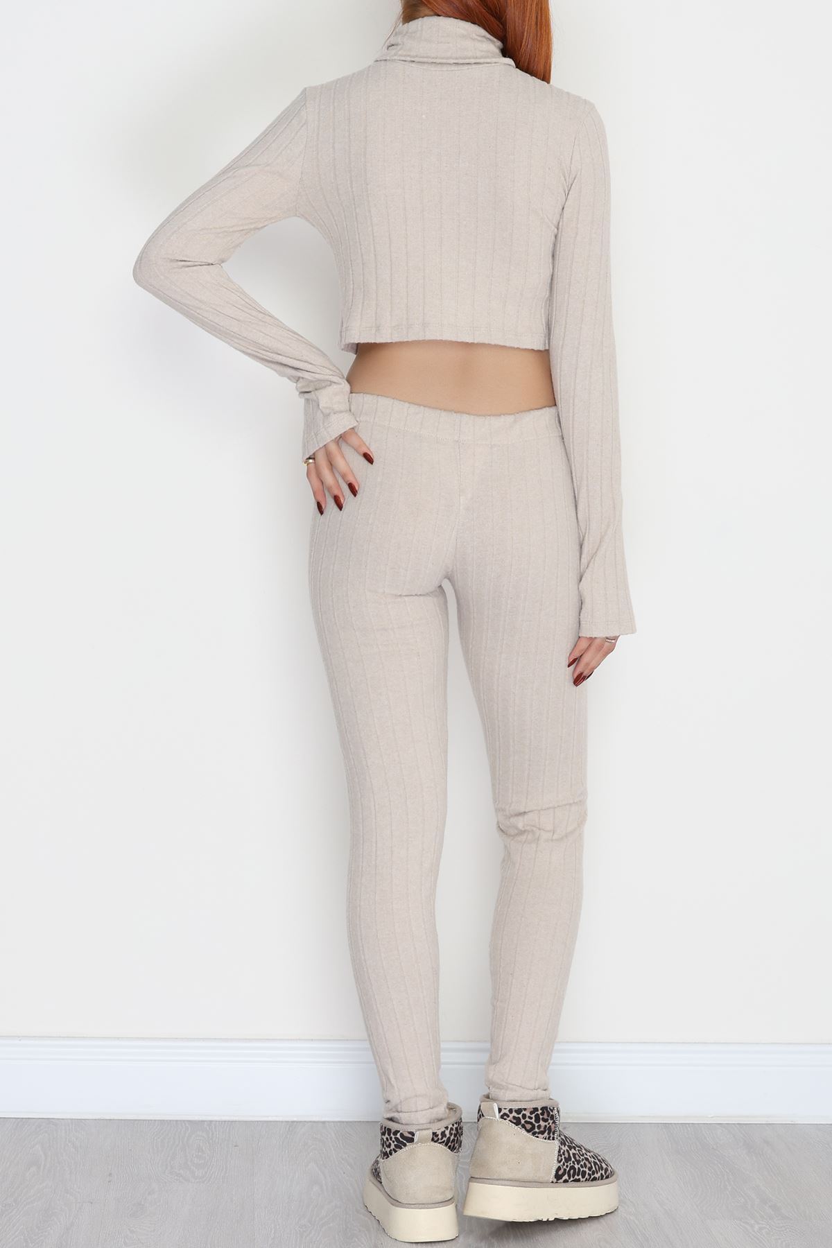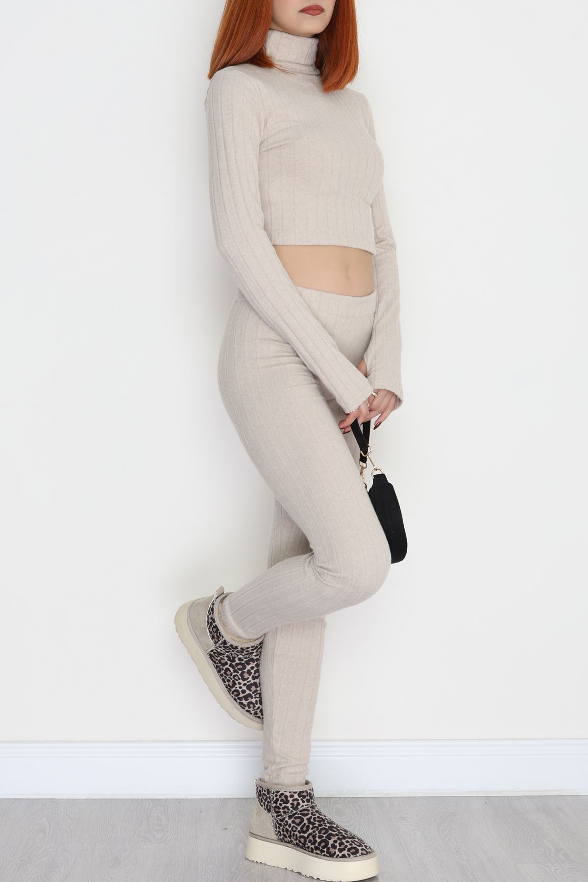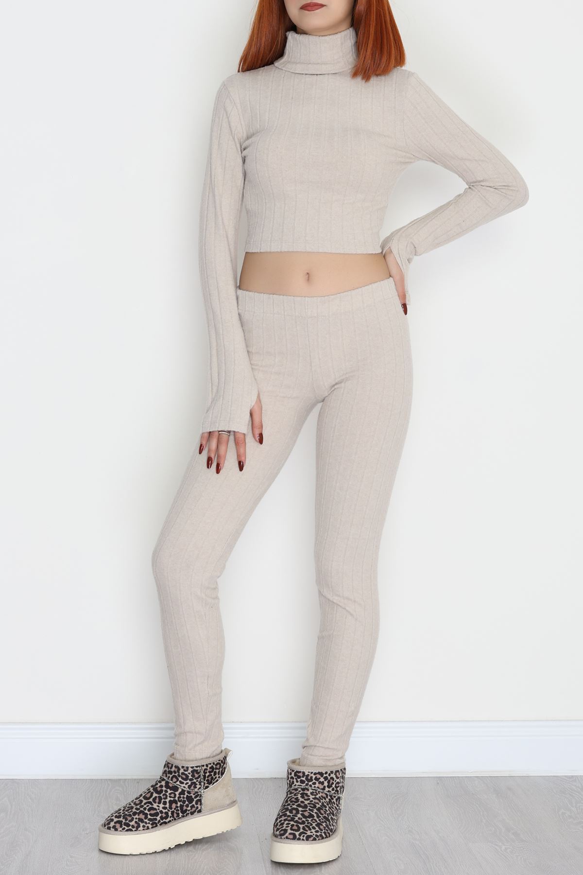 Parmak Geçmeli Yarım Dik Yaka Likralı Raporlu İnterlok Takım Bej - 90968.1748.