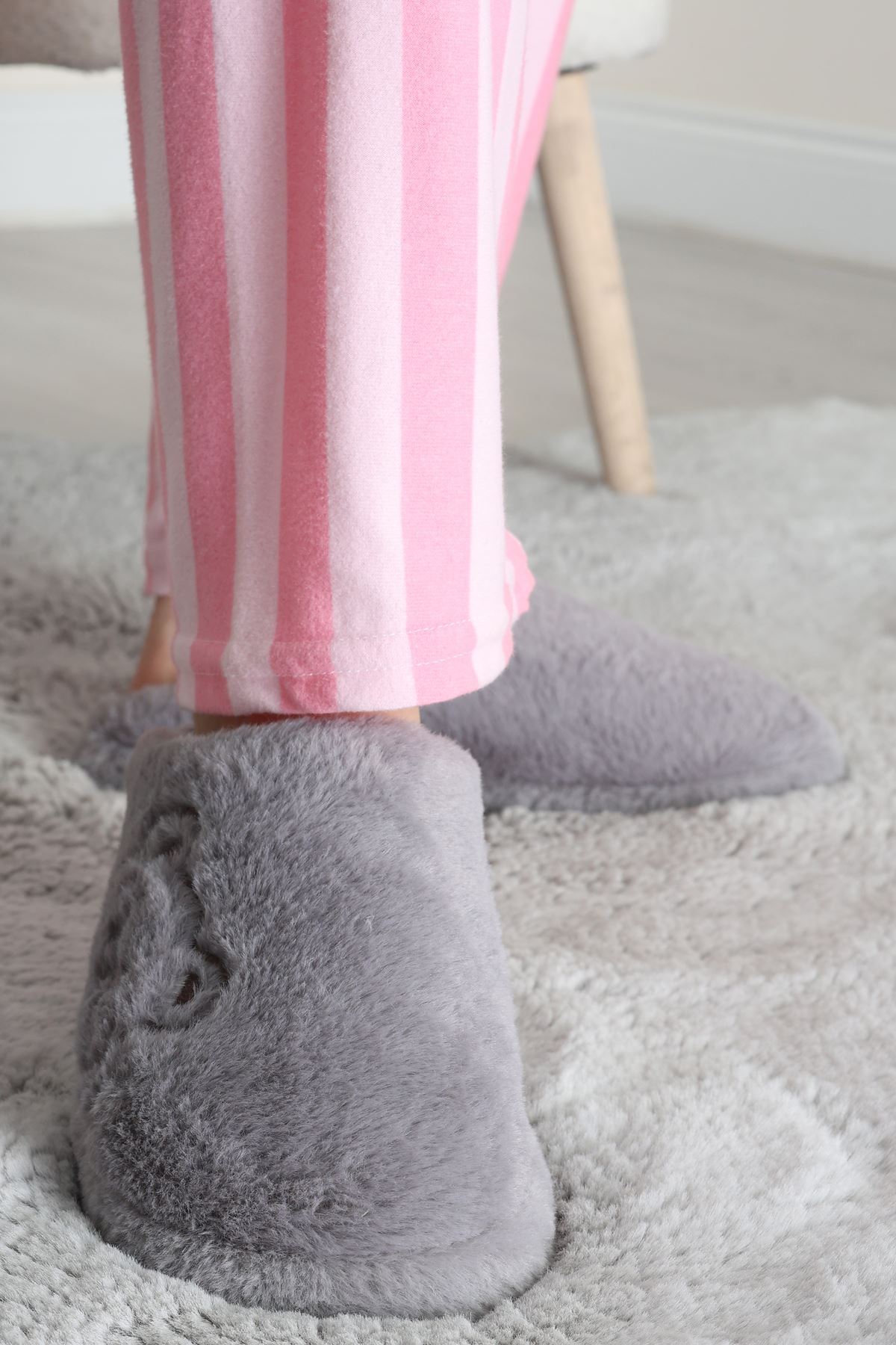 Peluş Ayıcıklı Ev Terliği Gri - 31465.264.