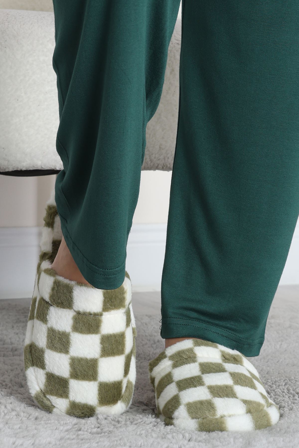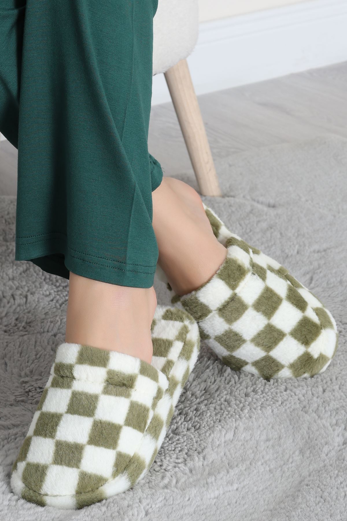 Peluş Ev Terliği Haki - 31427.264.