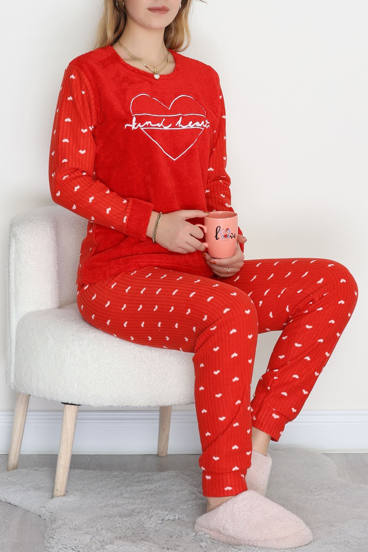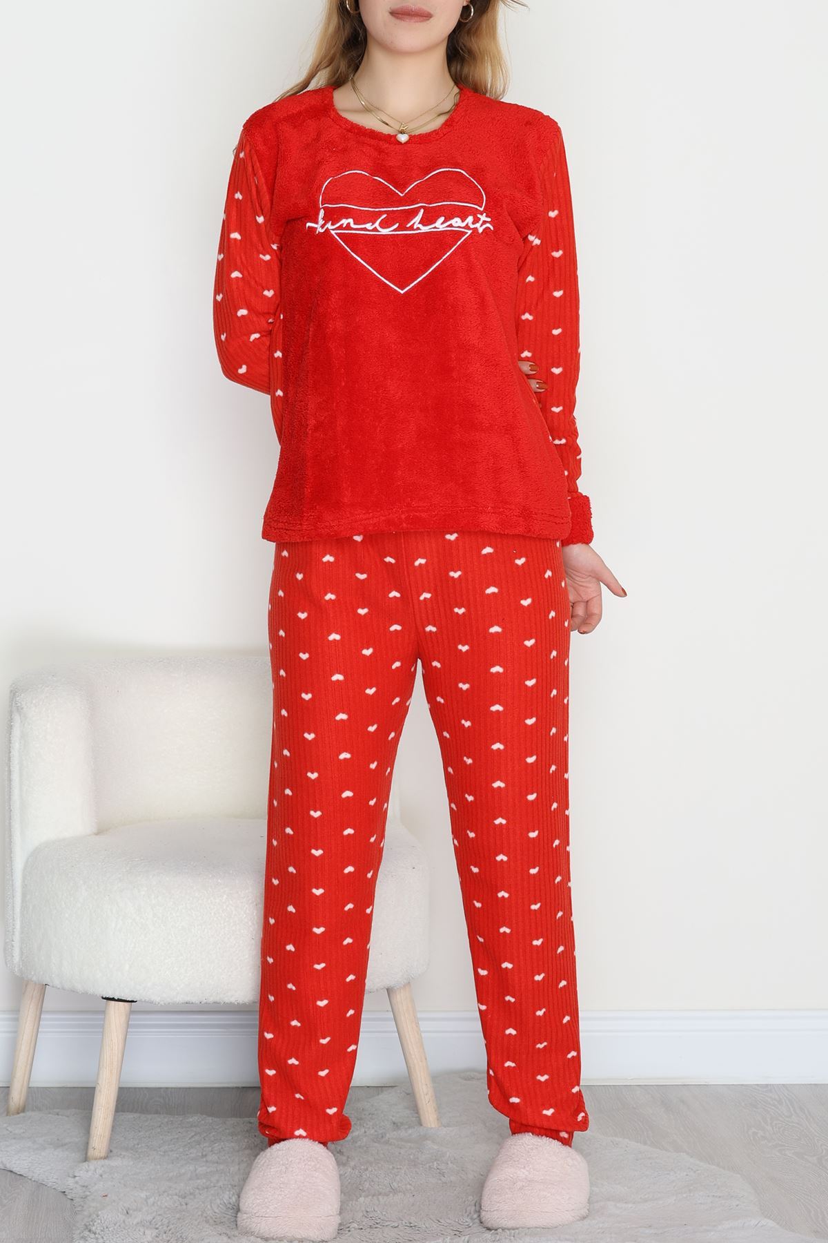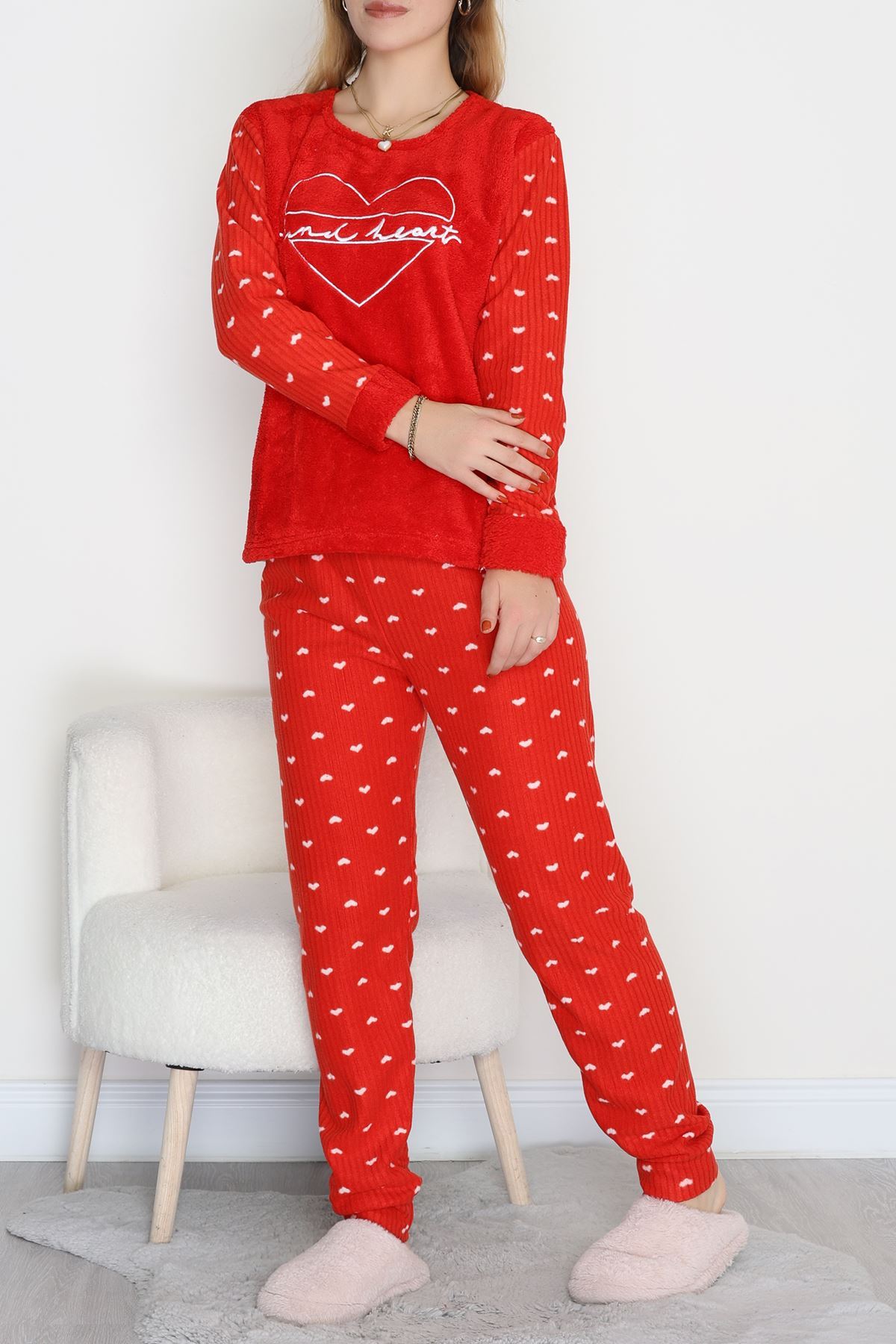 Peluş Polar Pijama Takımı Kırmızıbeyaz - 50767.1961.