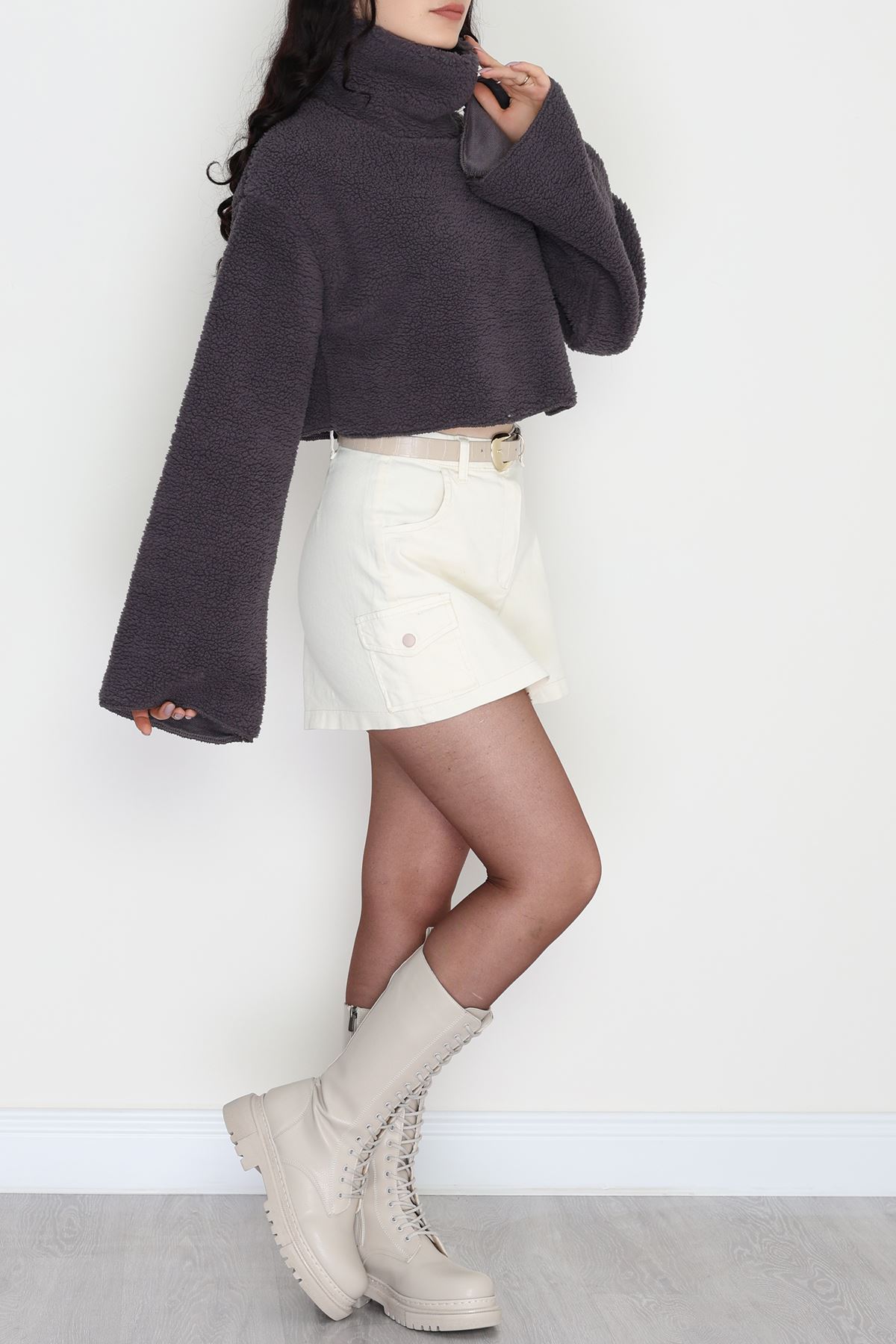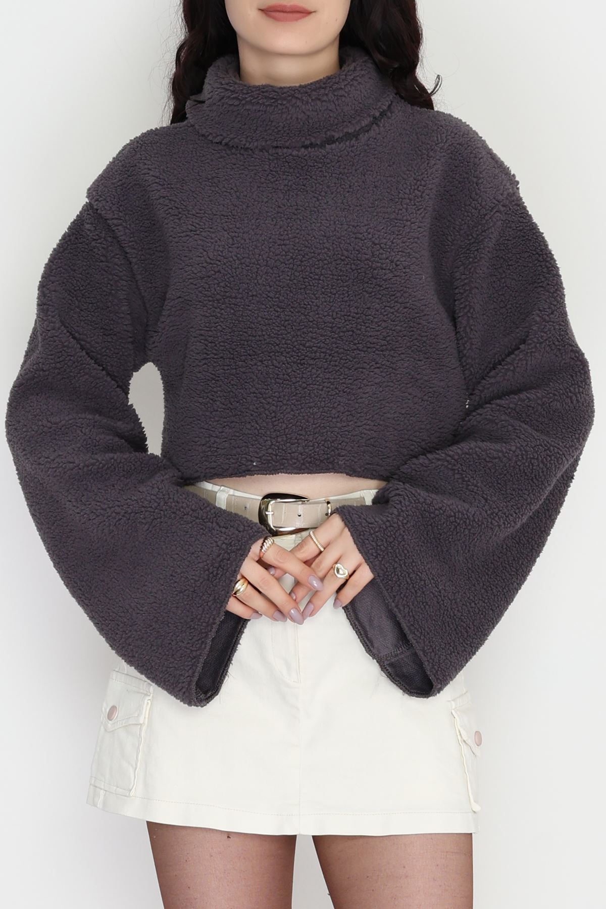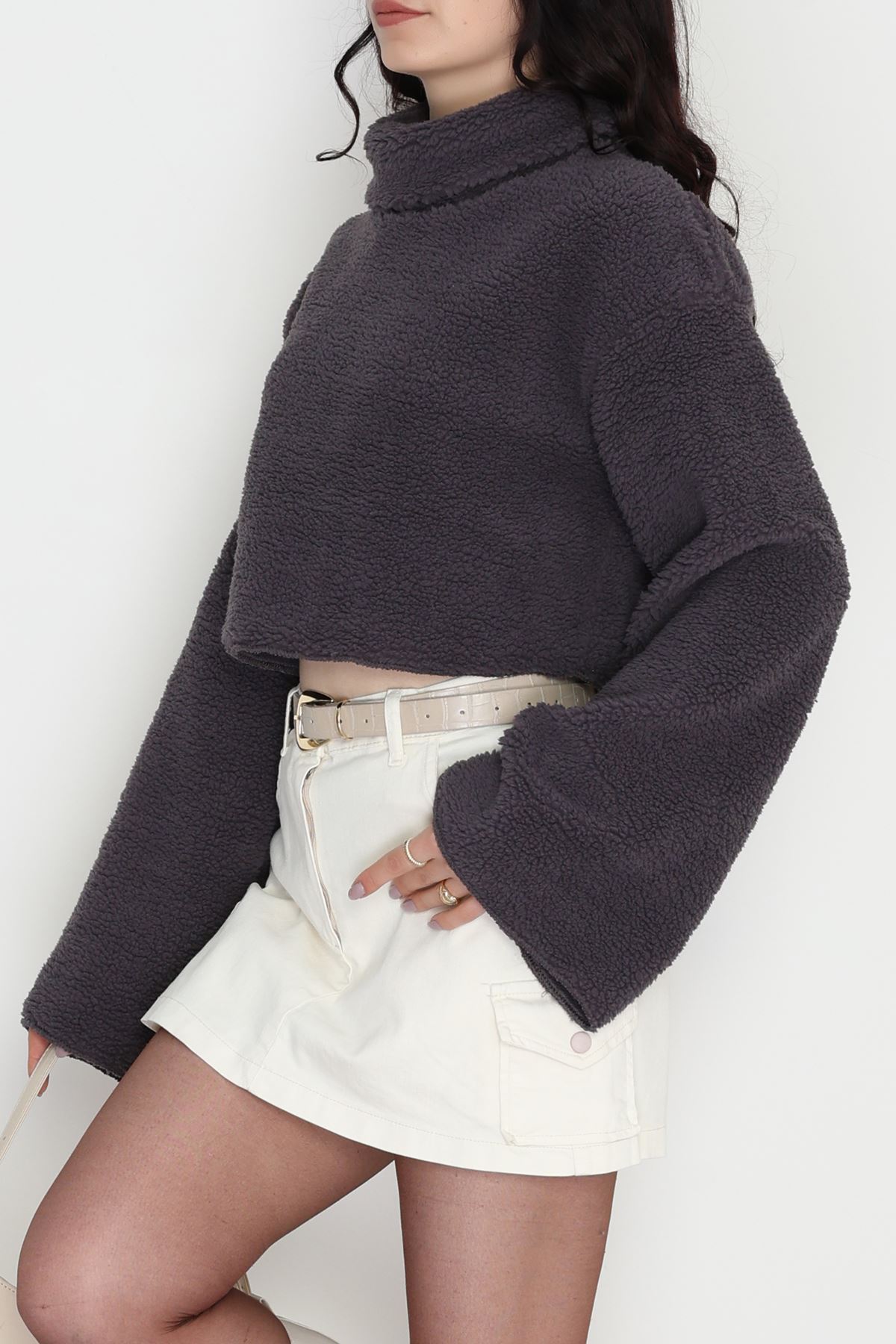 Şardonlu Oversize Crop Sweat Kahve - 21391.200.