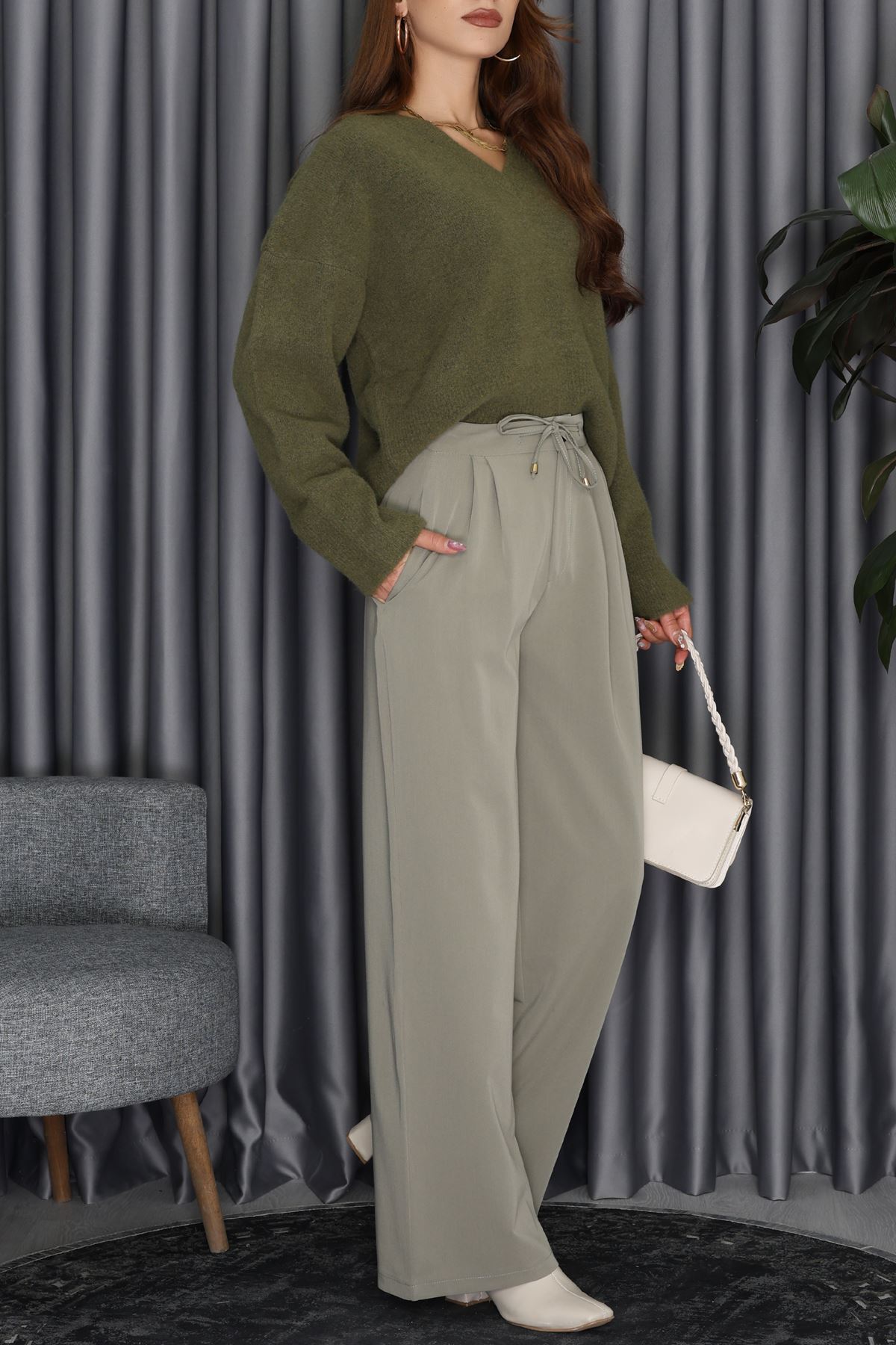 Perry Fashion Gramajlı Dabıl Kemerli Pantolon Haki - 90086.1995.