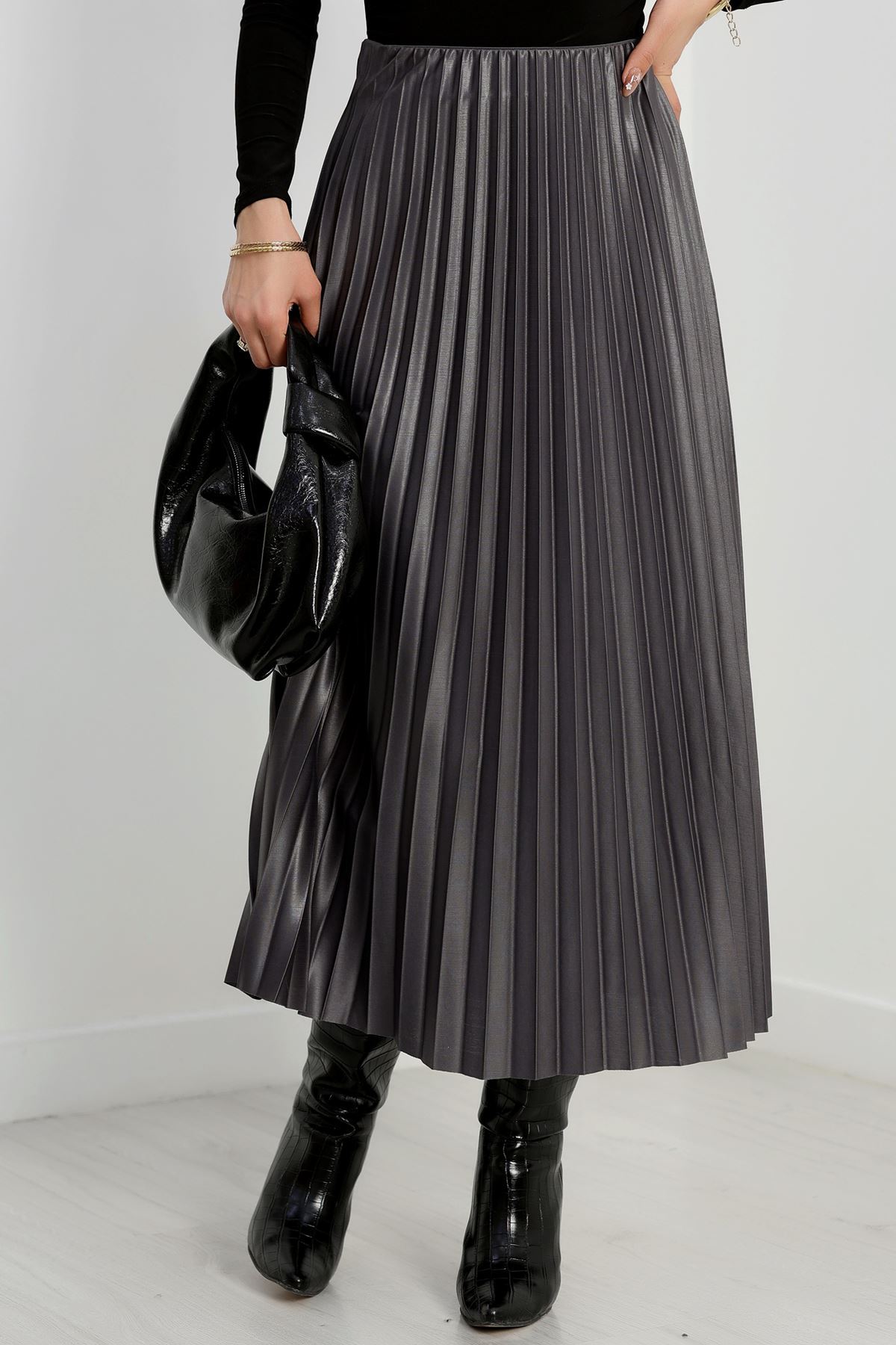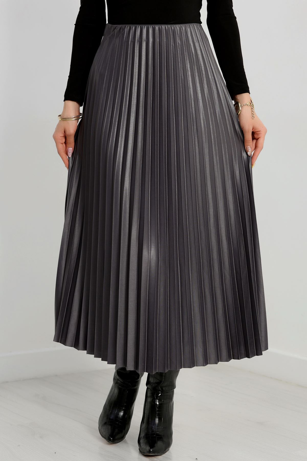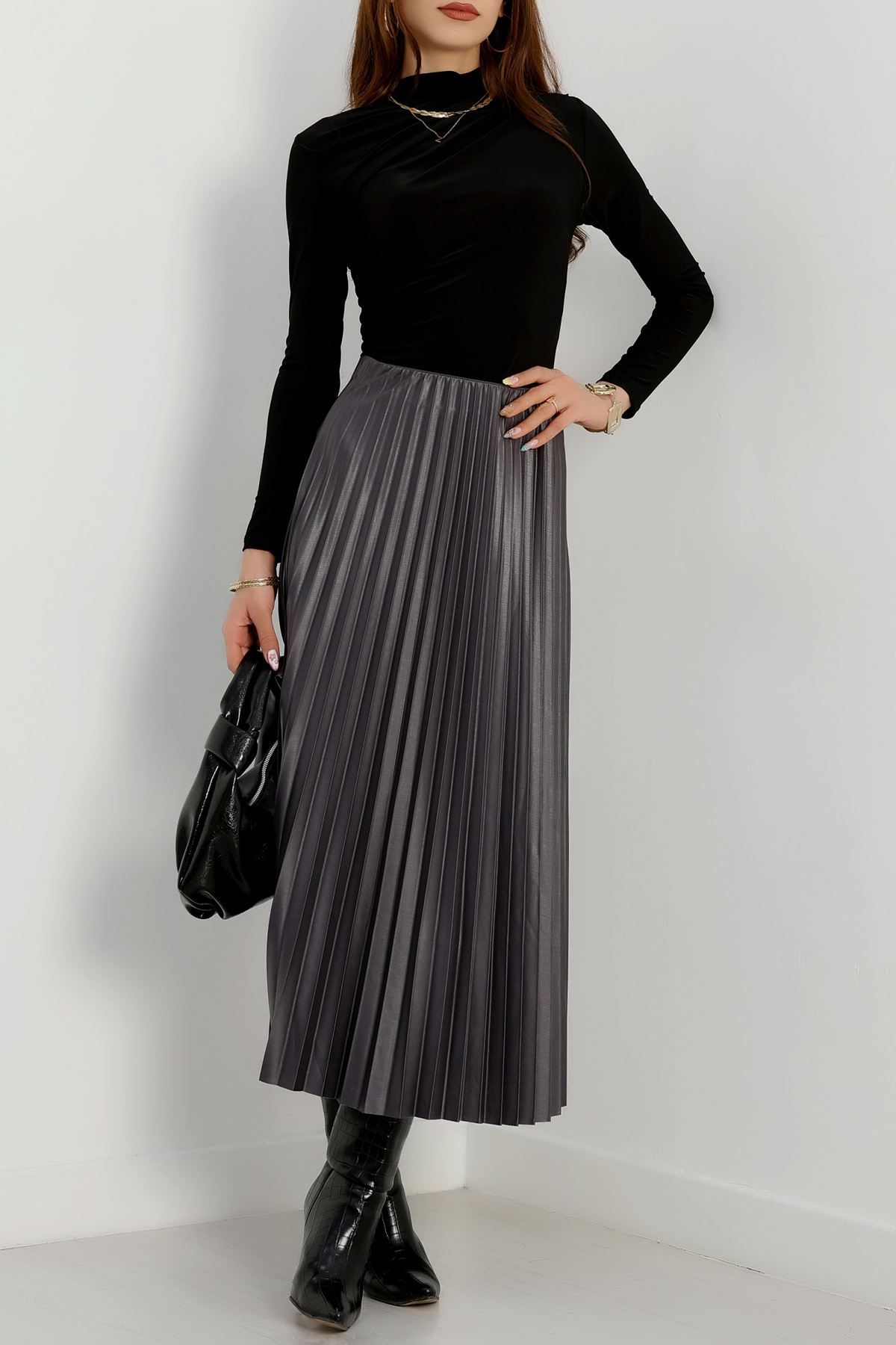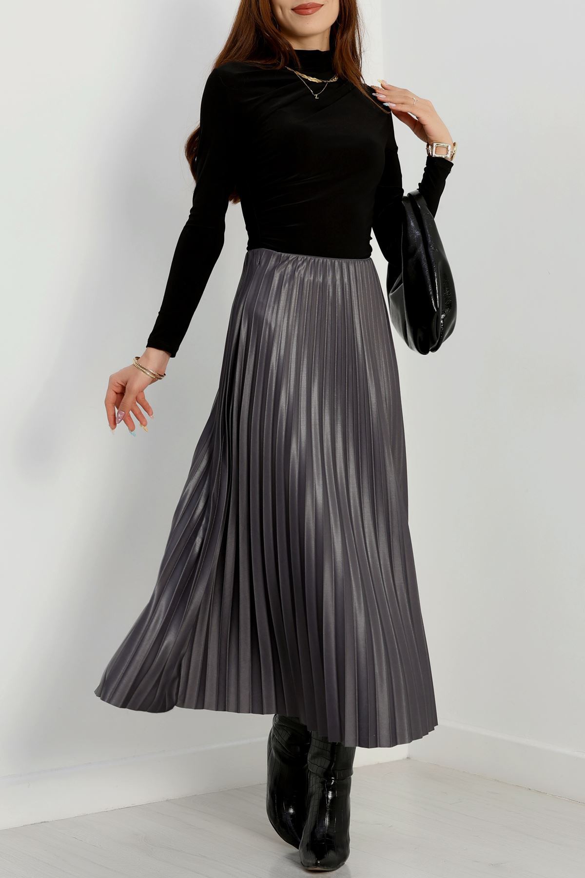Çift Pileli Kloş Etek Siyah - 20665.1892.