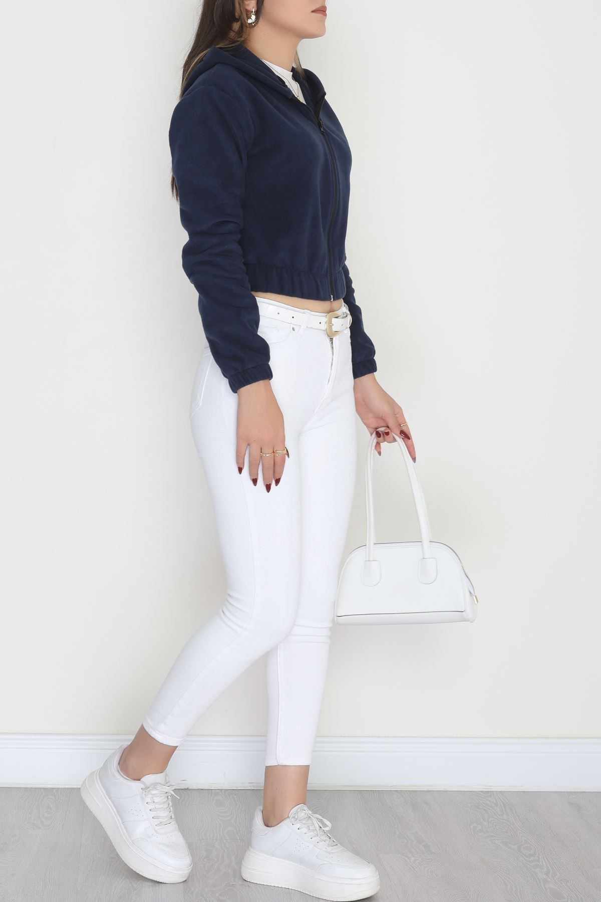 Polar Kapşonlu Crop Ceket Lacivert - 51000.053.