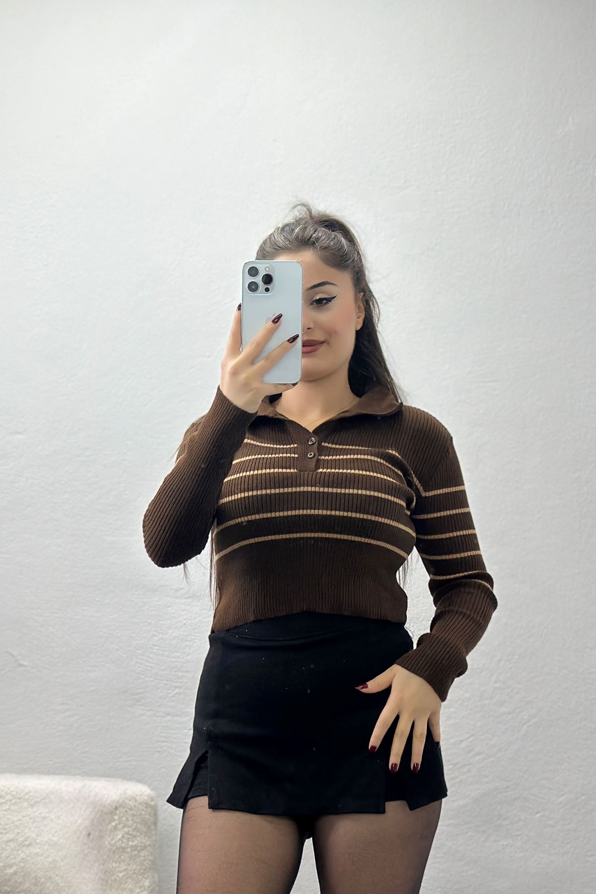 Polo Yaka Çizgili Triko Kahve - 4002.2043.