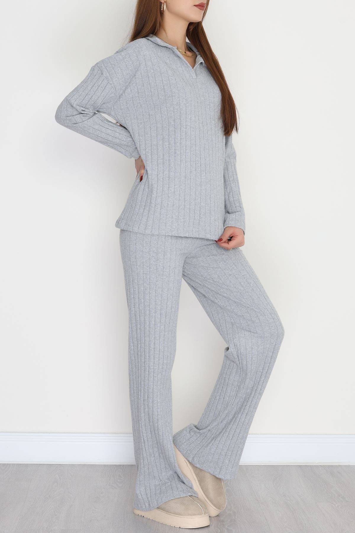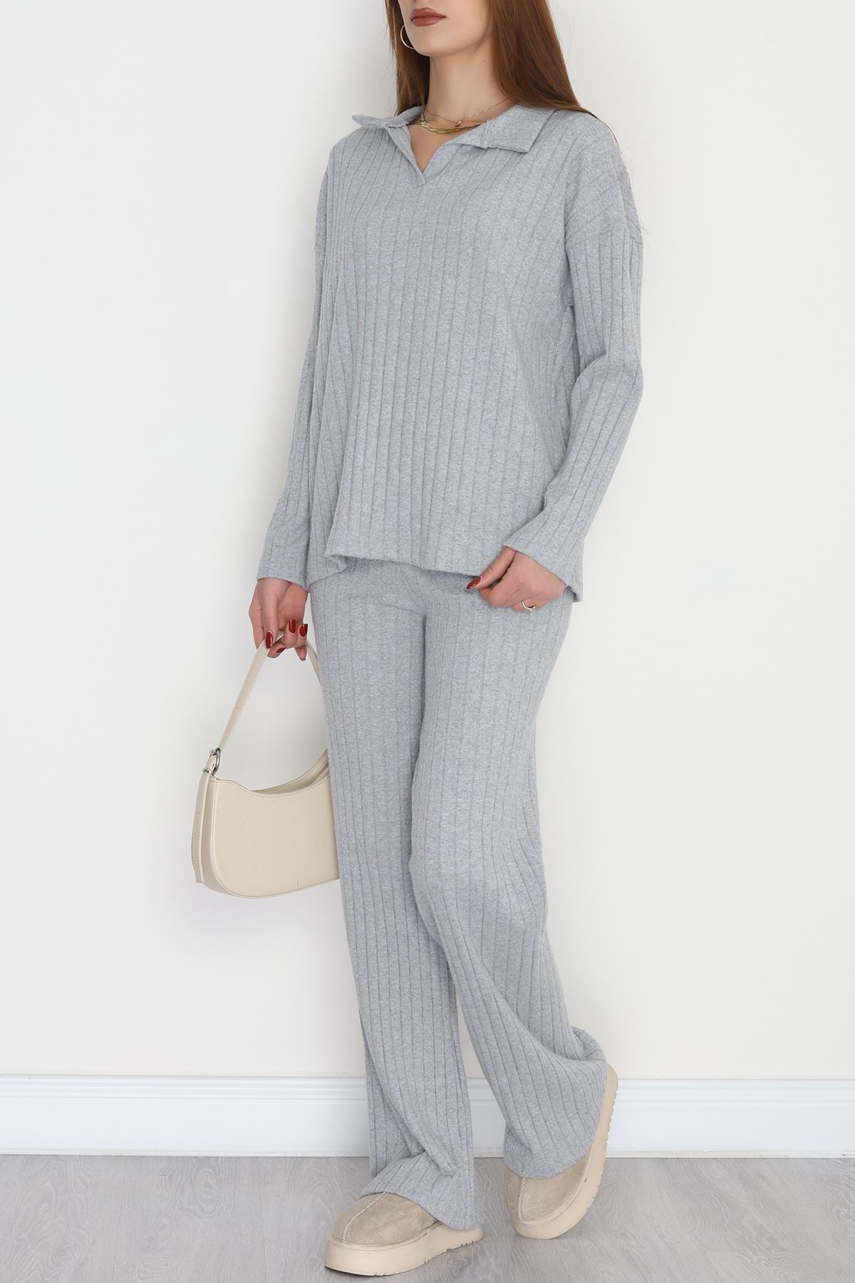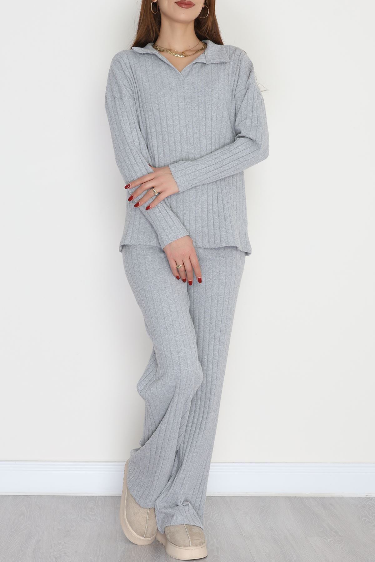 Polo Yaka Likralı İnterlok Fitilli Takım Gri - 90970.1748.