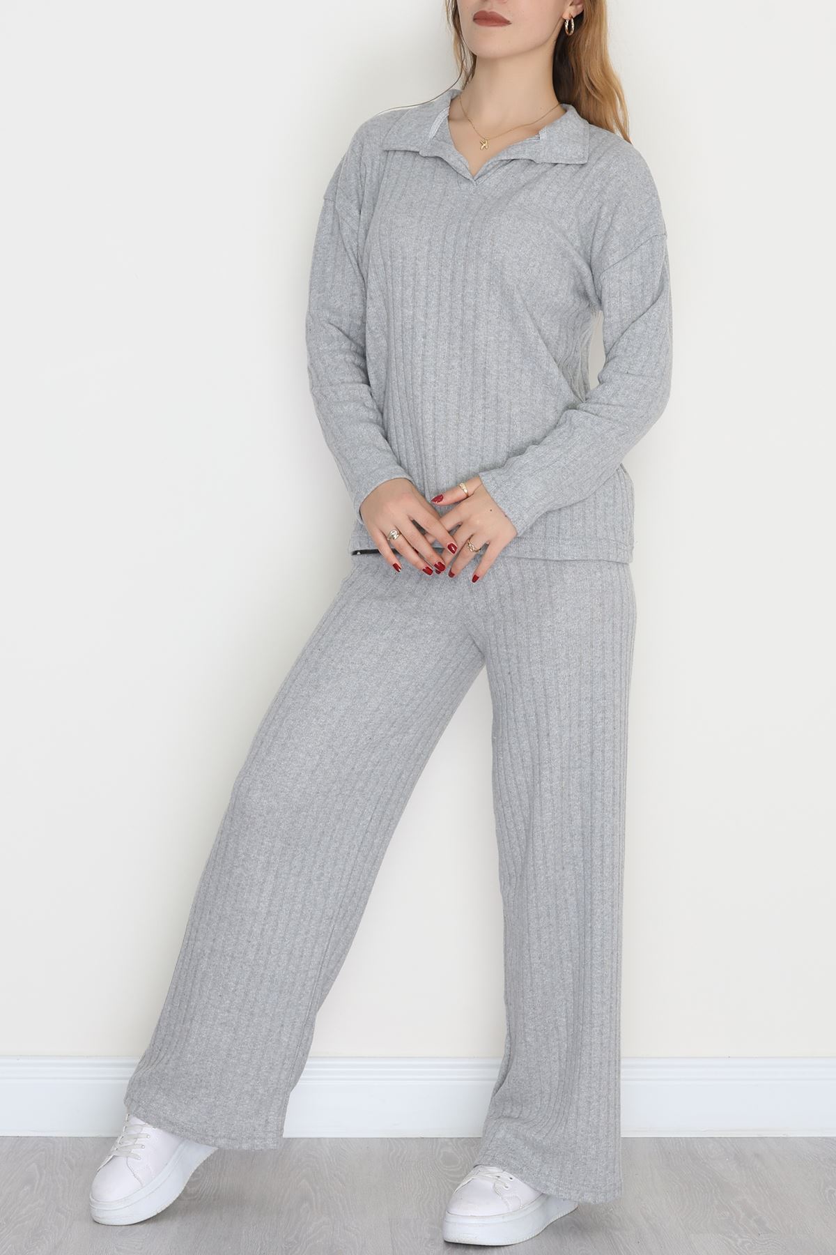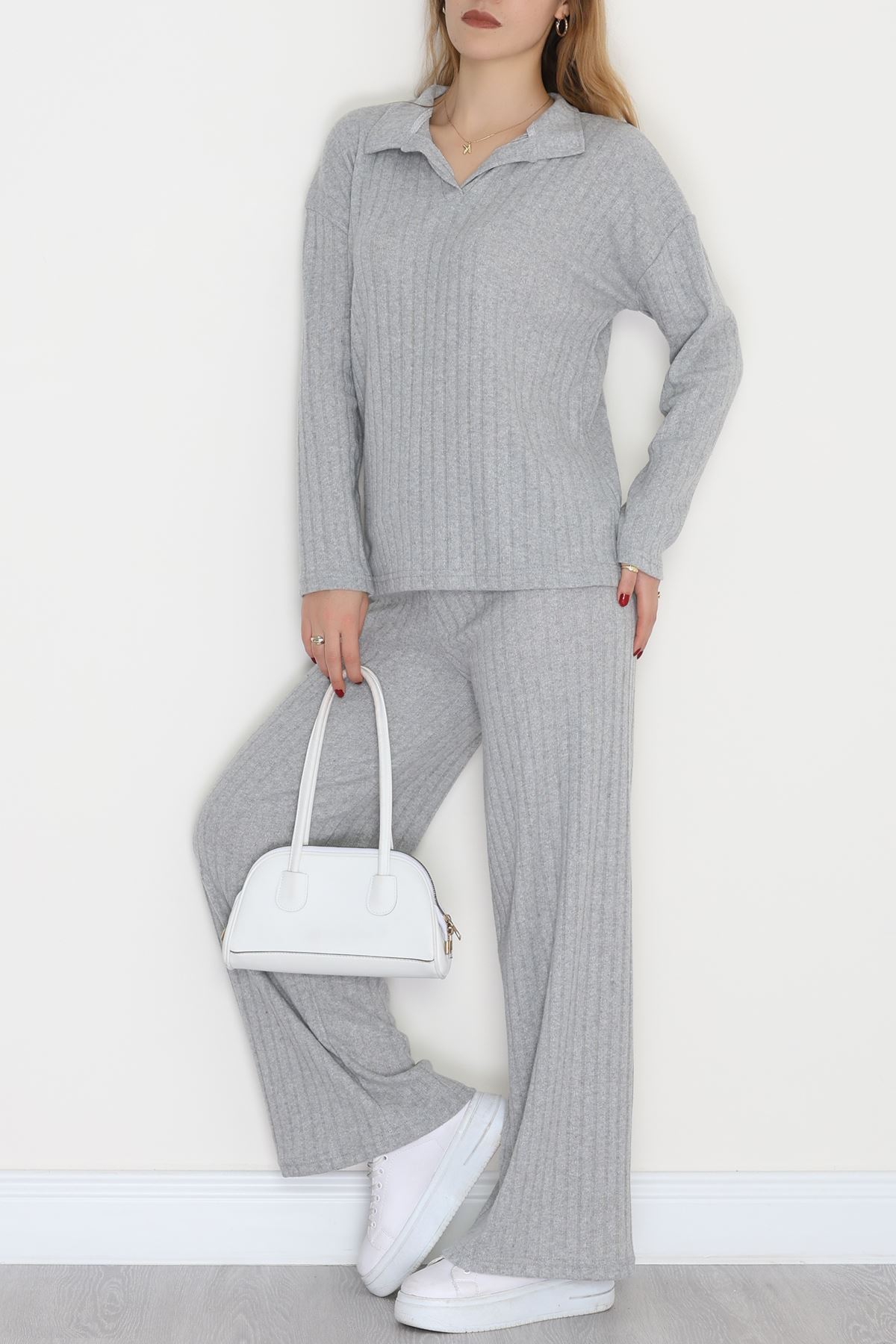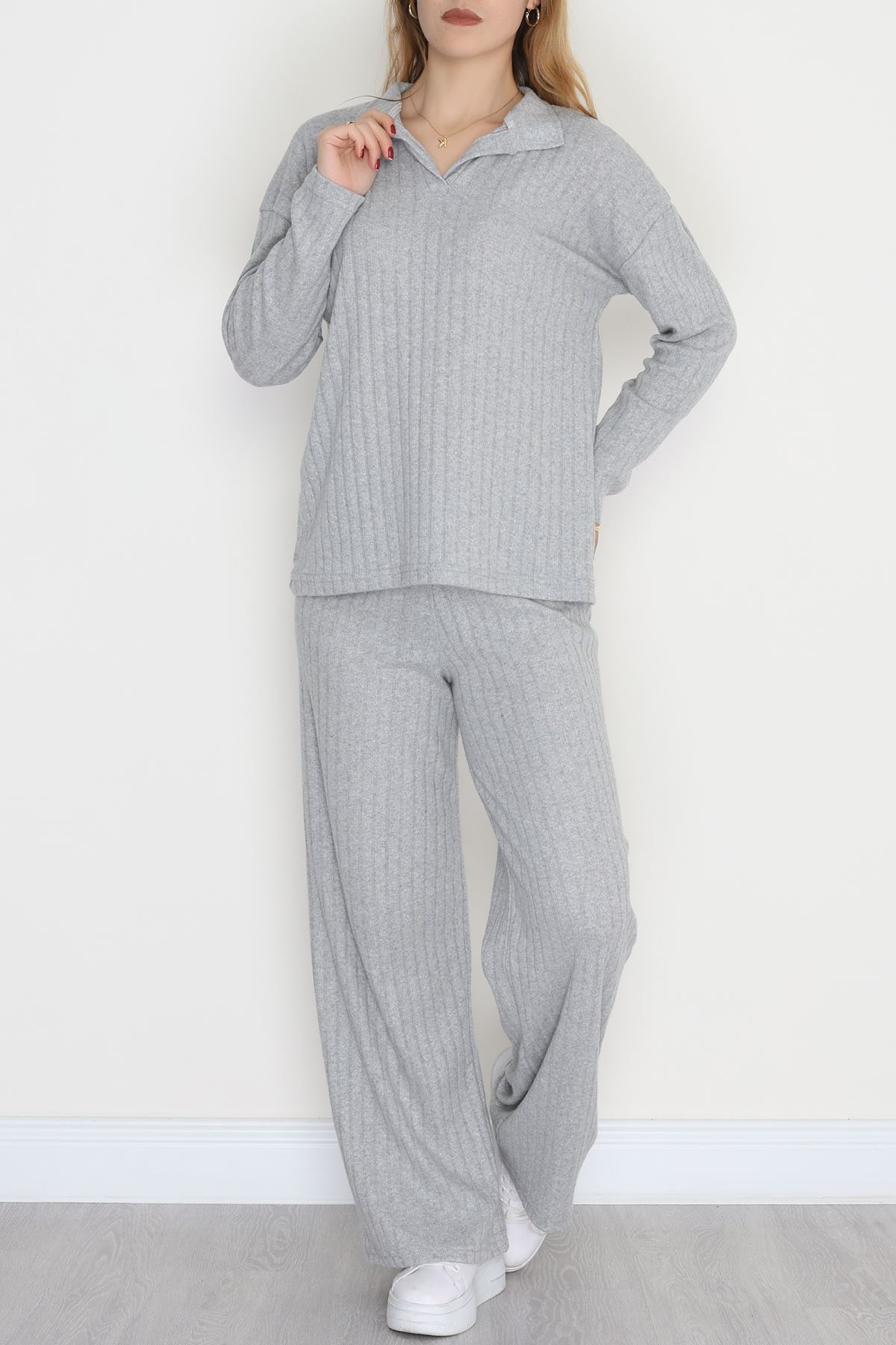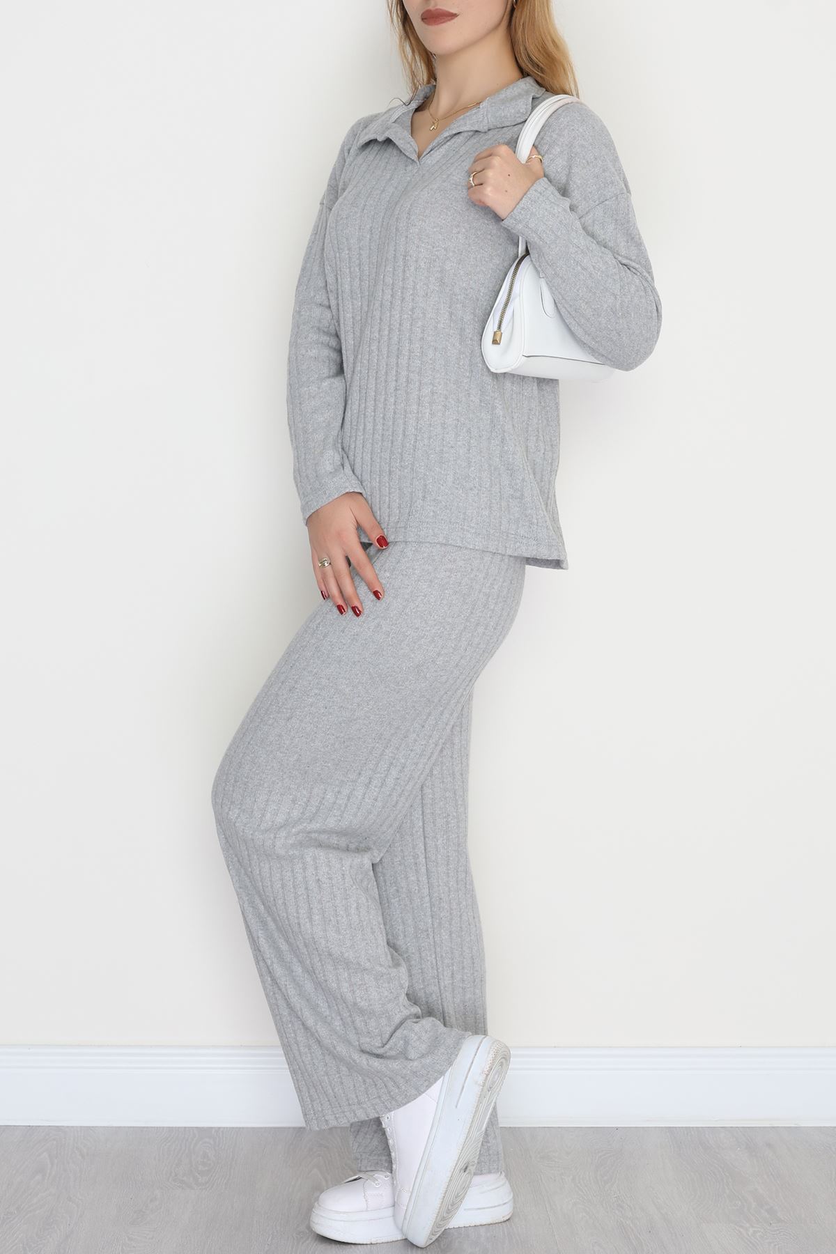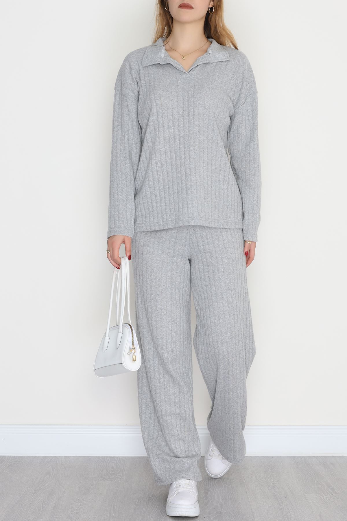 Polo Yaka Raporlu İnterlok Takım Gri - 2281.1287.