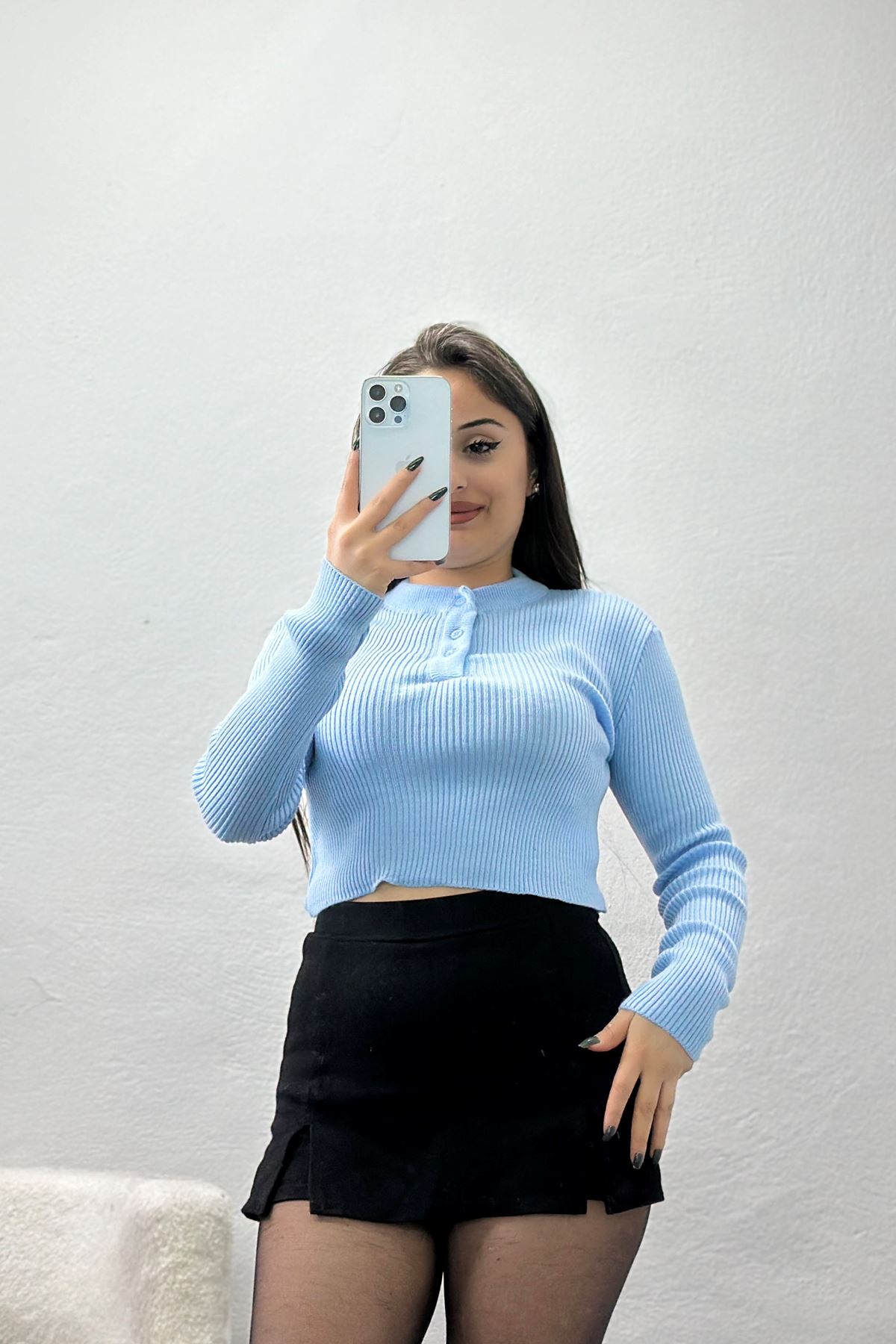 Yarım Balıkçı Yaka Likralı Ring Viskon Body Siyahbeyaz - 90950.1287.