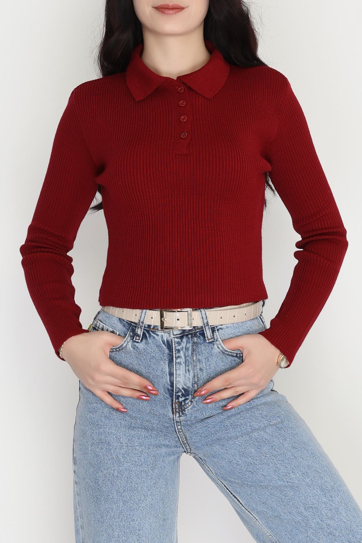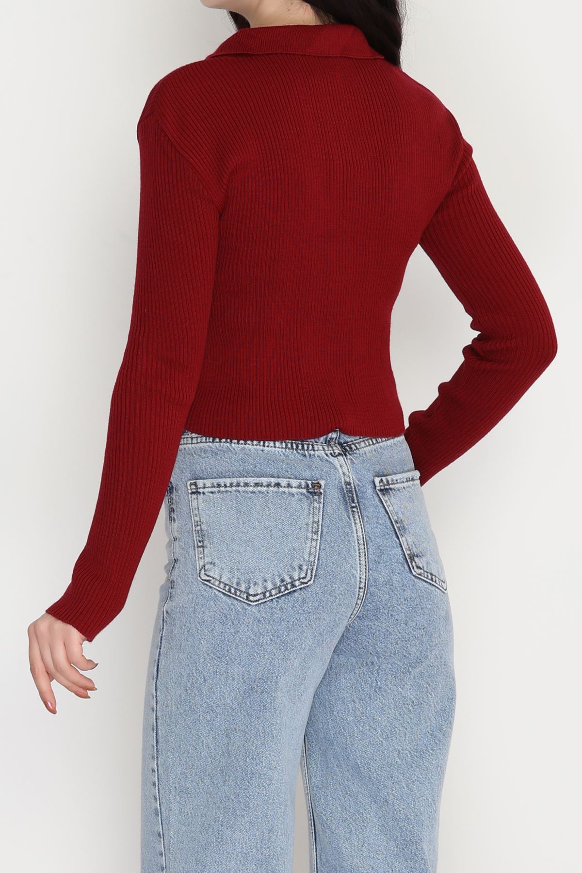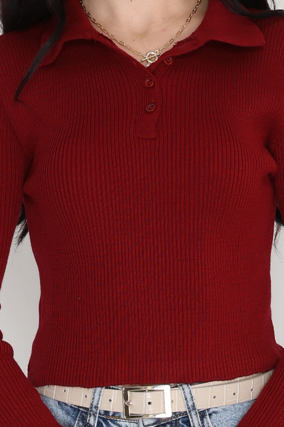 U Yaka İspanyol Kol Likralı Raporlu İnterlok Fitilli Body Bordo - 90966.1748.