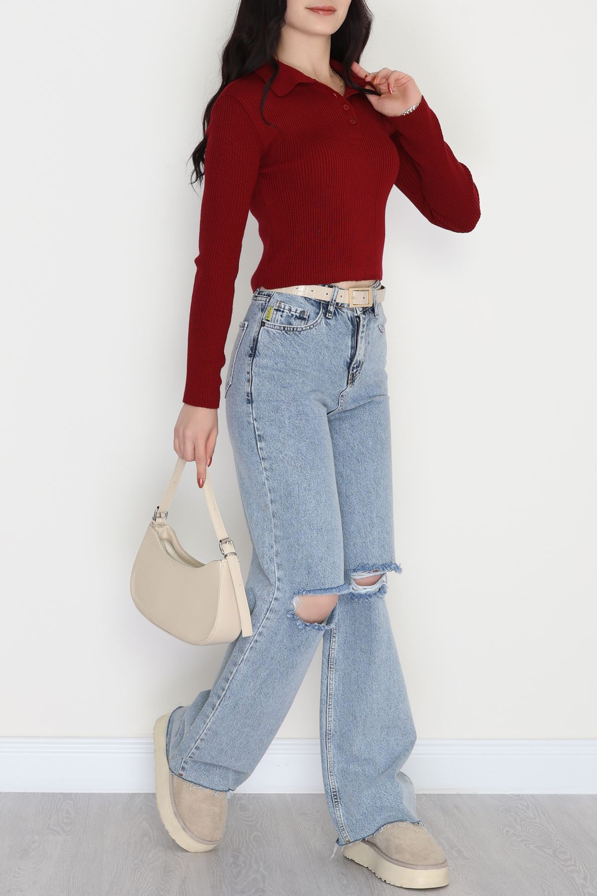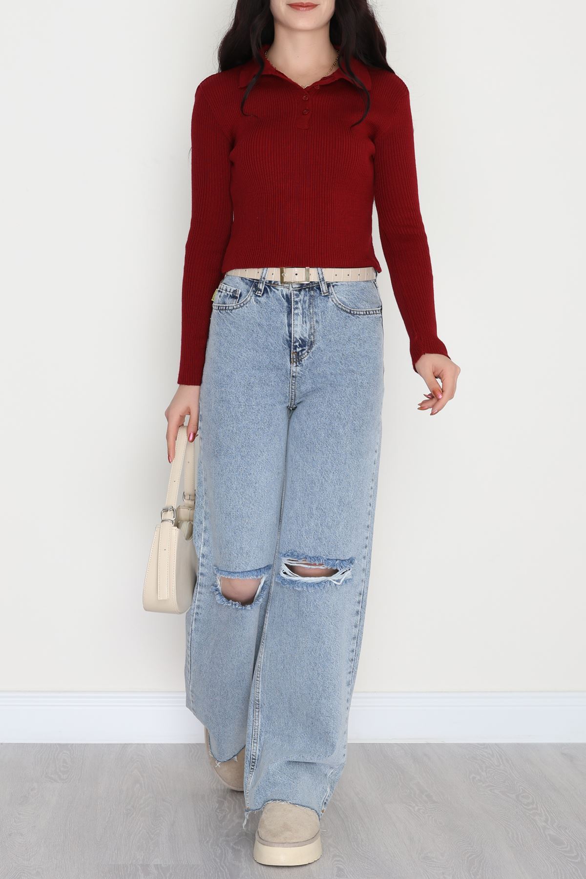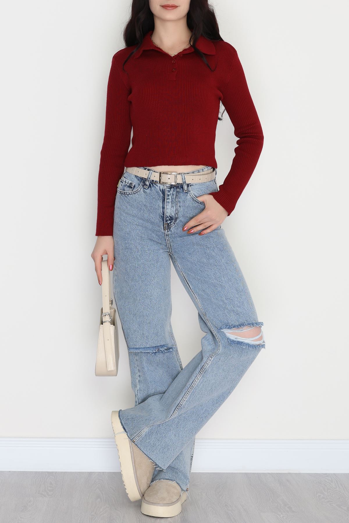 U Yaka İspanyol Kol Likralı Raporlu İnterlok Fitilli Body Bordo - 90966.1748.