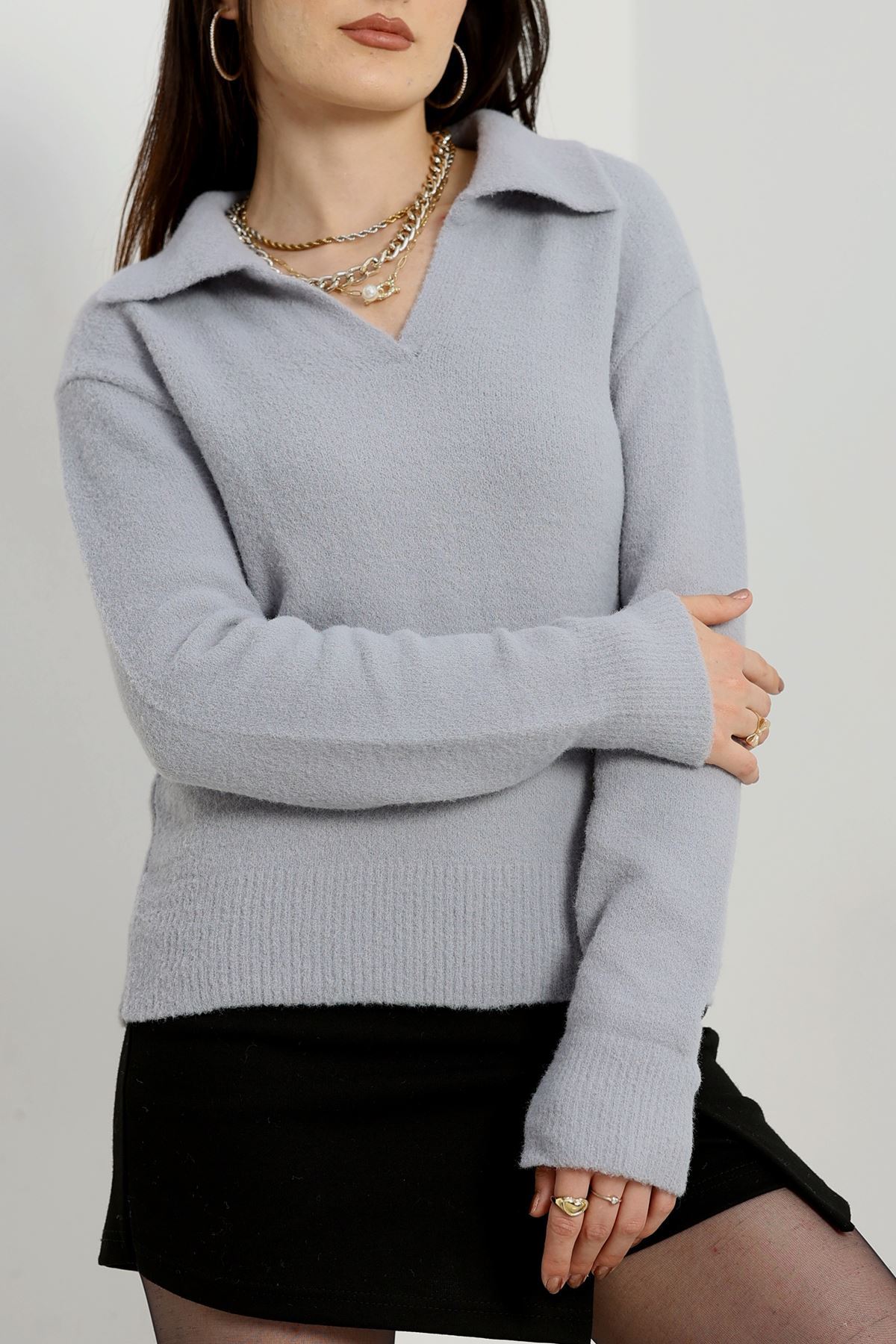Bisiklet Yaka Triko Lacivert - 2412.1765.