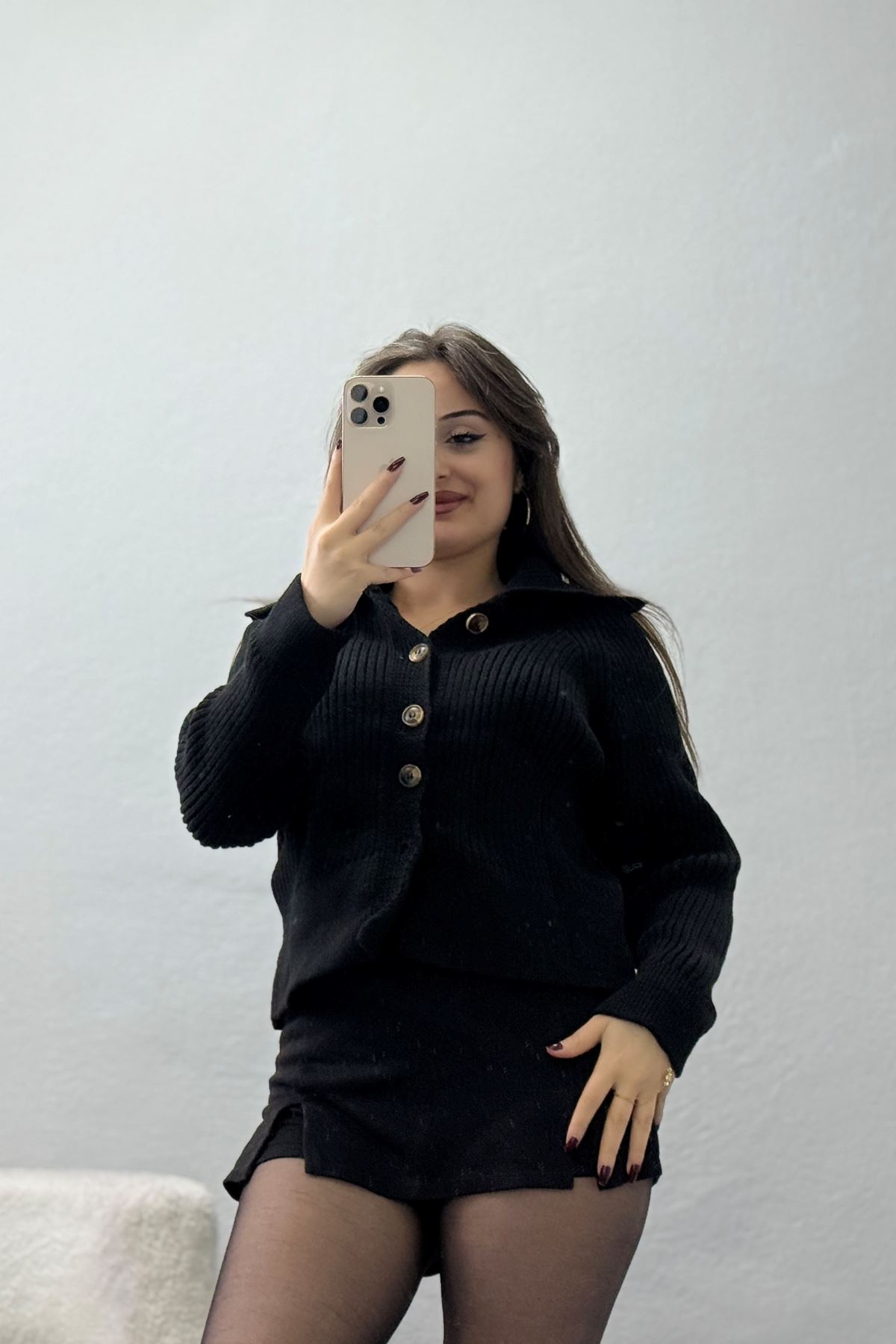 Polo Yaka Triko Hırka Siyah - 2283.1765.