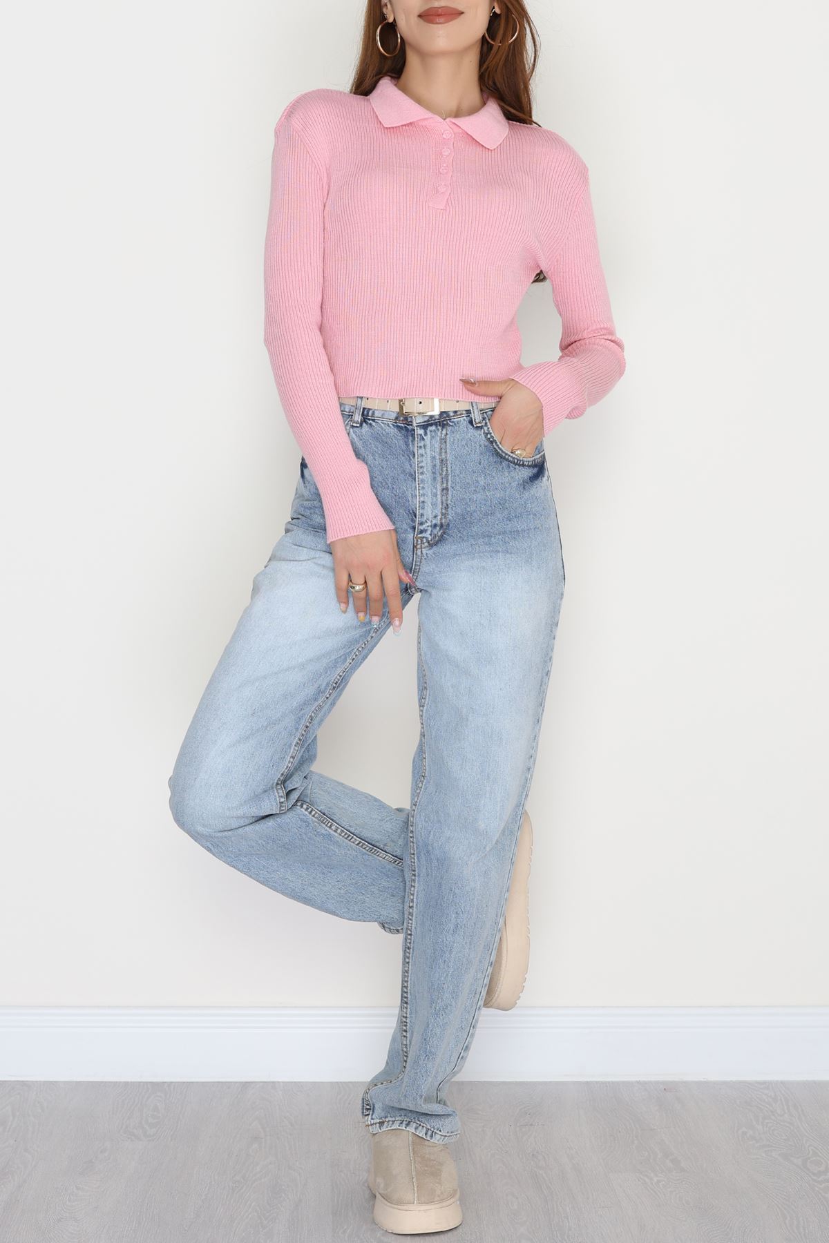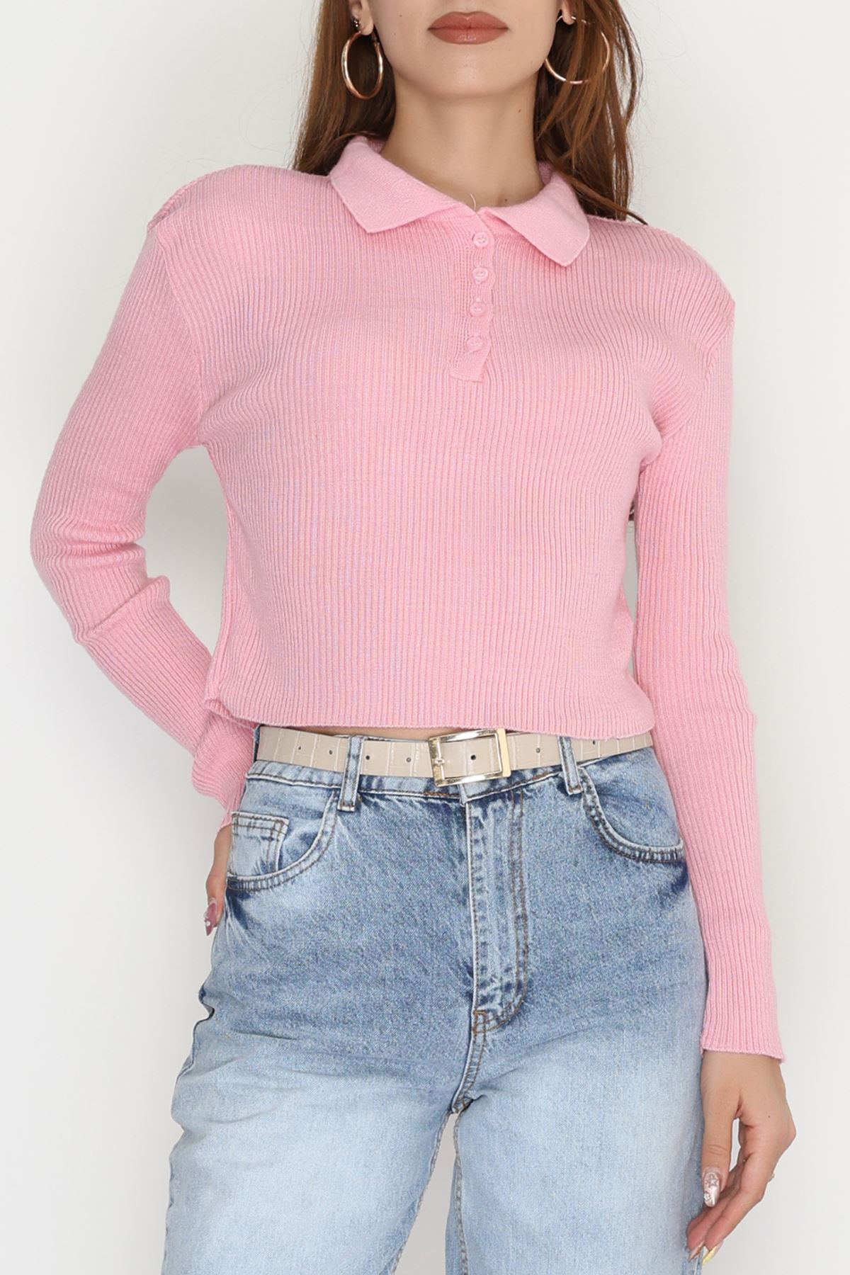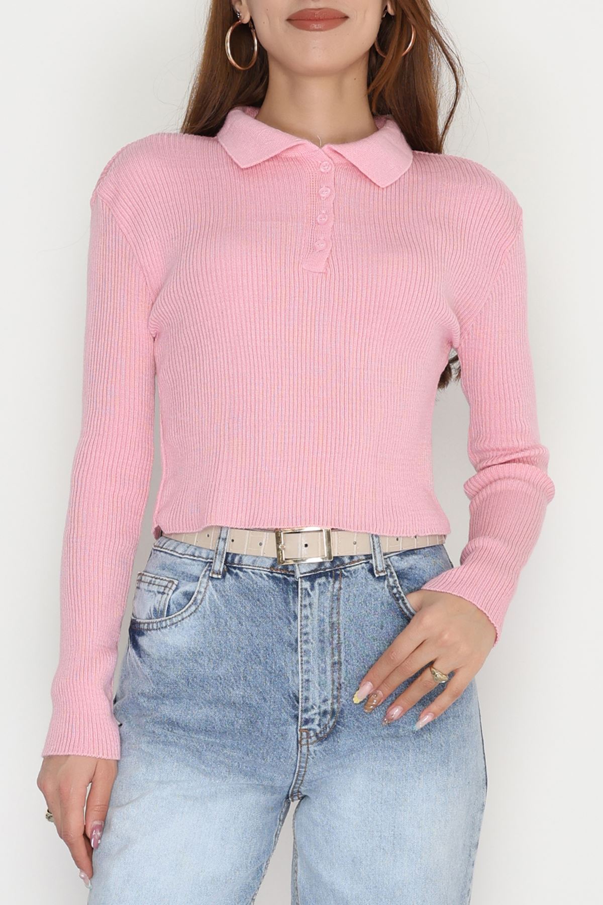 Dik Yaka Kısa Kol Yumoş Body Pembe - 50213.1723.
