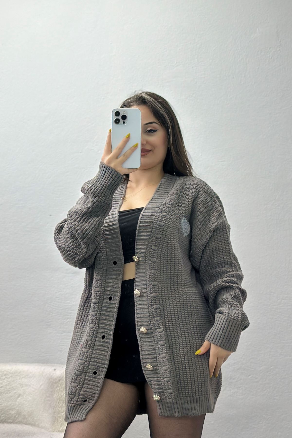 Nakışlı Kalpli Hırka Fümegri - 444.1577.
