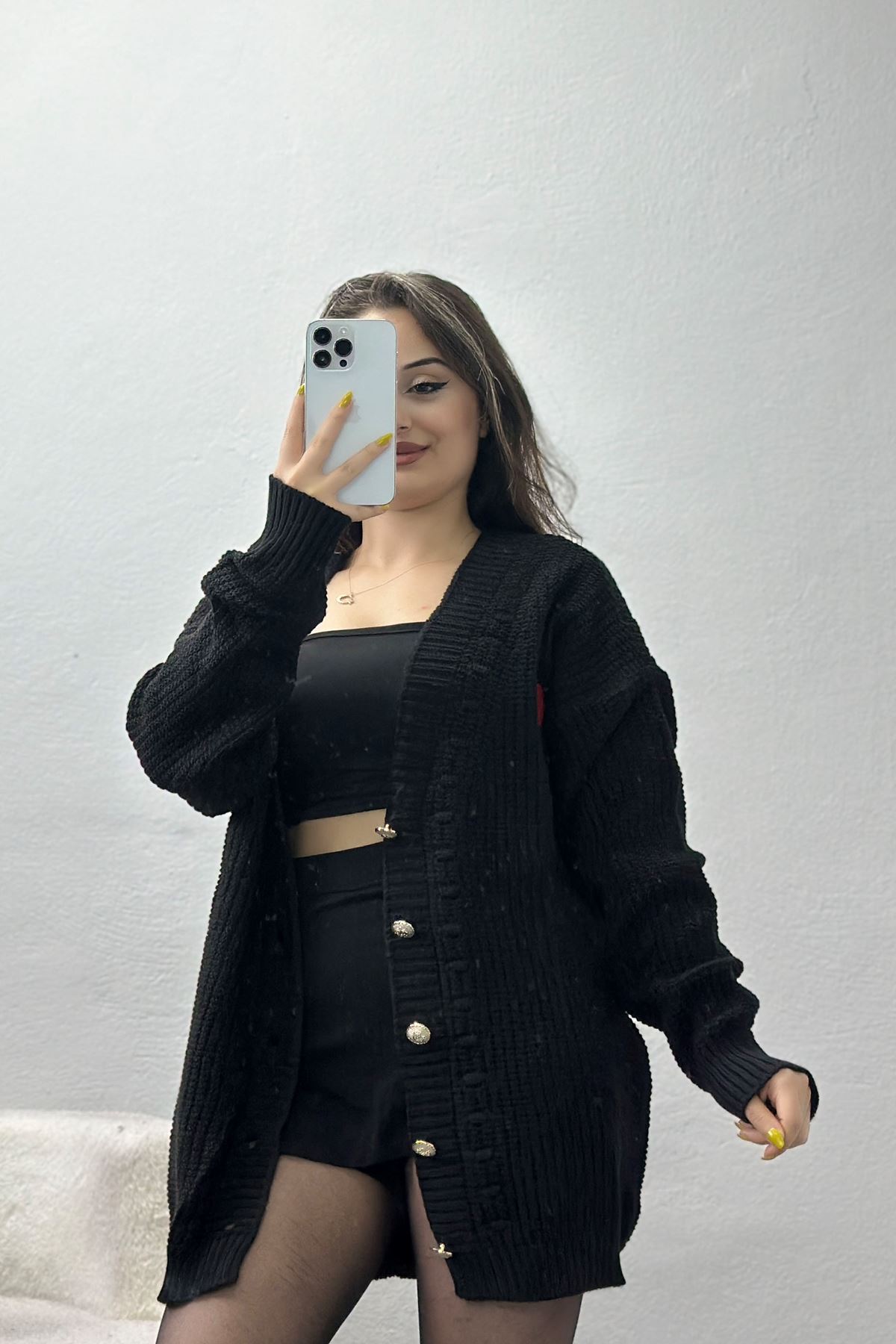 Nakışlı Kalpli Hırka Bordolatte - 444.1577.