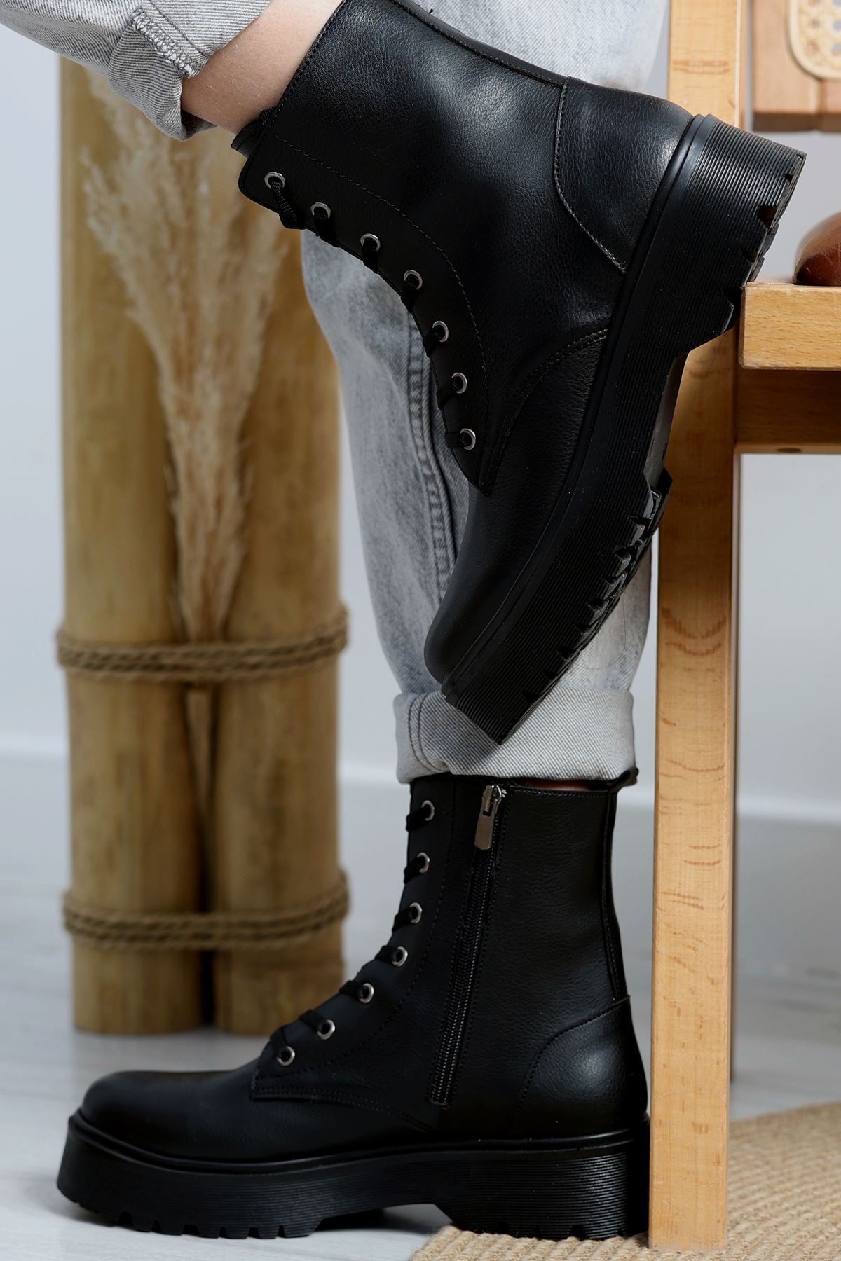 Baskılı Bağcıklı Bot Siyah - 42359.264.