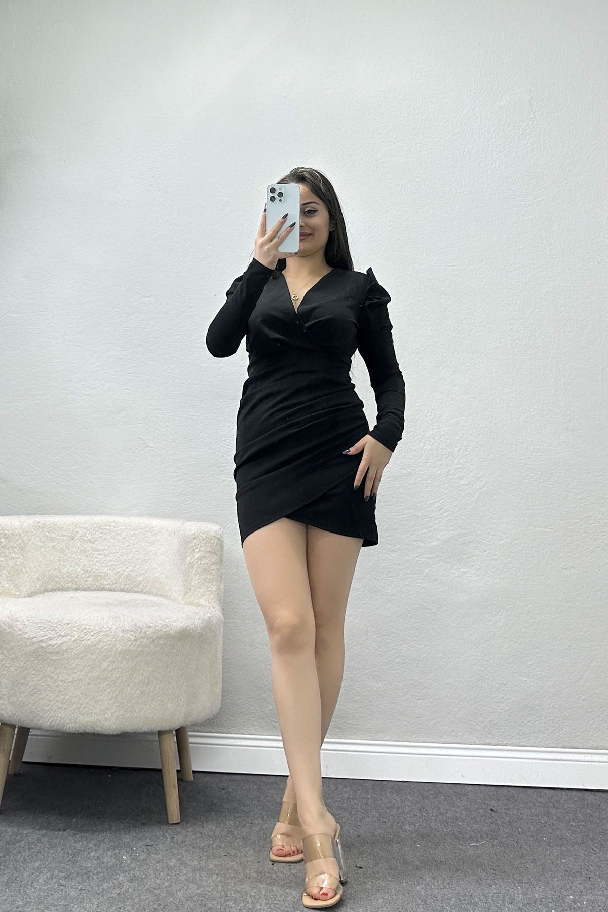 Omuz Detaylı Kaşkorse Elbise Siyah - 70711.1748.
