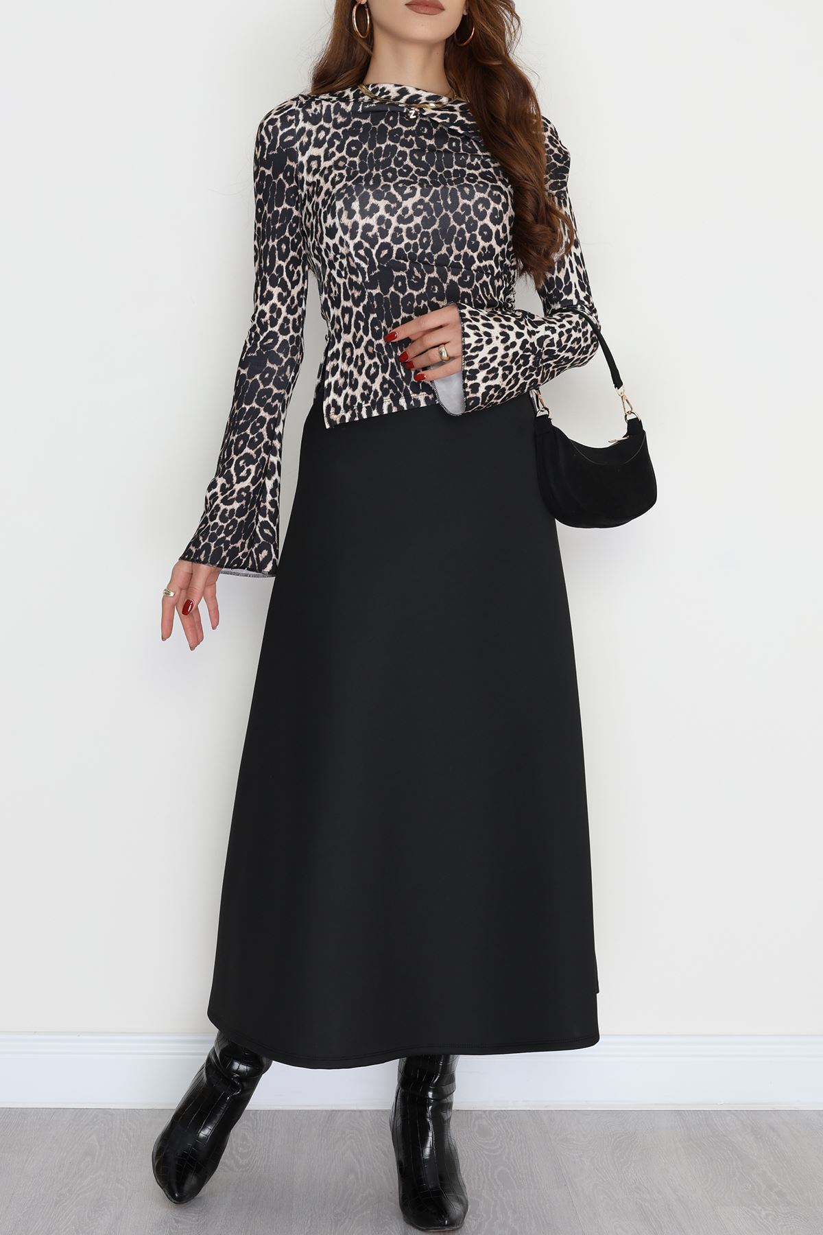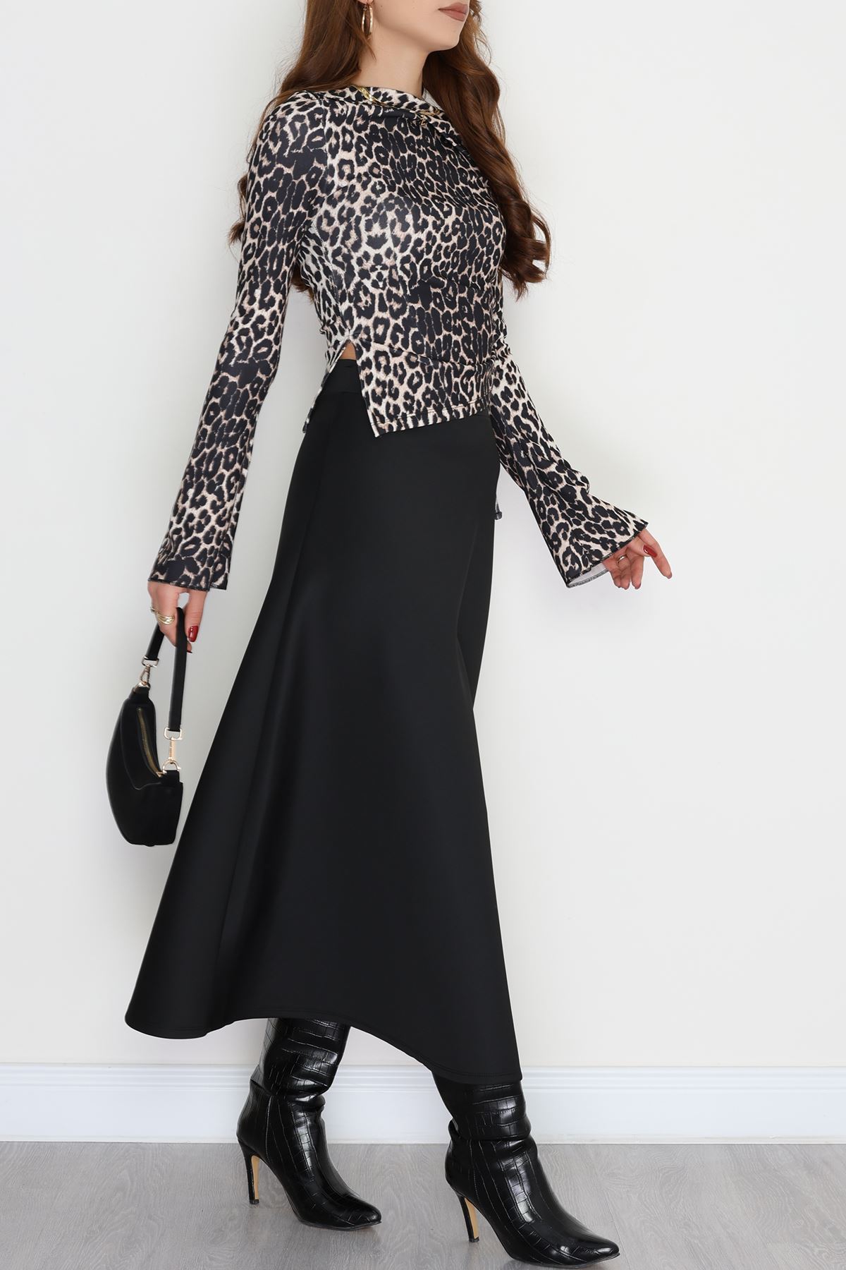 Çift Yırtmaçlı Şort Etek Siyah - 20914.316.