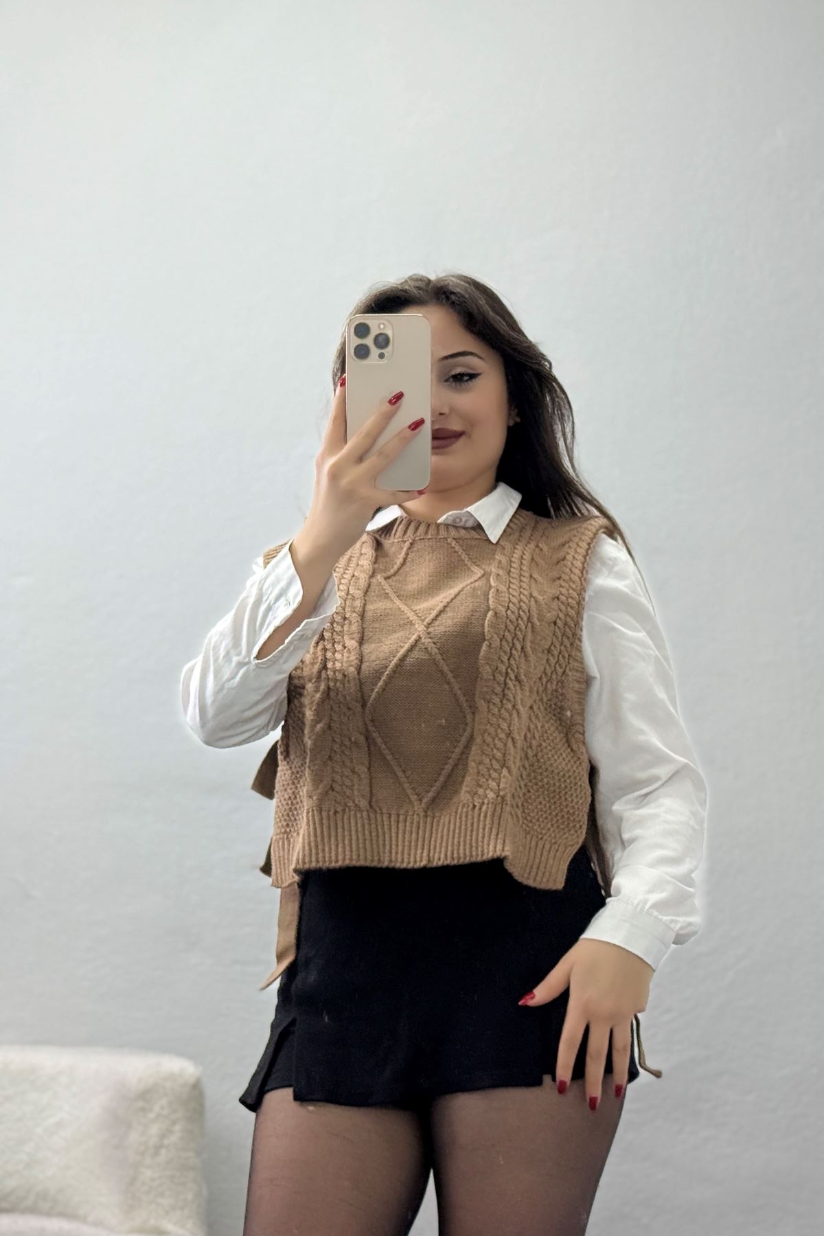 Madonna Yaka Önü Düğümlü Triko Ekru - 2432.1765.