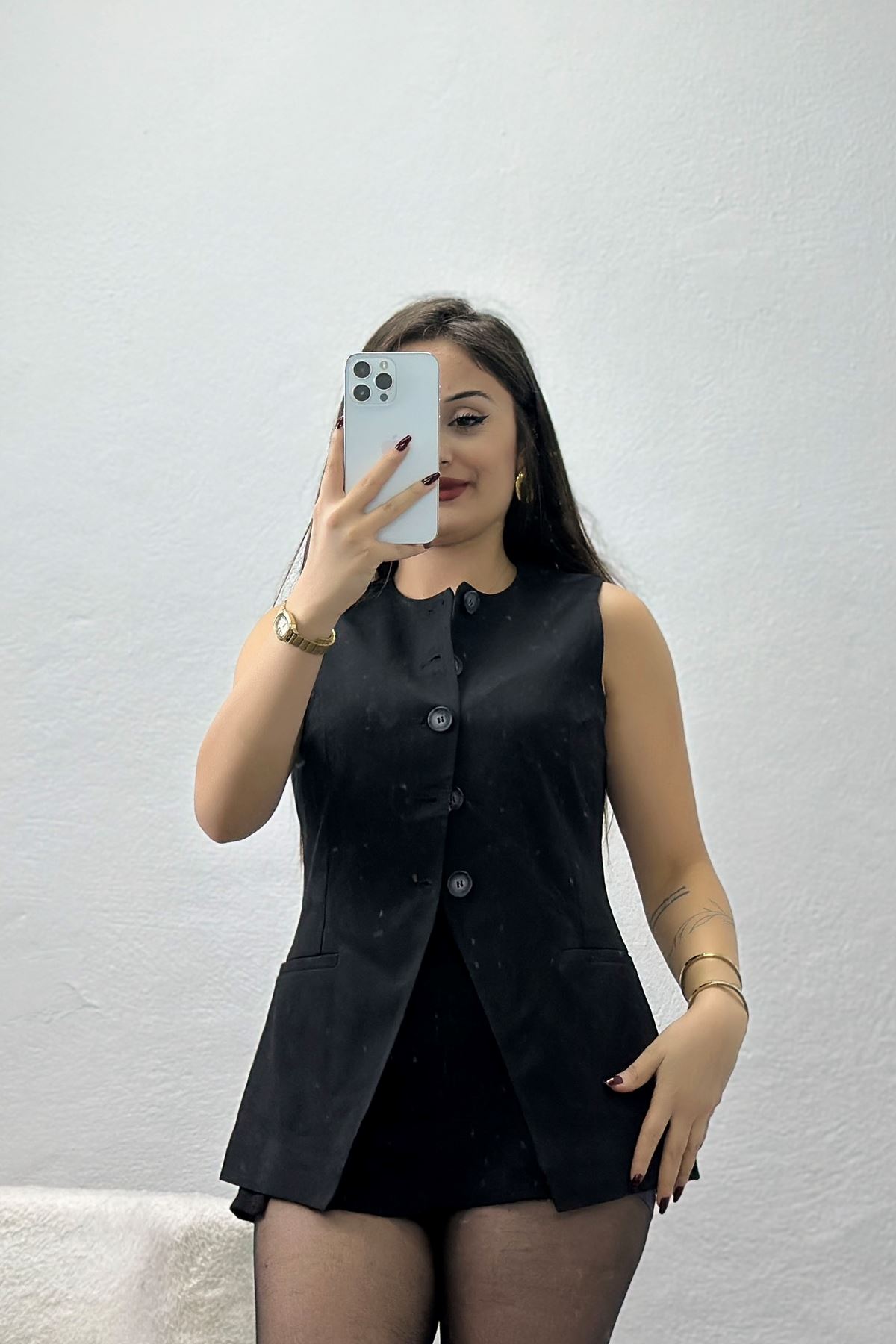 Quzu Düğmeli V Kesim Kolsuz Yelek Siyah - 90171.2002.