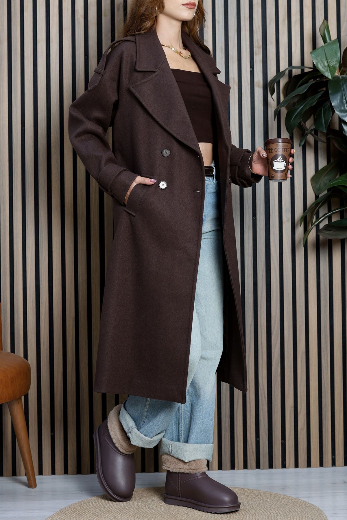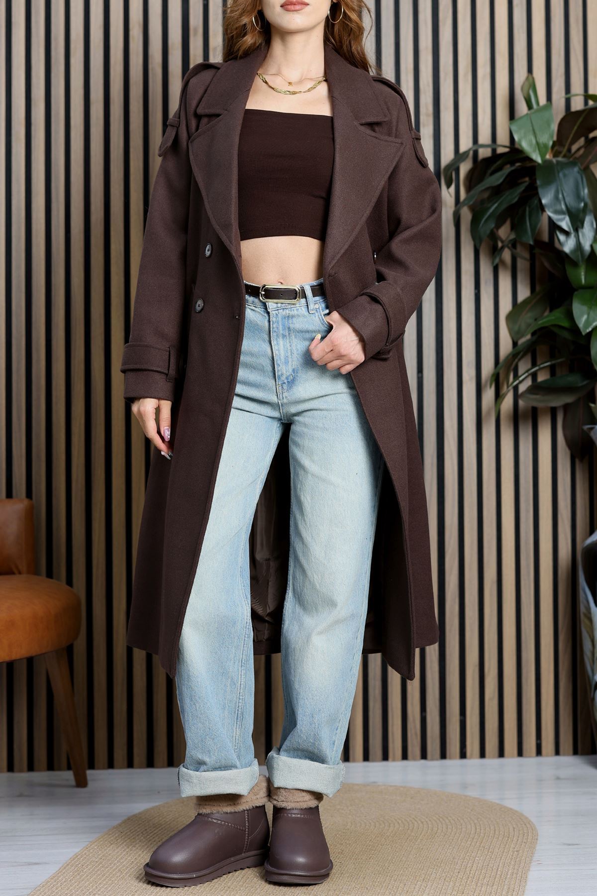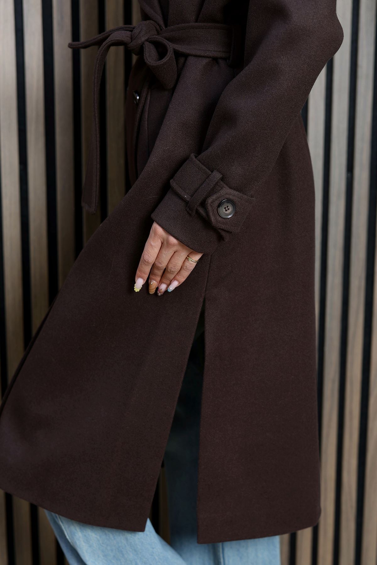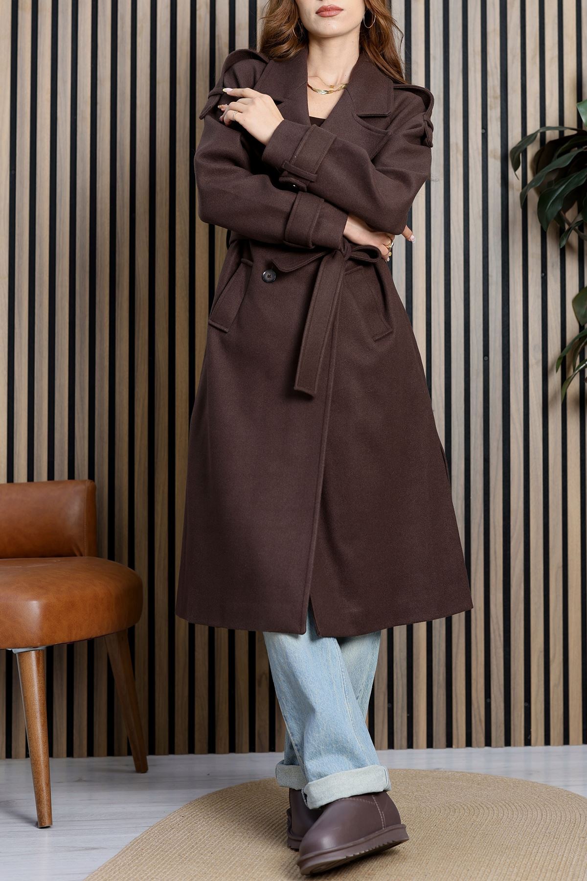Ressam Kuşaklı Kaşe Kaban Acıkahve - 3198.1322.