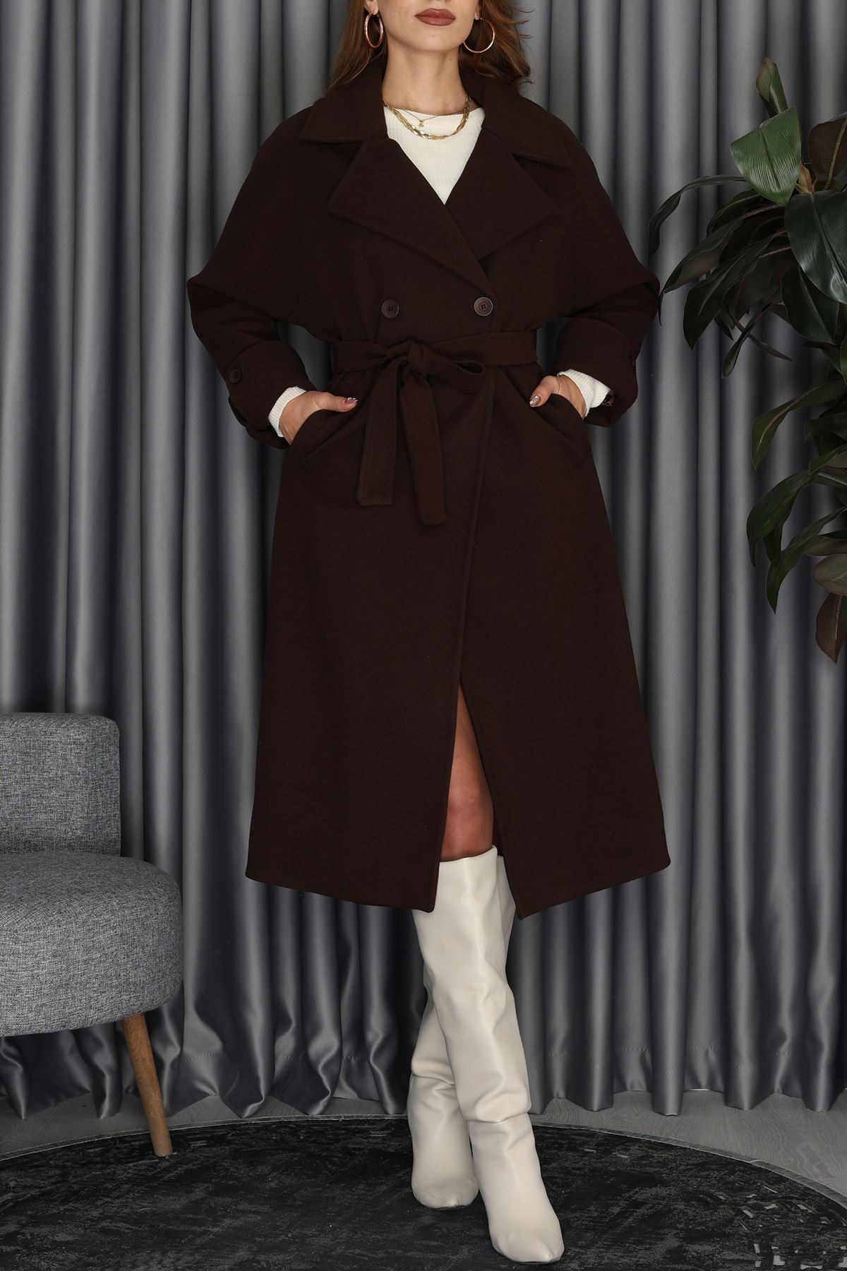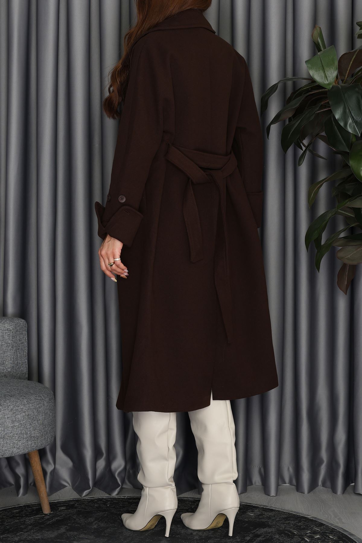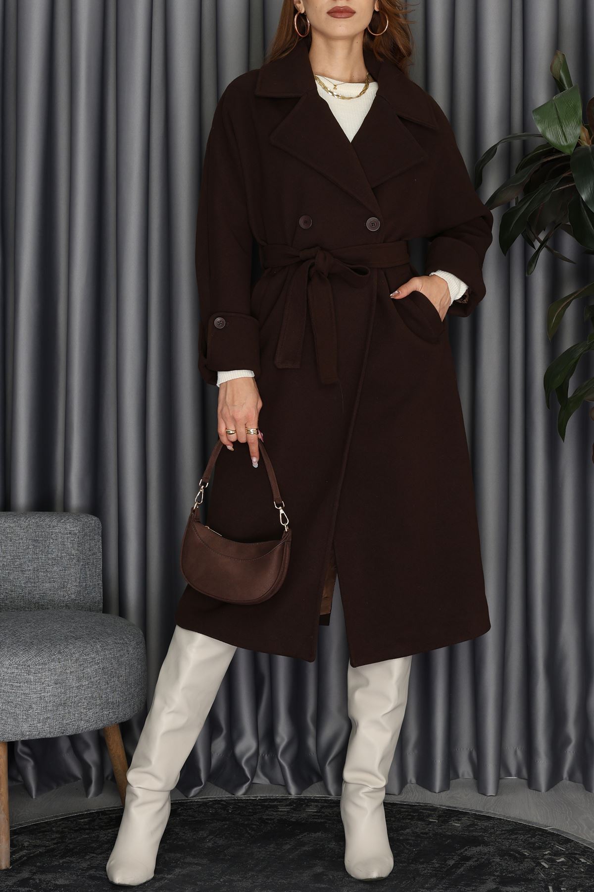 Ressam Kuşaklı Kaşe Kaban Acıkahve - 3218.1322.