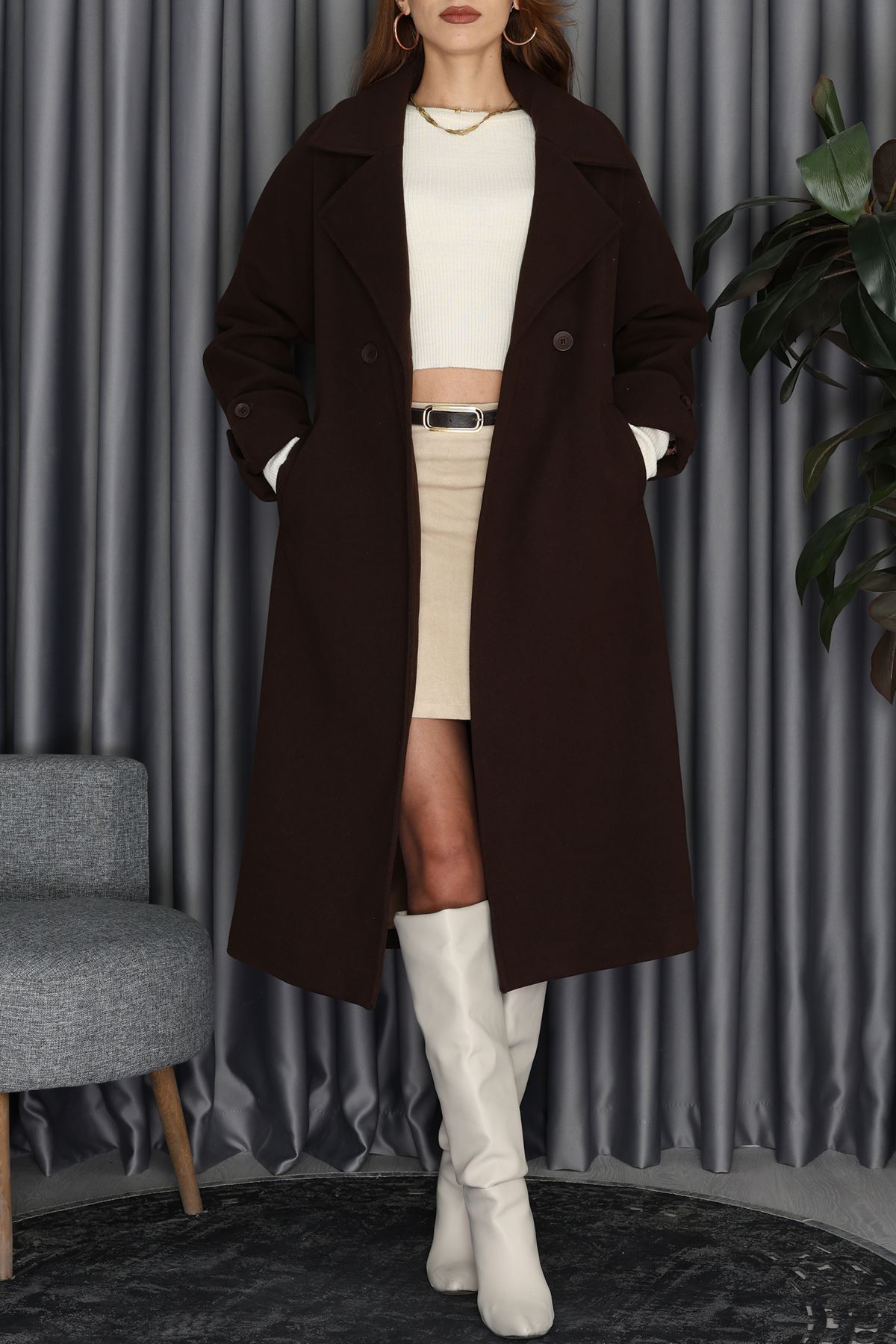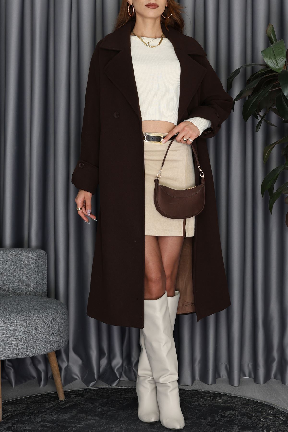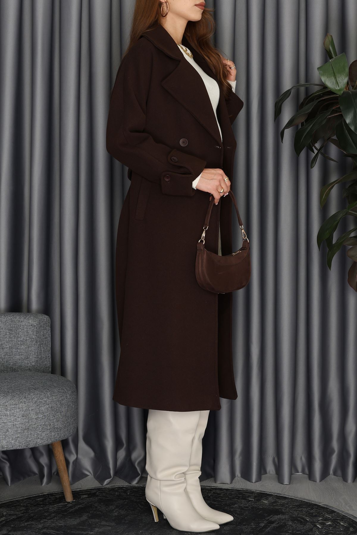 Ressam Kuşaklı Kaşe Kaban Acıkahve - 3218.1322.