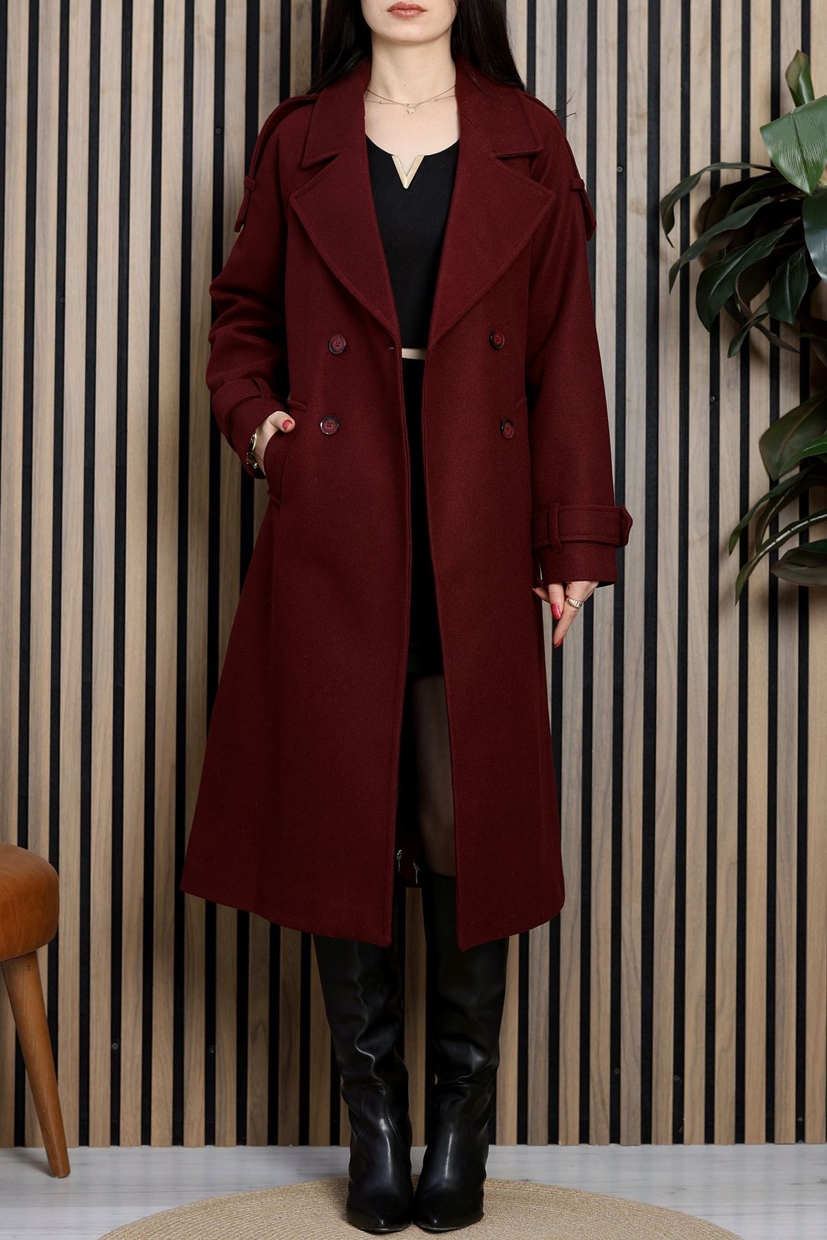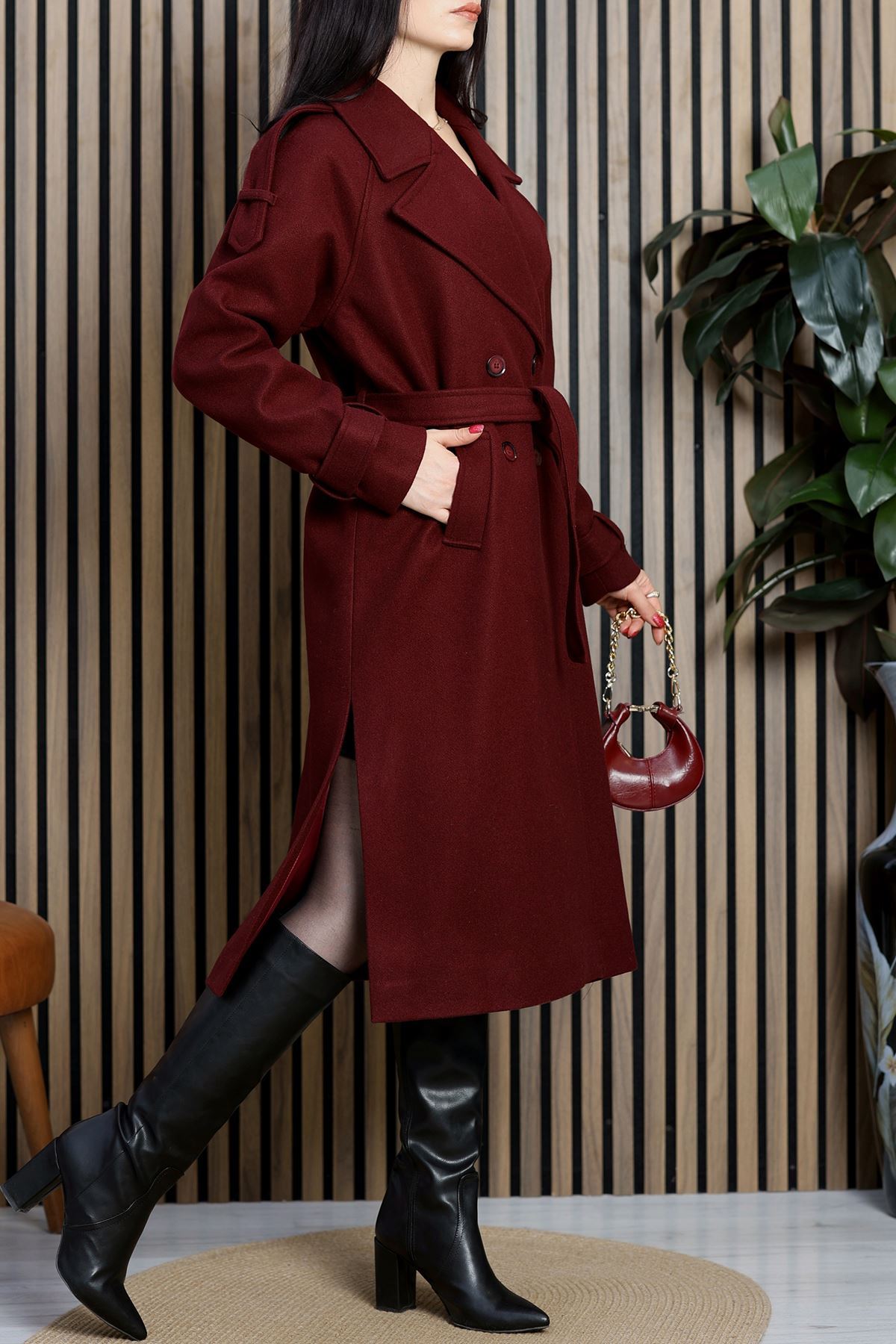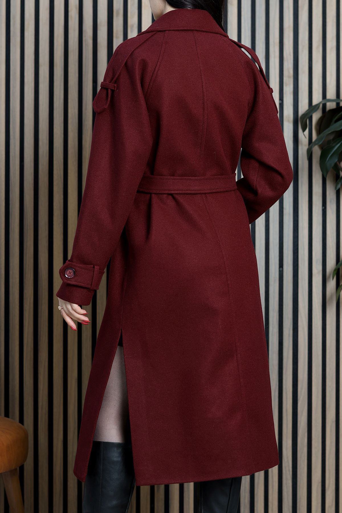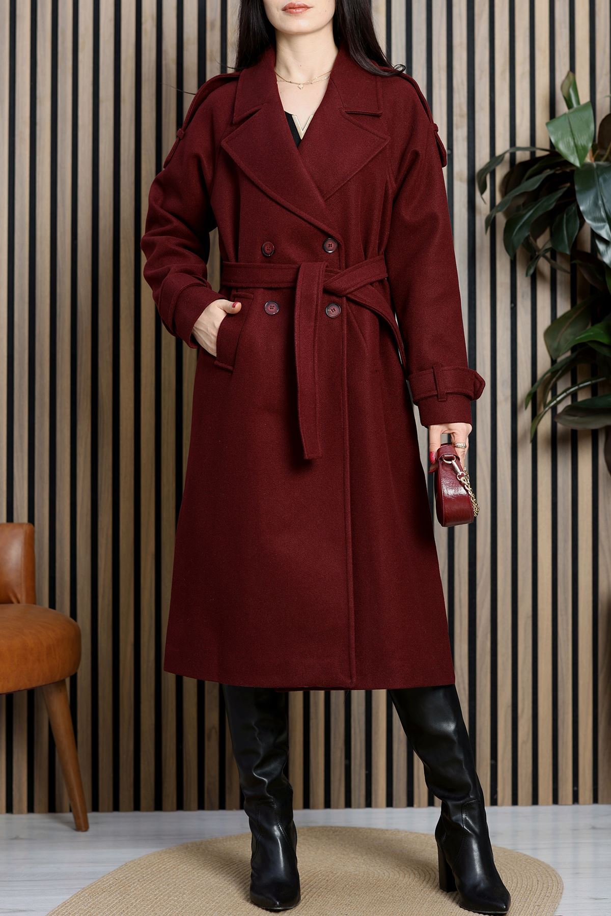 Ressam Kuşaklı Kaşe Kaban Bordo - 3198.1322.